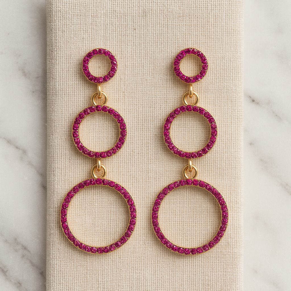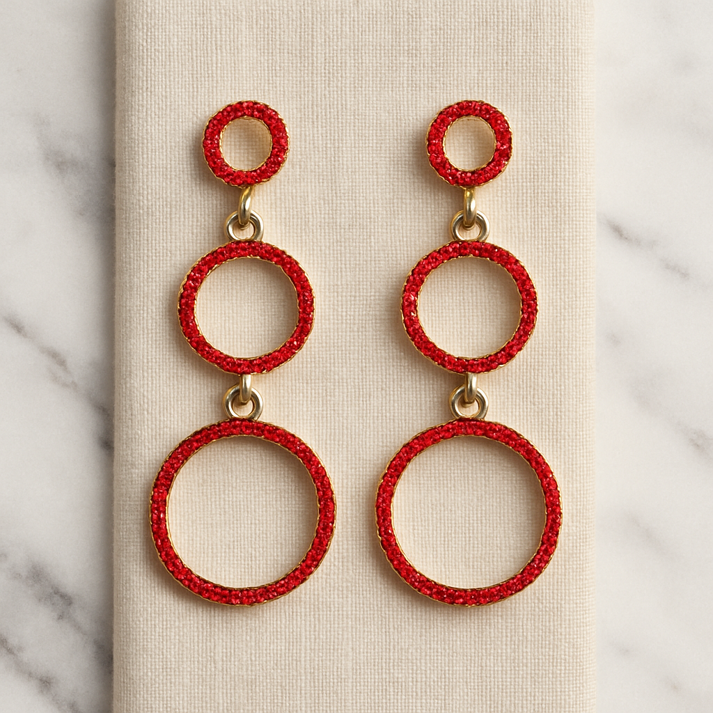 Multicolored Rhinestone Tri Circle Drop Earrings