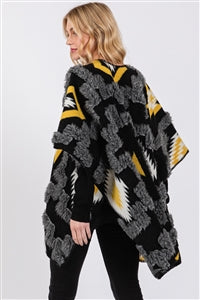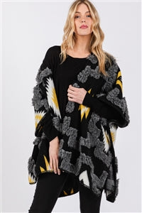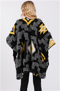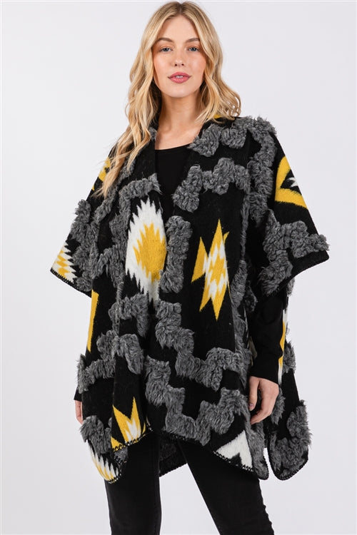 Wrap yourself in warmth and effortless style with our Aztec Pattern Fleece Kimono. Featuring a bold black base adorned with striking yellow and white geometric motifs, this kimono captures the essence of Southwestern chic. The textured grey fleece trim adds a luxurious touch, creating a cozy, eye-catching layer perfect for cooler days.