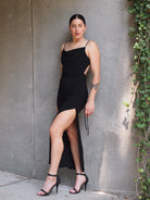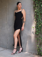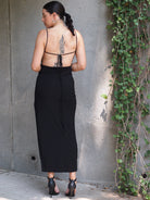 Cowl Neck Open Tie Back Maxi Dress + Thigh Slit