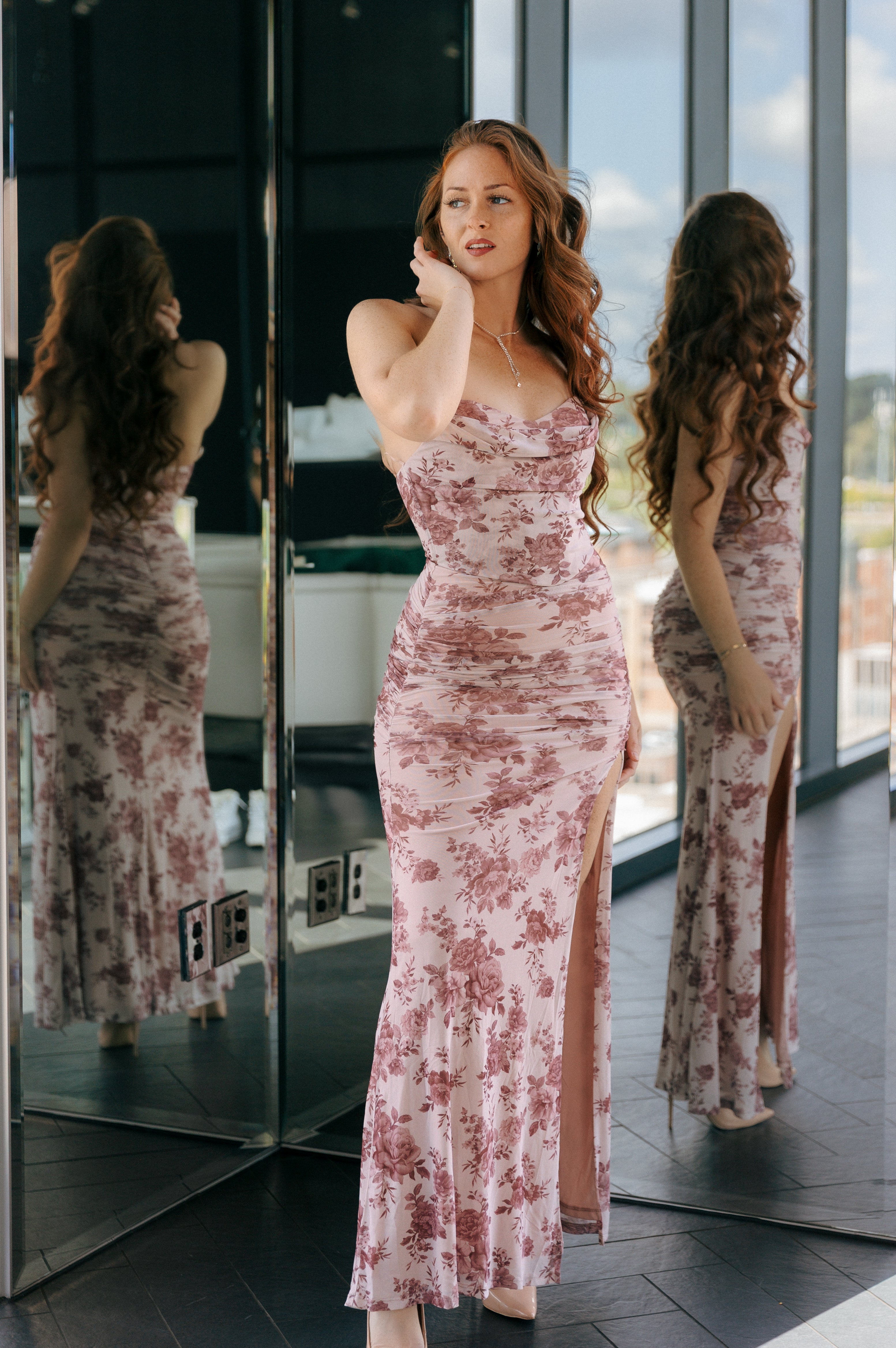 - Ruched thigh slit