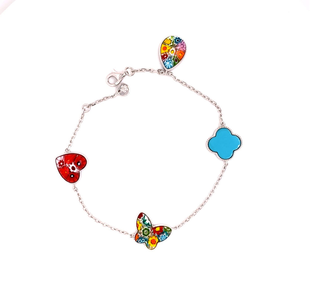 MURANO MILLEFIORI MULTI COLORED CHARM BRACELET