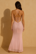 Barcelona Rhinestone Mesh Corset Back Maxi Mermaid Dress