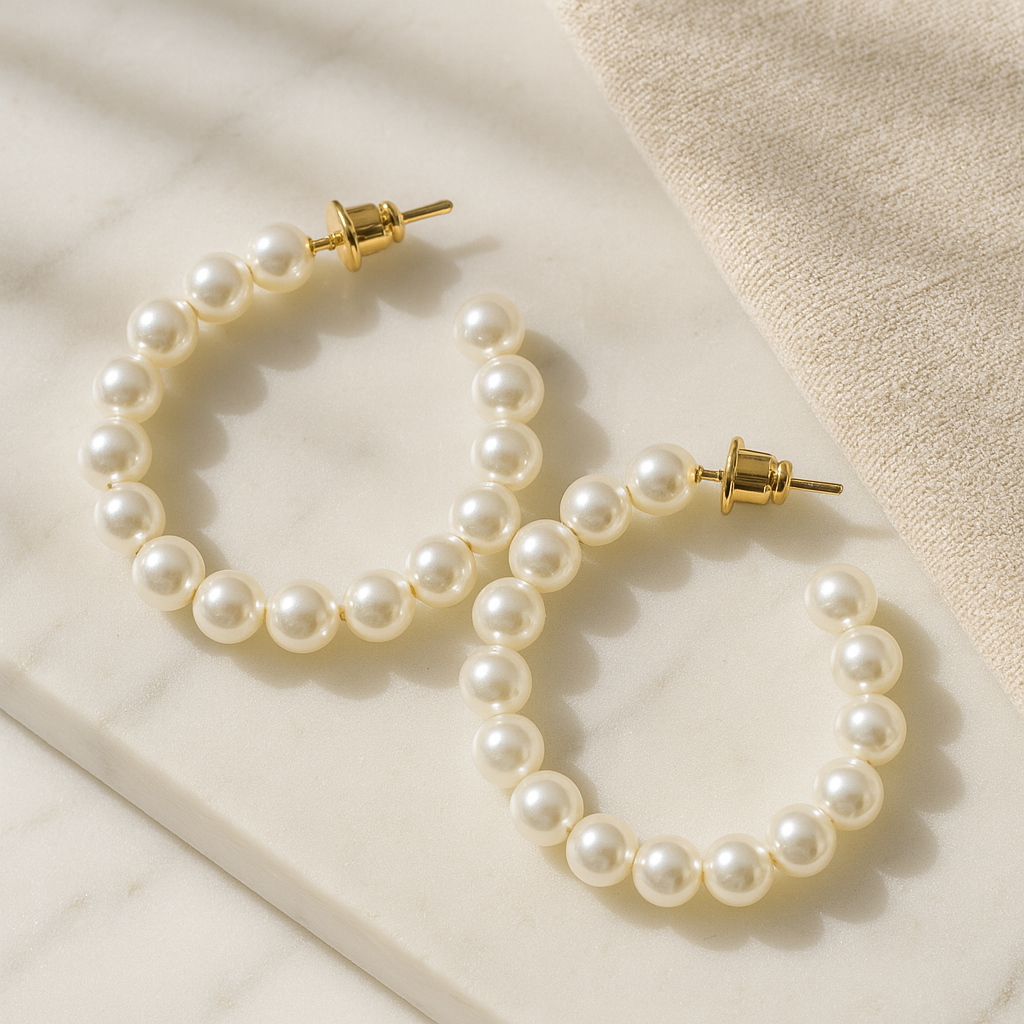 • Classic Hoop Shape: Open round form with full pearl coverage