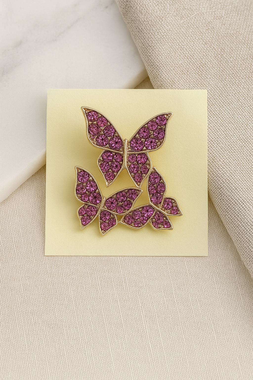 Elevate your accessory game with these Clustered Butterfly Stud Earrings. Featuring a stunning arrangement of rhinestone-encrusted butterflies, these bold stud earrings deliver maximum sparkle and whimsical elegance—perfect for adding a touch of glamour to any outfit.