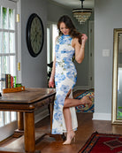 Unleash your inner romantic with our Melbourne Mesh Sleeveless Floral Maxi Dress! The stunning floral print and high neck ruched gathering add a touch of elegance, while the stretchy material ensures the perfect fit for your curves. Lined for comfort and featuring a side thigh slit, this dress is the perfect choice for any special occasion.