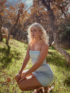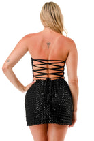 Elevate your evening look with this strapless mini dress, expertly crafted for petite frames. Delicate tulle layer, fully lined. Adorned with lustrous pearls and shimmering sequins that catch the light beautifully. The corset back provides elegant support and a flattering silhouette allowing you to tie the dress perfectly to your ribcage. Strapless neckline offers a refined, feminine appeal. Perfect for cocktail events, celebrations, or any occasion calling for understated glamour and chic sophistication.