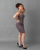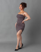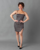 Rose gold and black striped glitter mini dress + slit