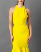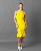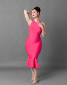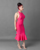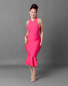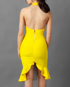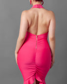 This Backless Halter Bandage Dress is perfect for your next girls' trip! Made from a form-fitting material that snatches your body fitting like it has built in shapewear. The back falls low and is complete with a zipper and hook eye closure. The back has a center scrunch that gives a wonderful butt lift shape.