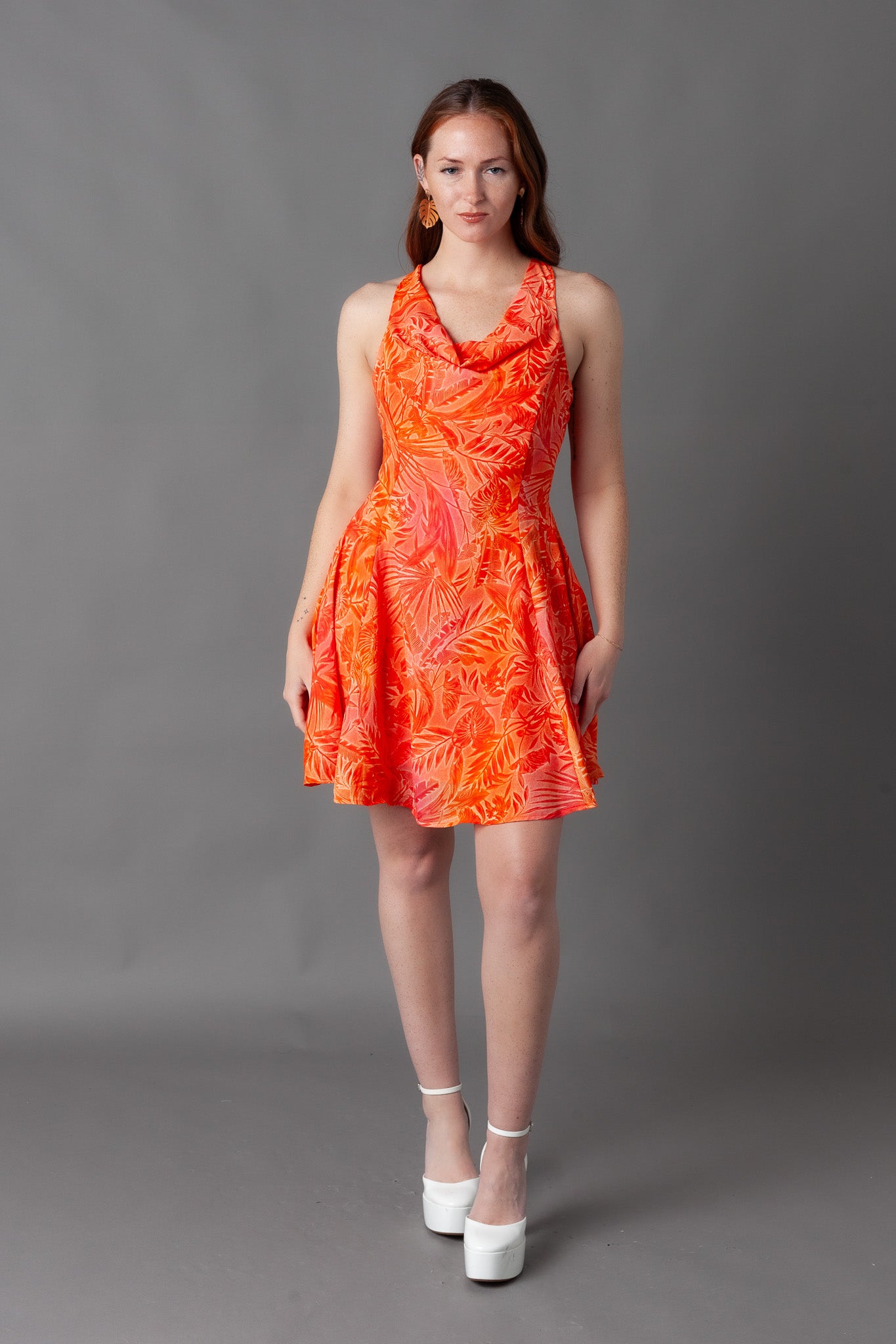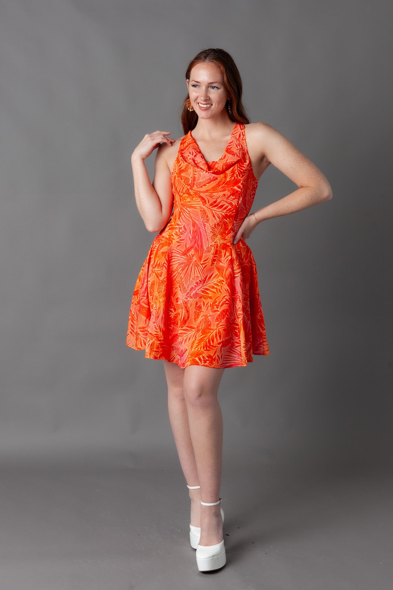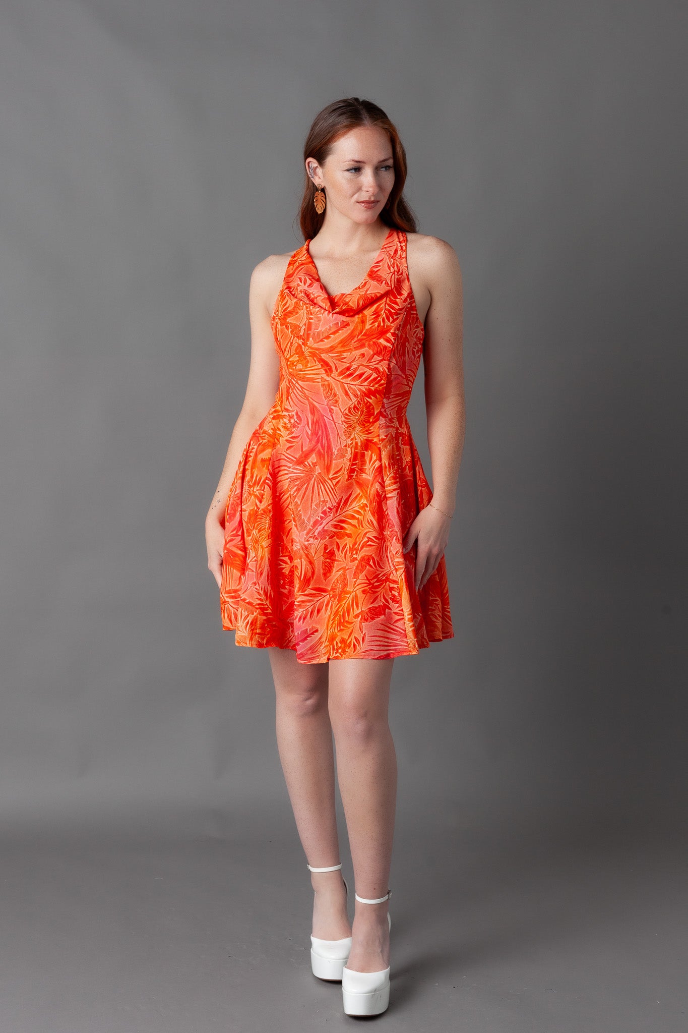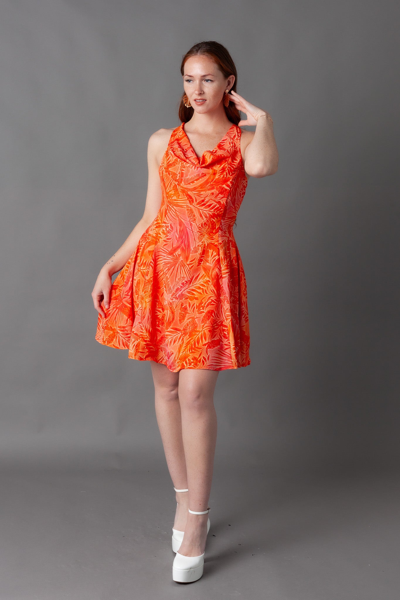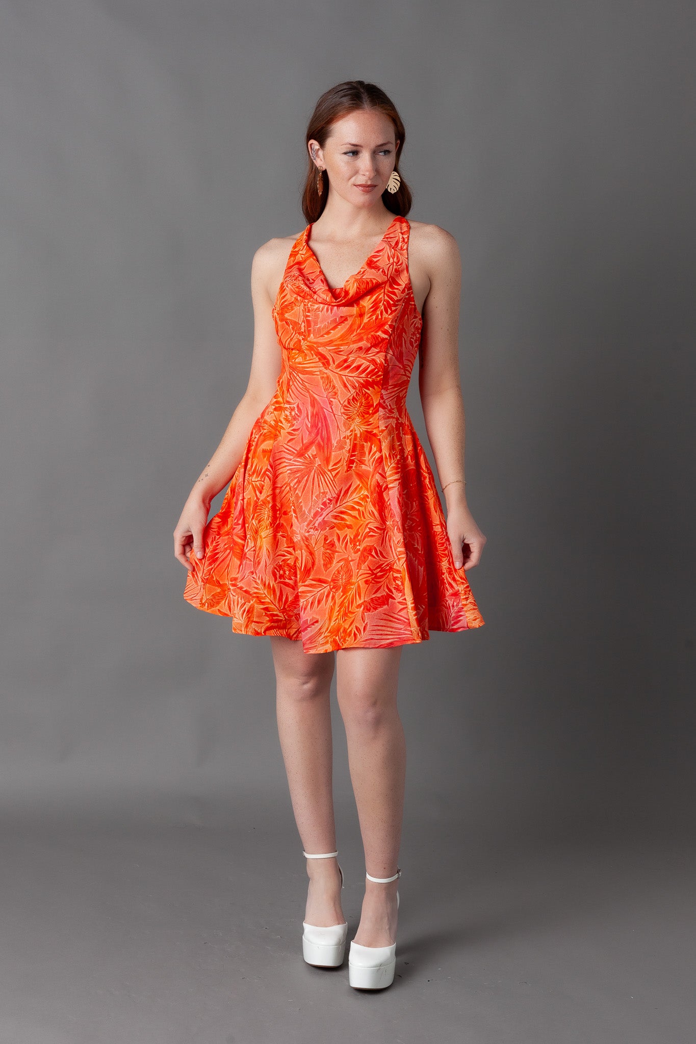 Giza Printed Cowl Neck Mini Dress
