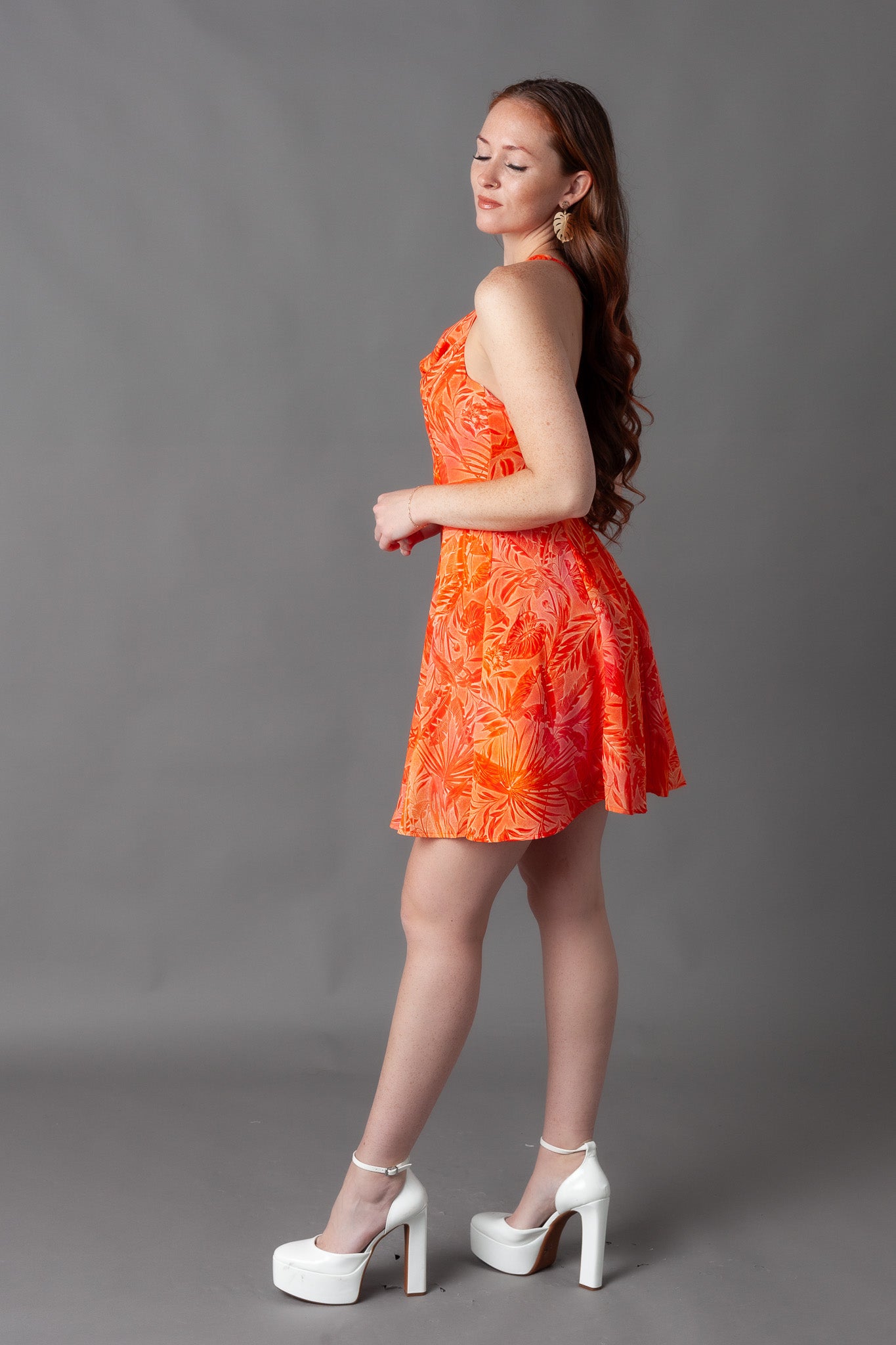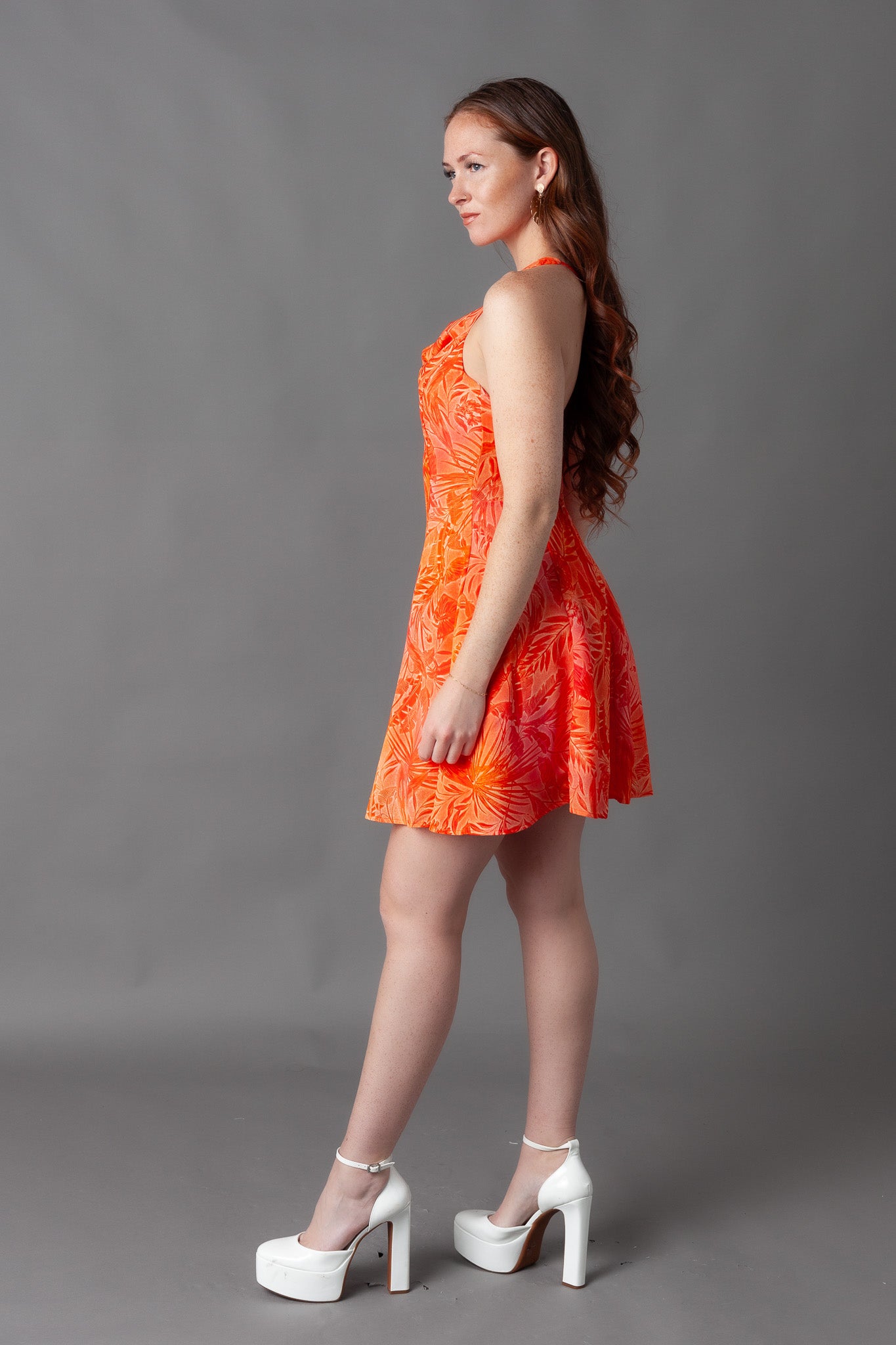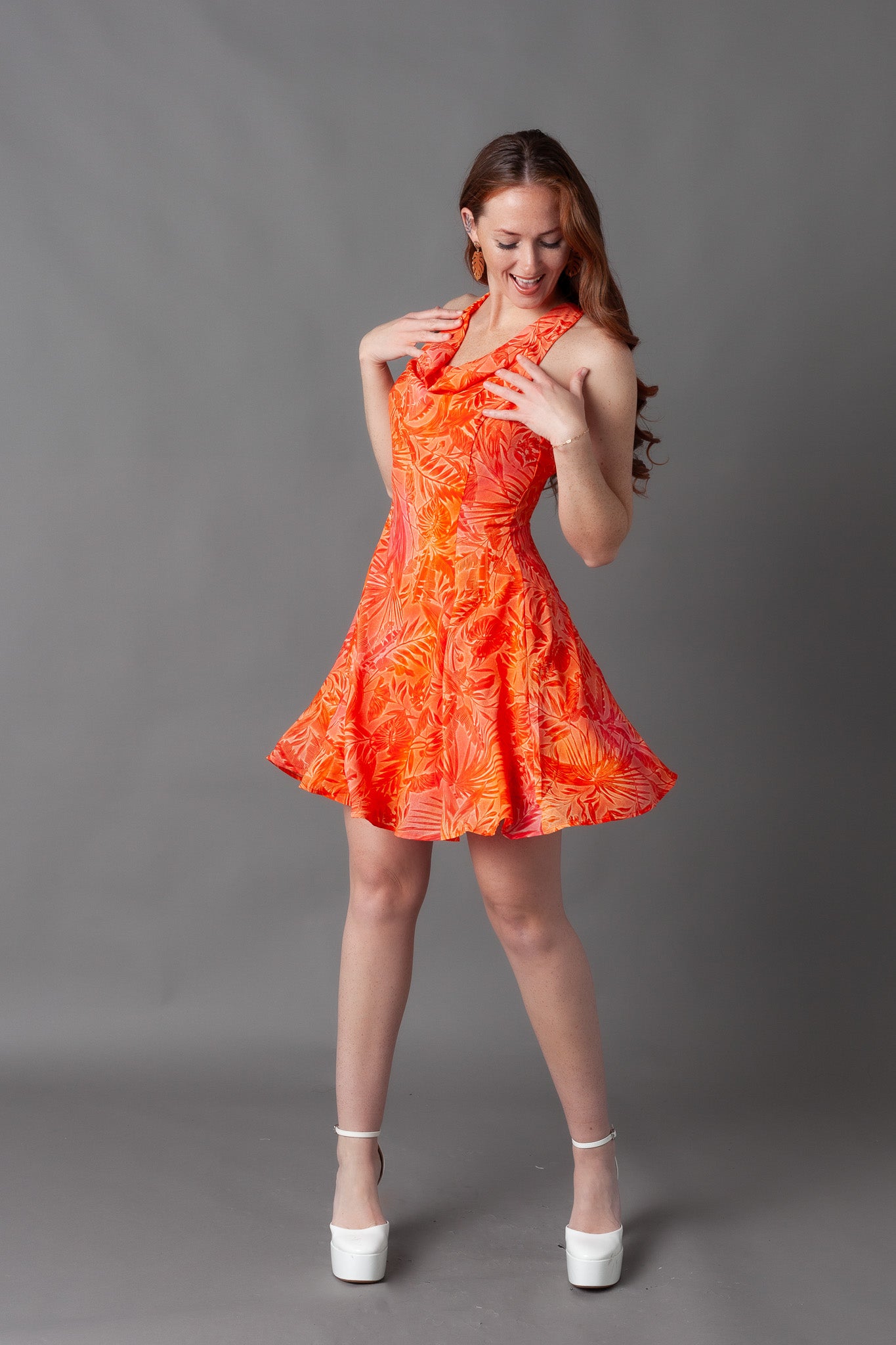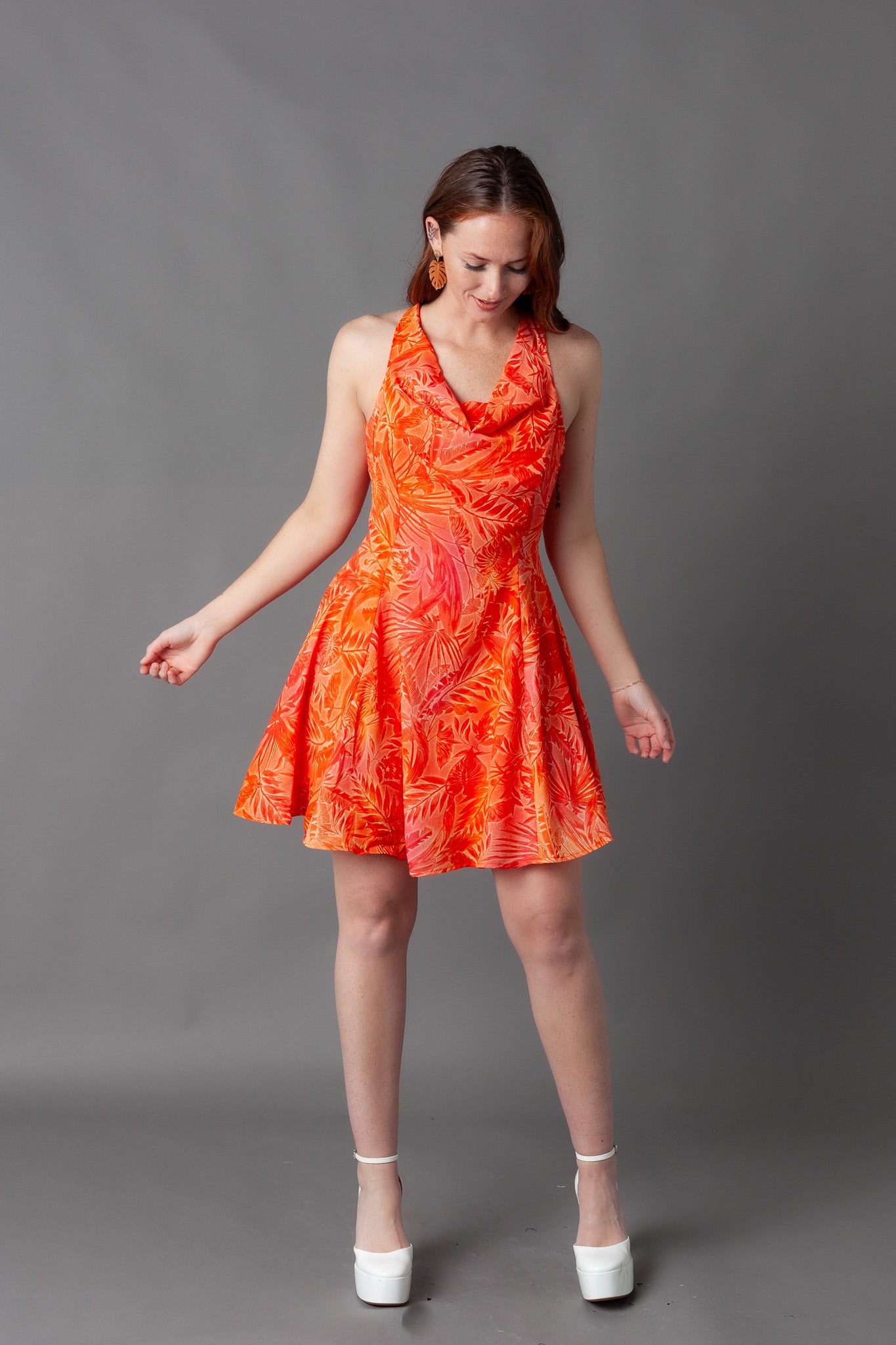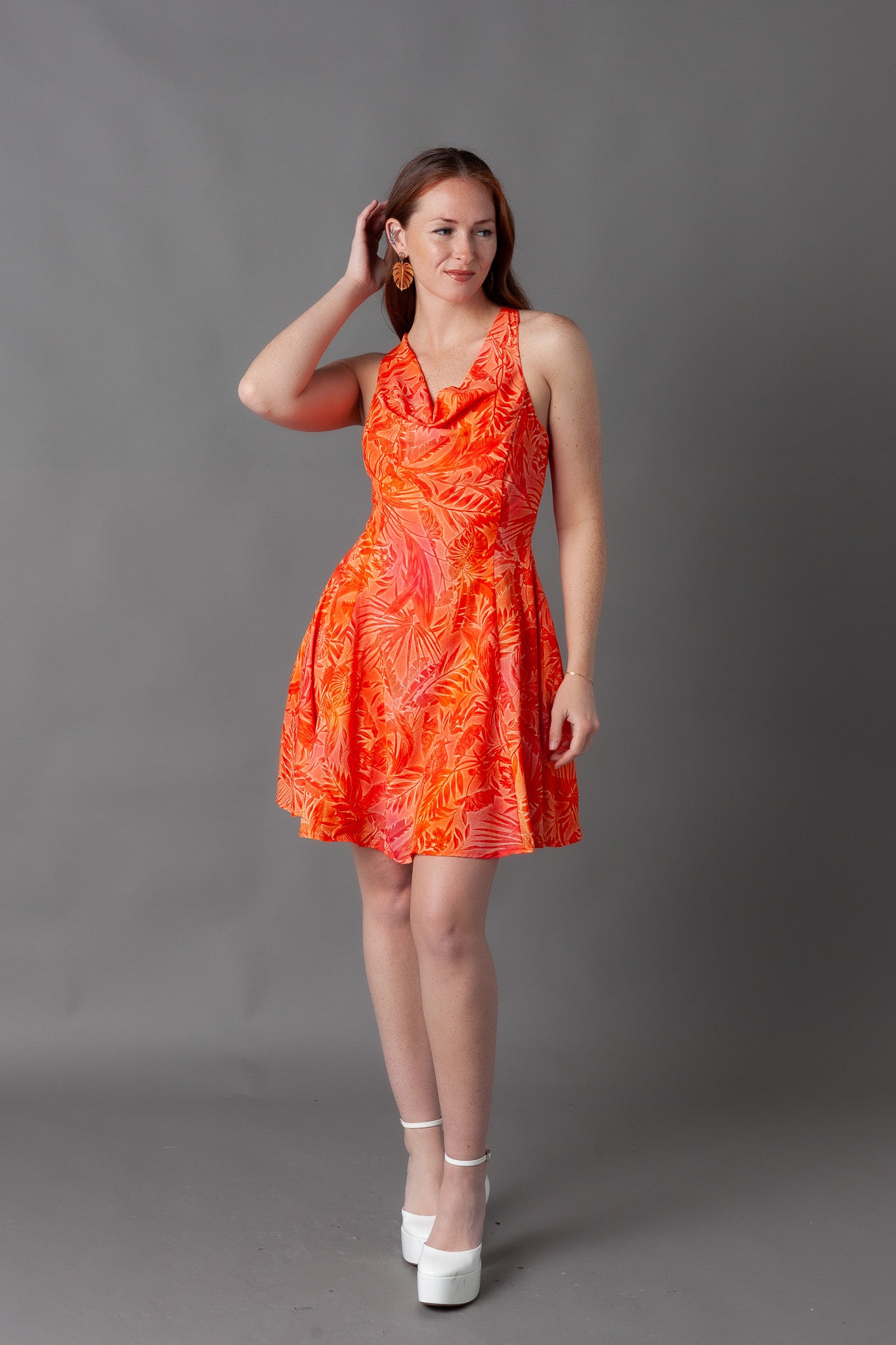 Giza Printed Cowl Neck Mini Dress