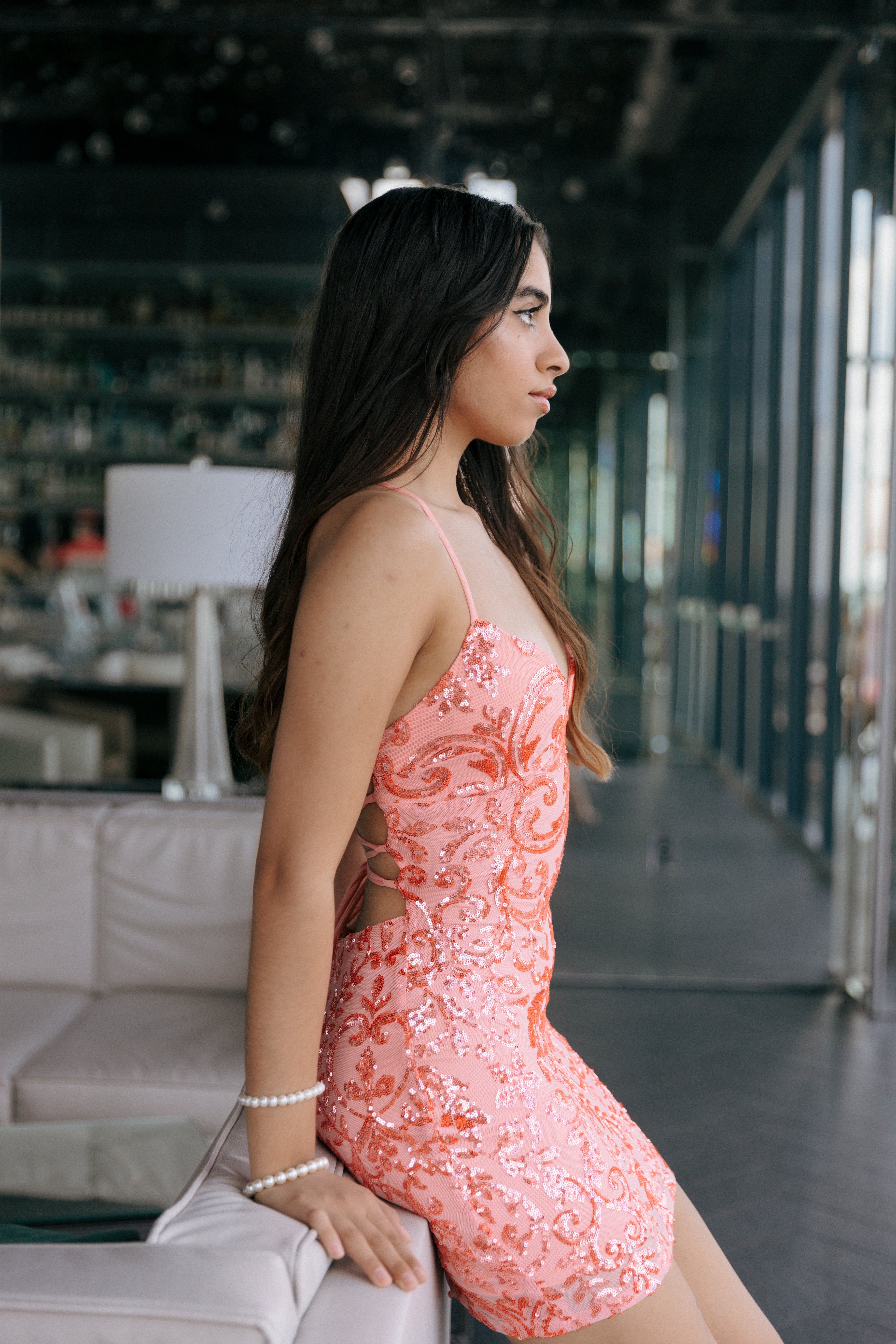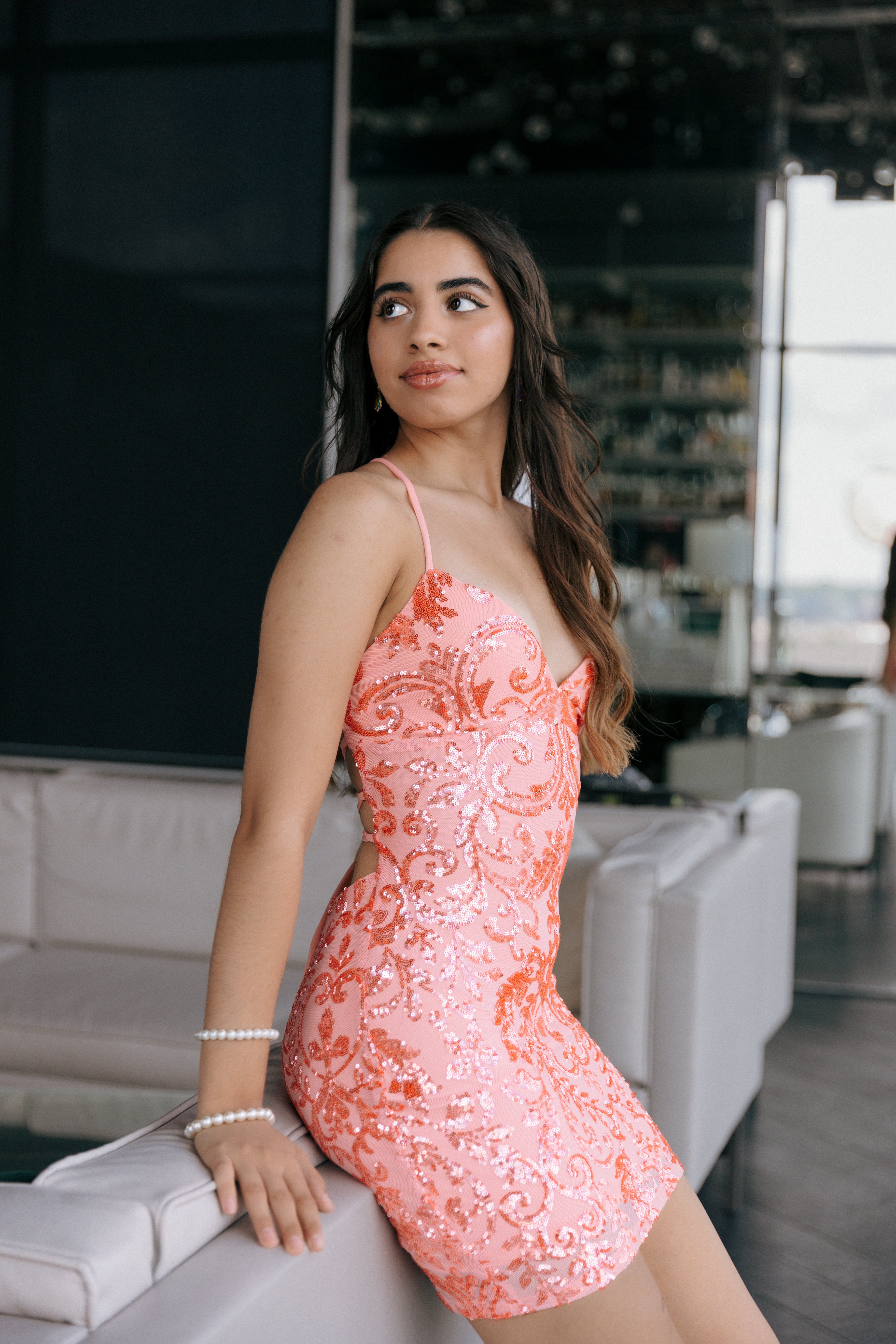 Sequin Scroll Bodycon Mini Dress with Corset Lace-Up Back