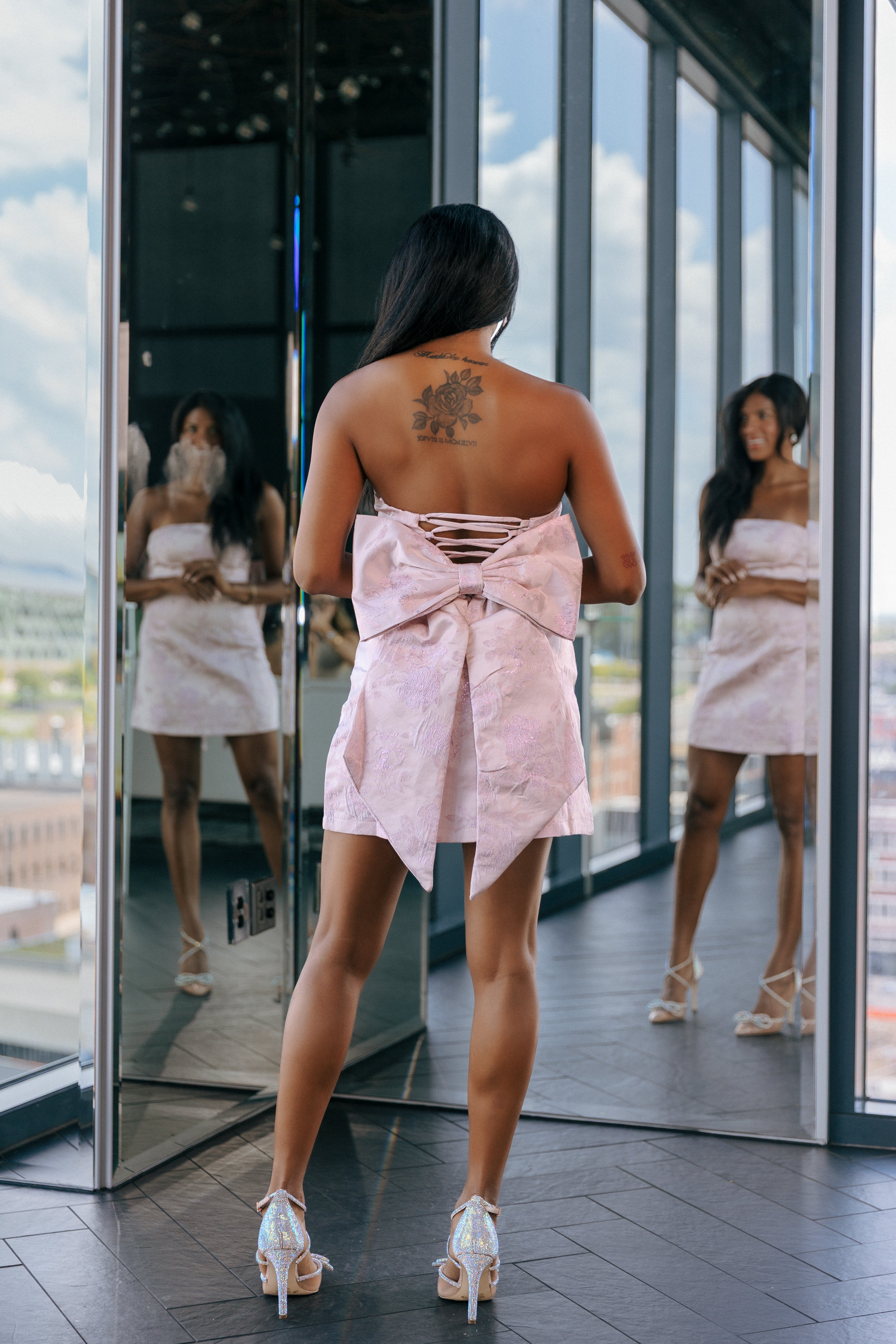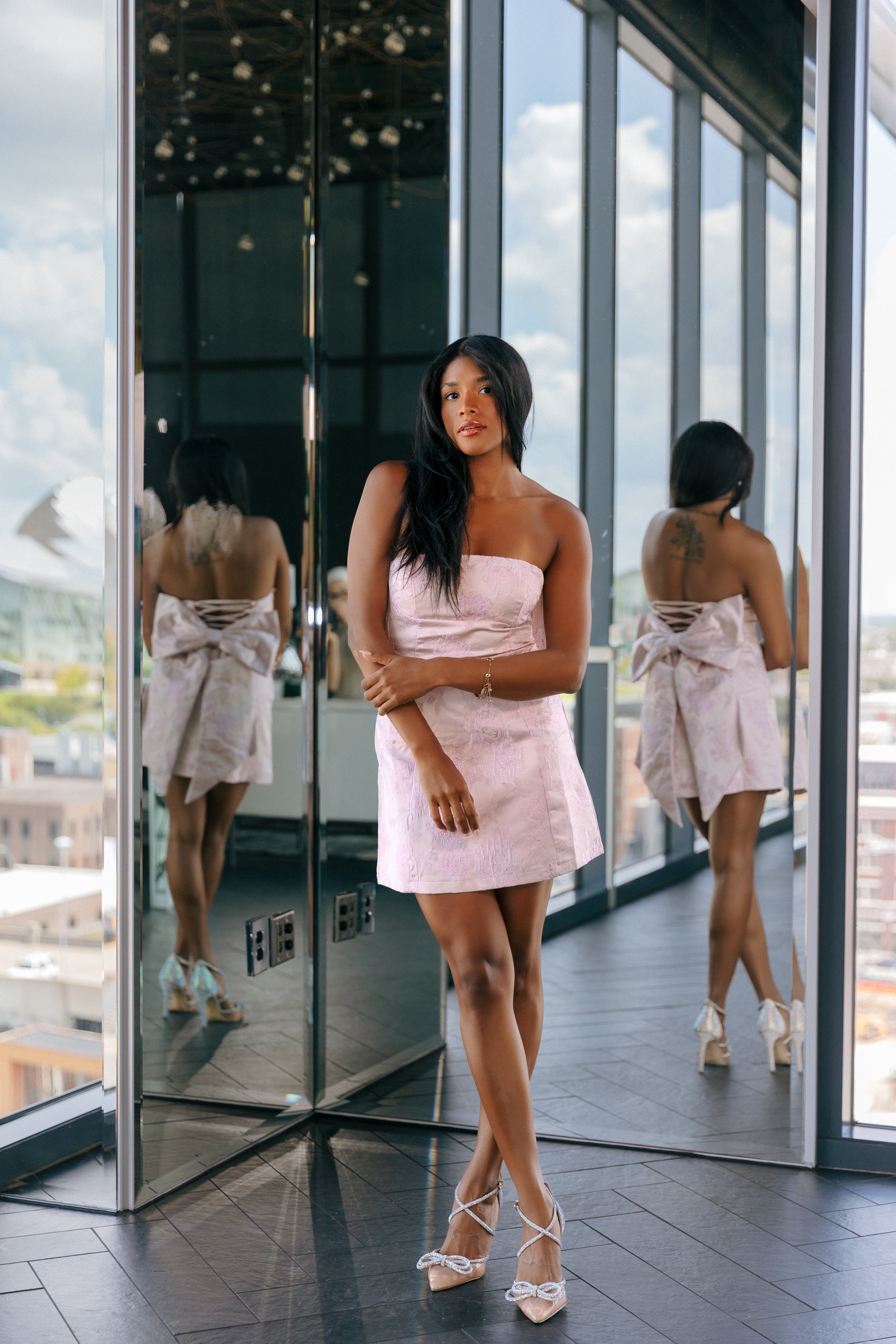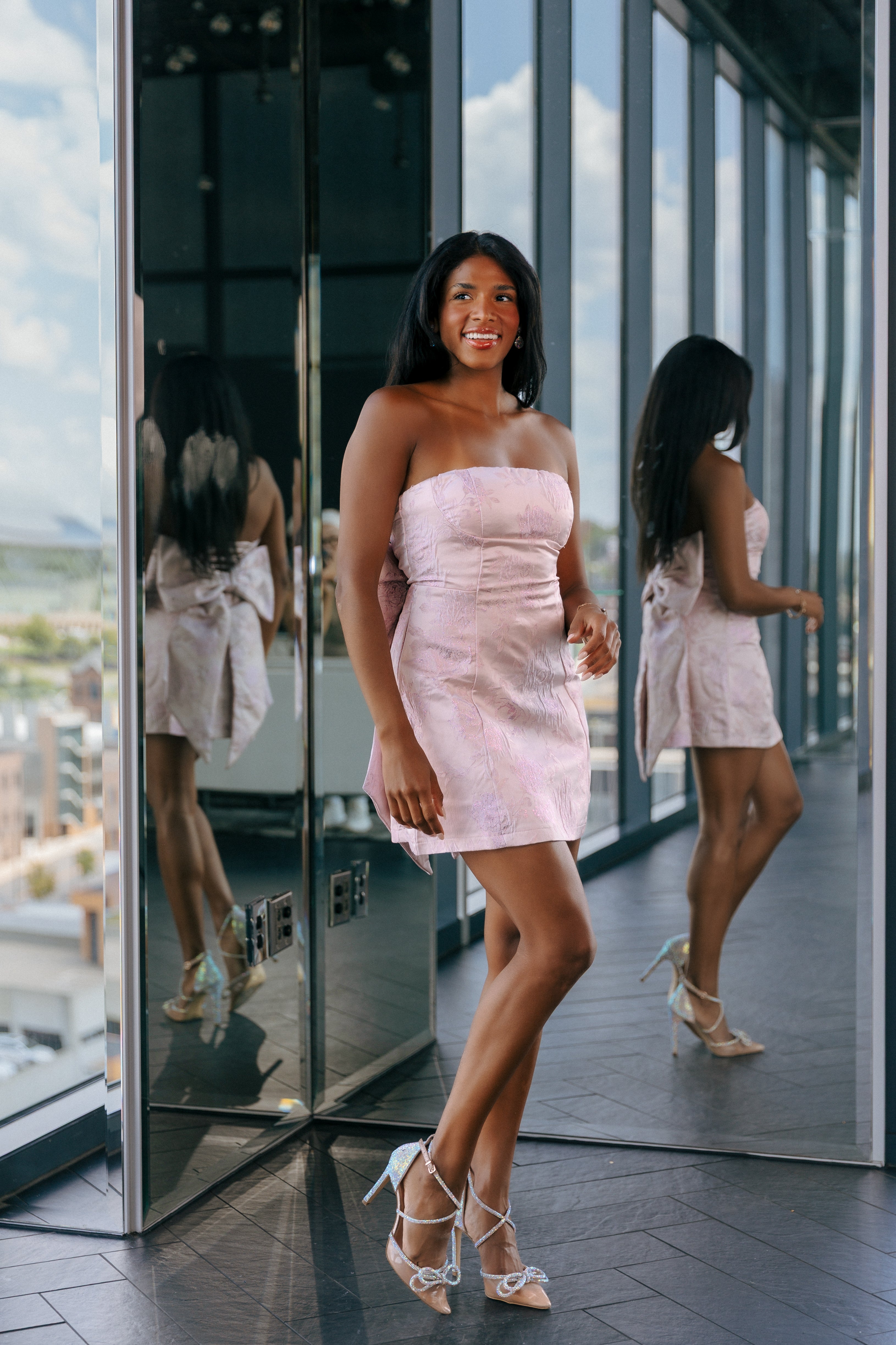 Strapless Glitter Mini Dress + Removable Bow
