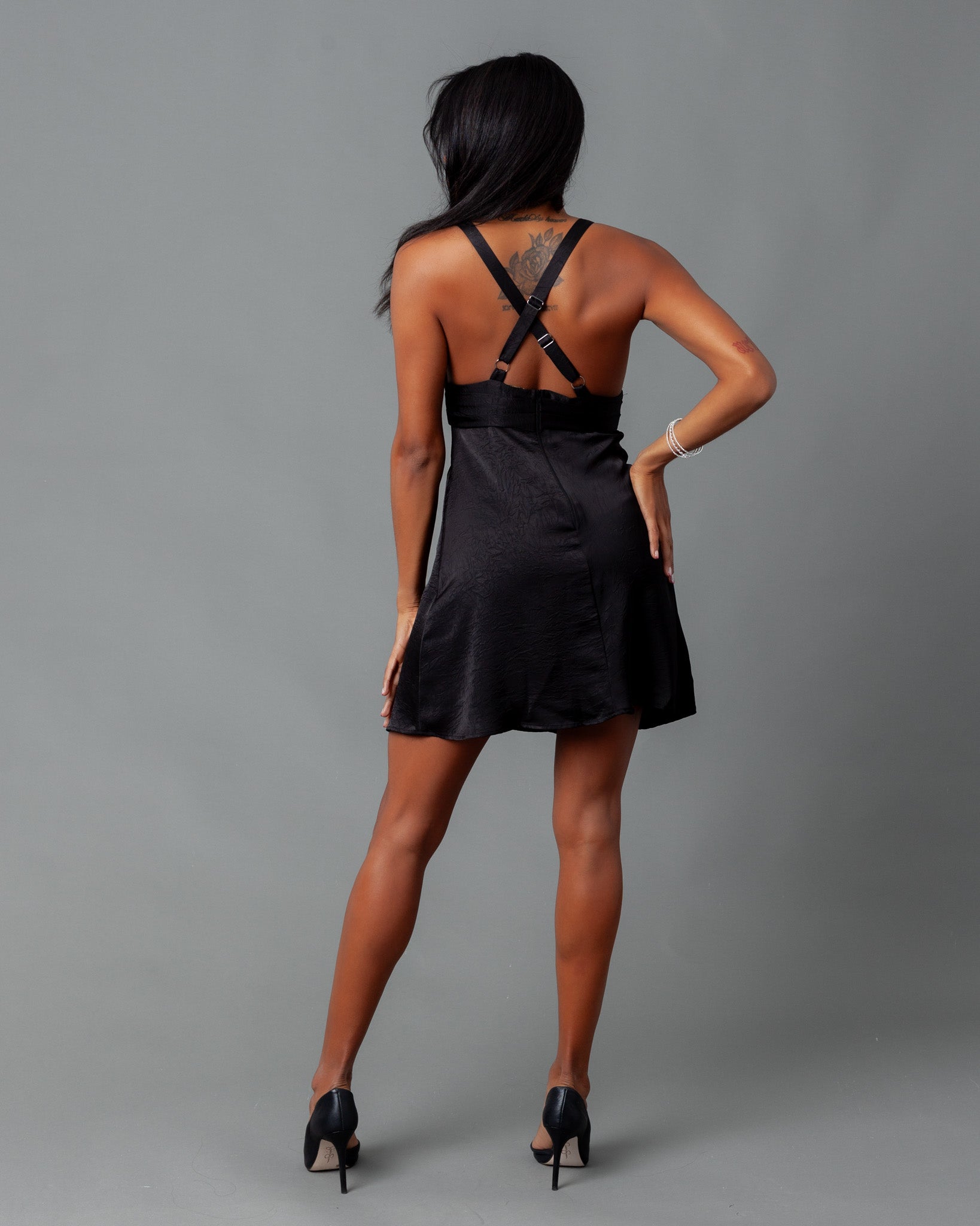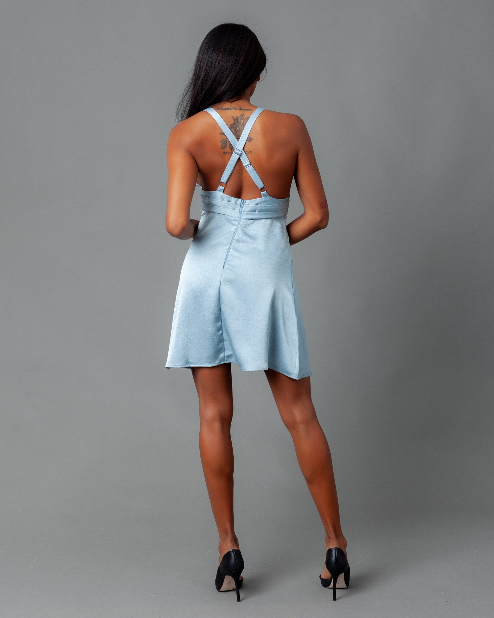 Barcelona Deep V Crinkle Satin Mini Dress
