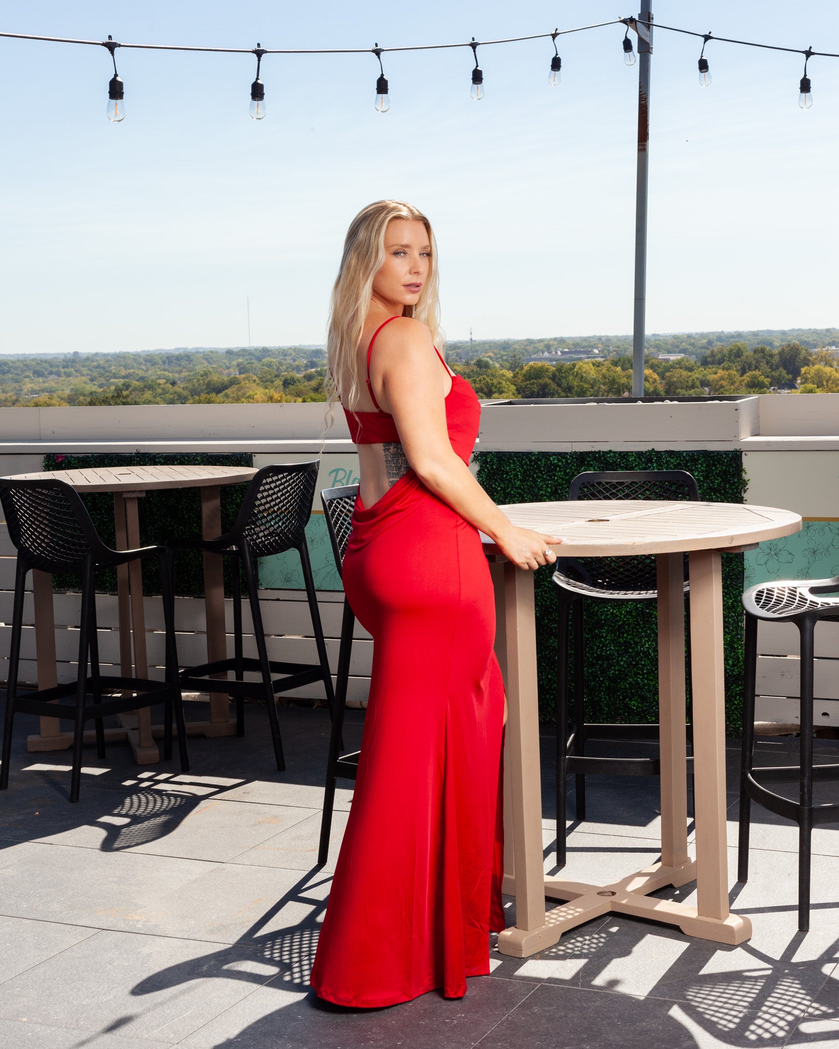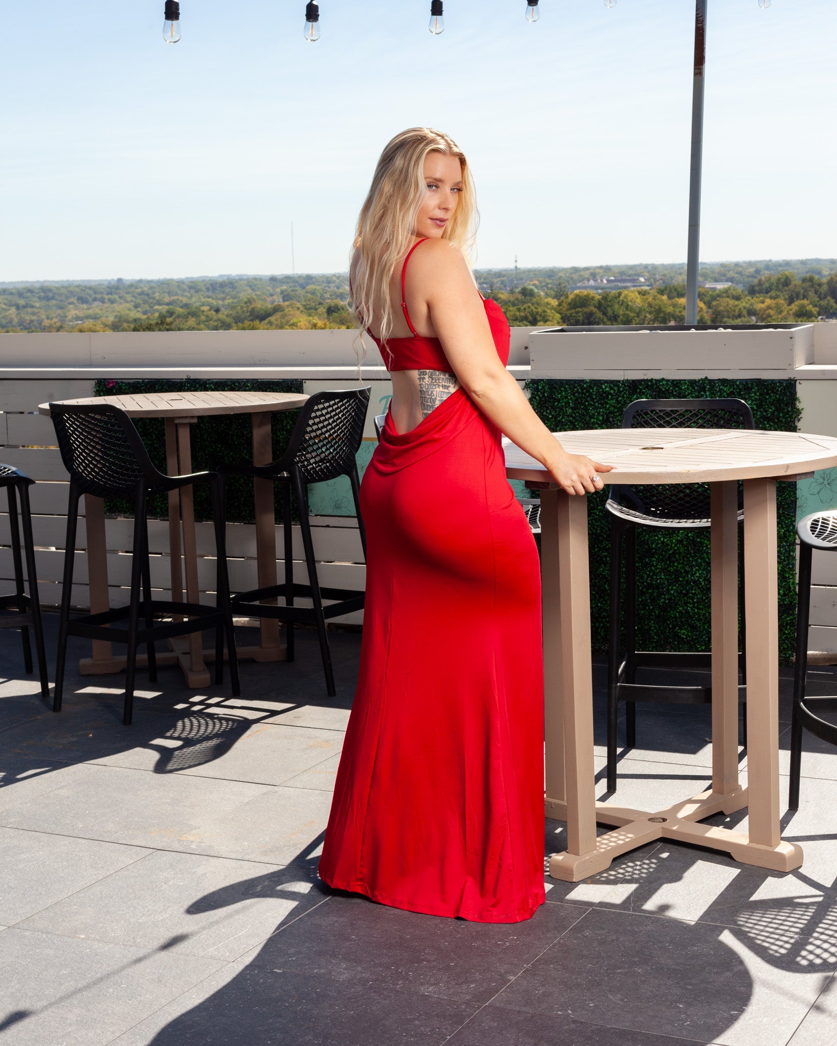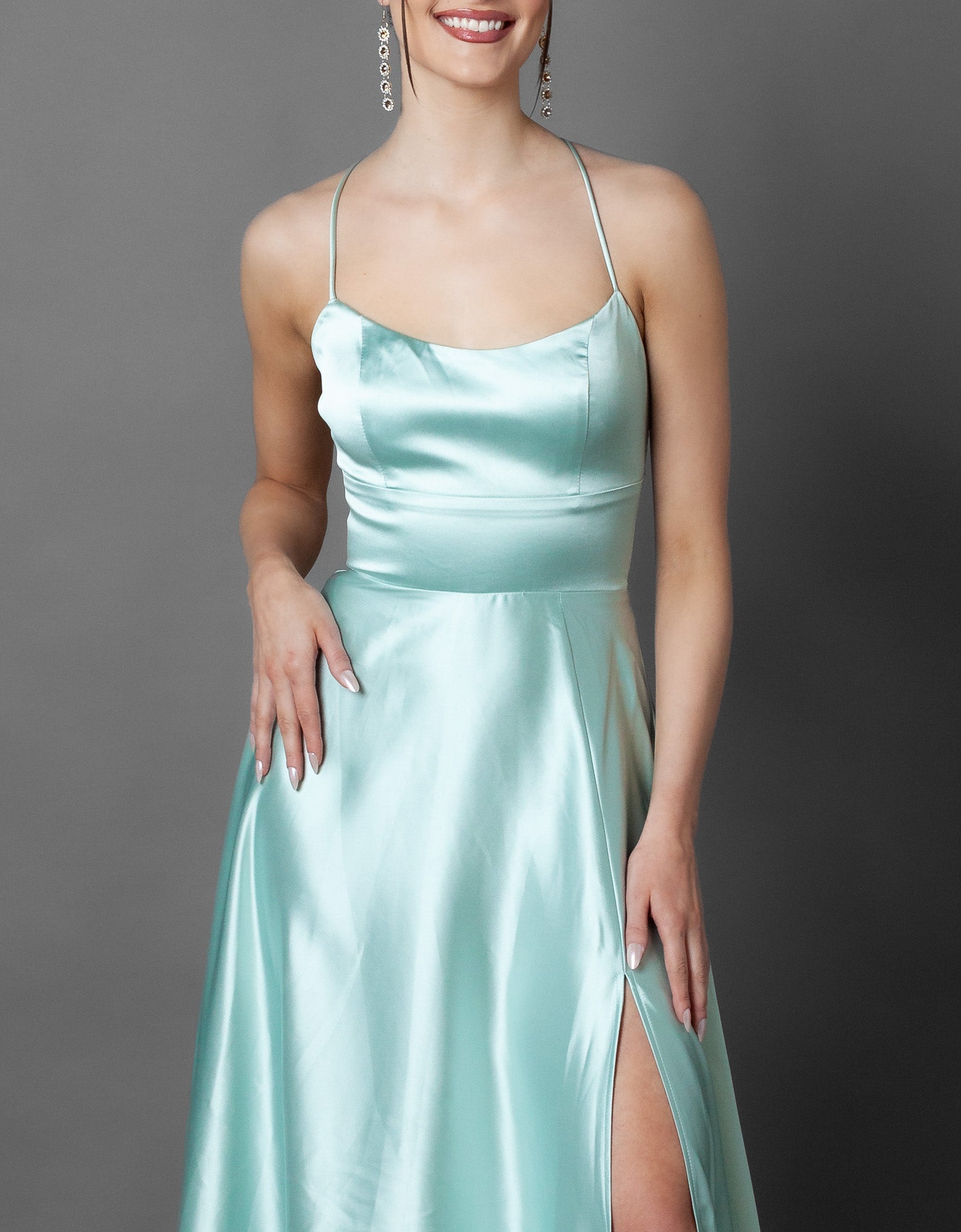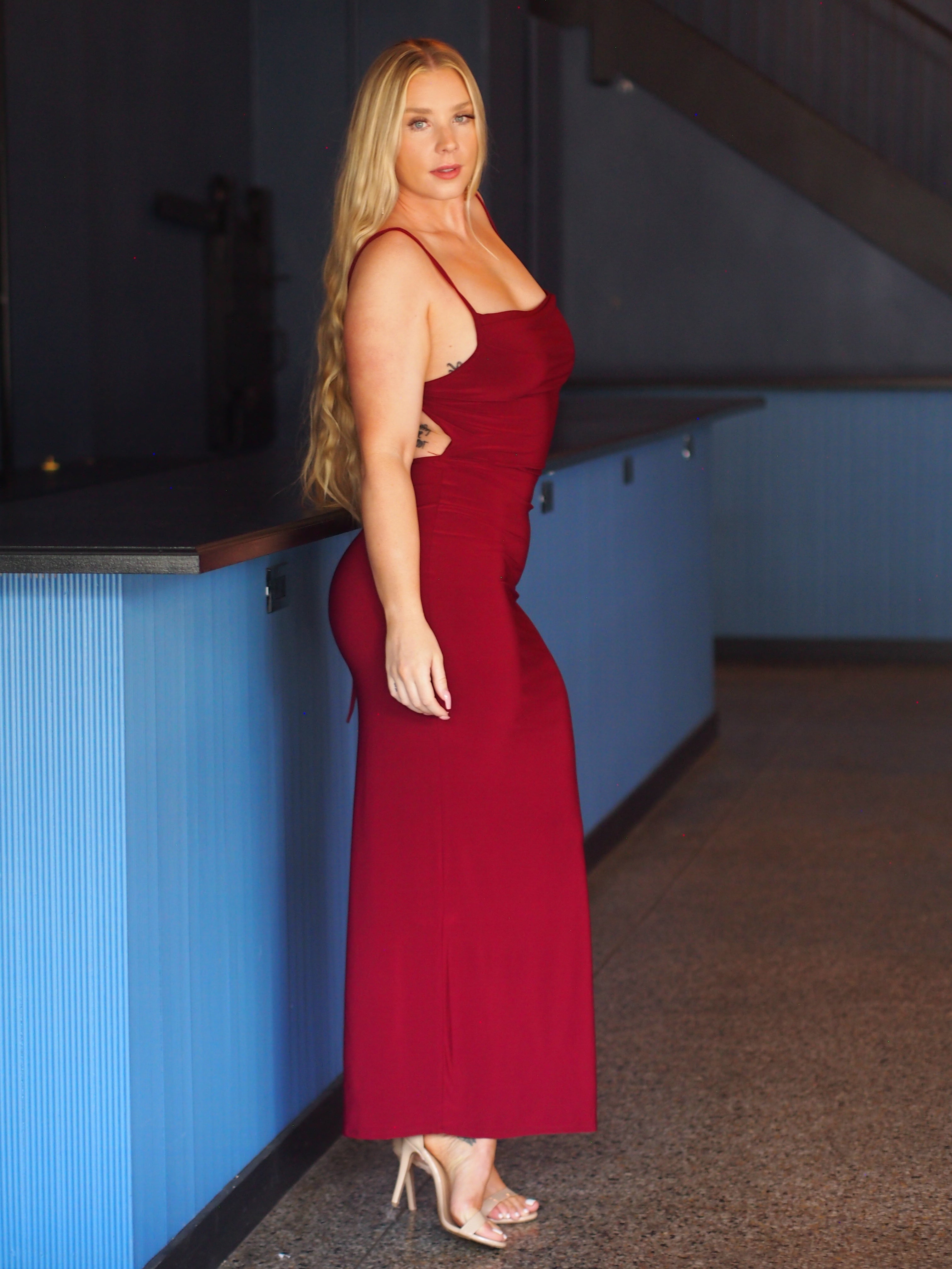 Cowl Neck Open Tie Back Maxi Dress + Thigh Slit