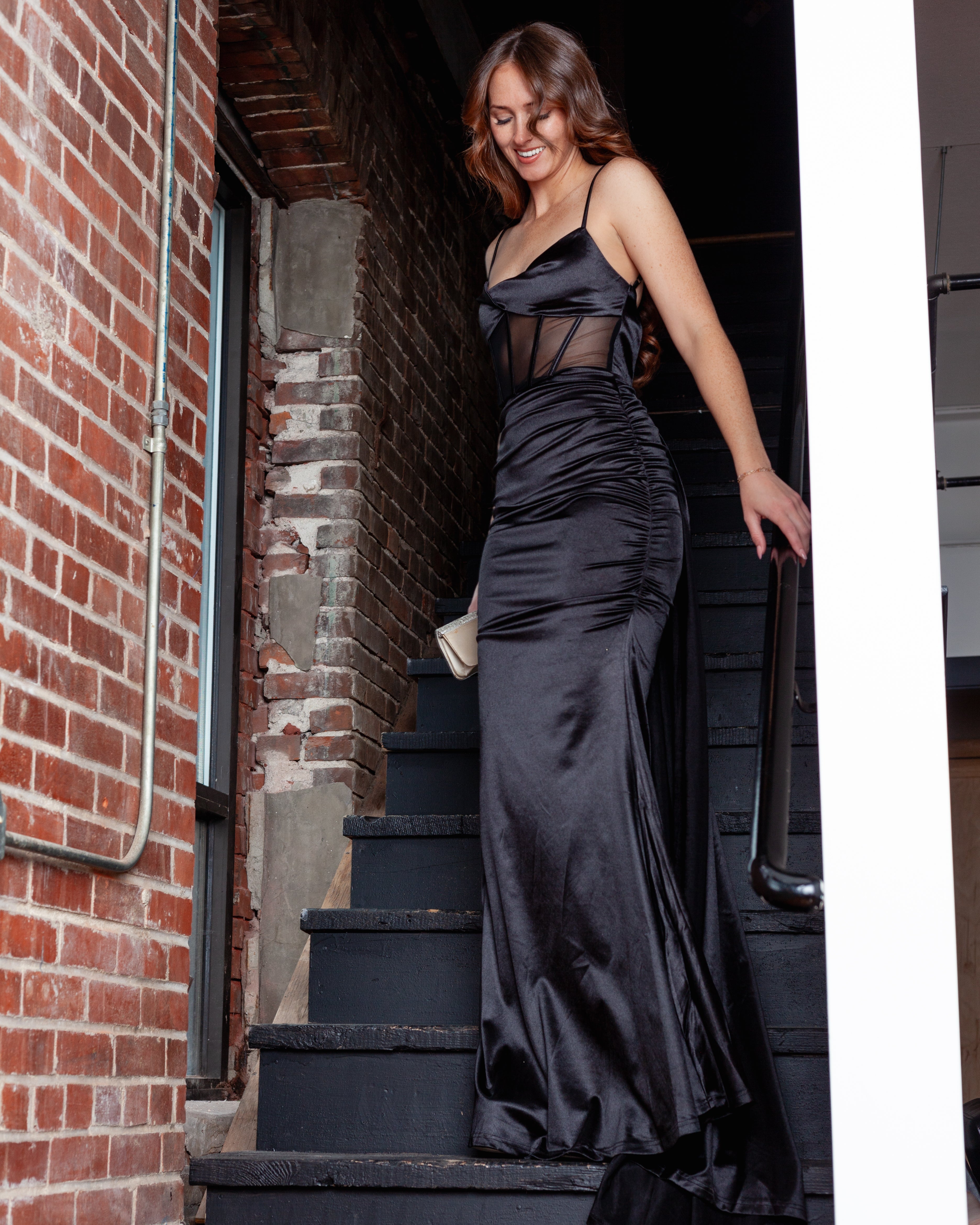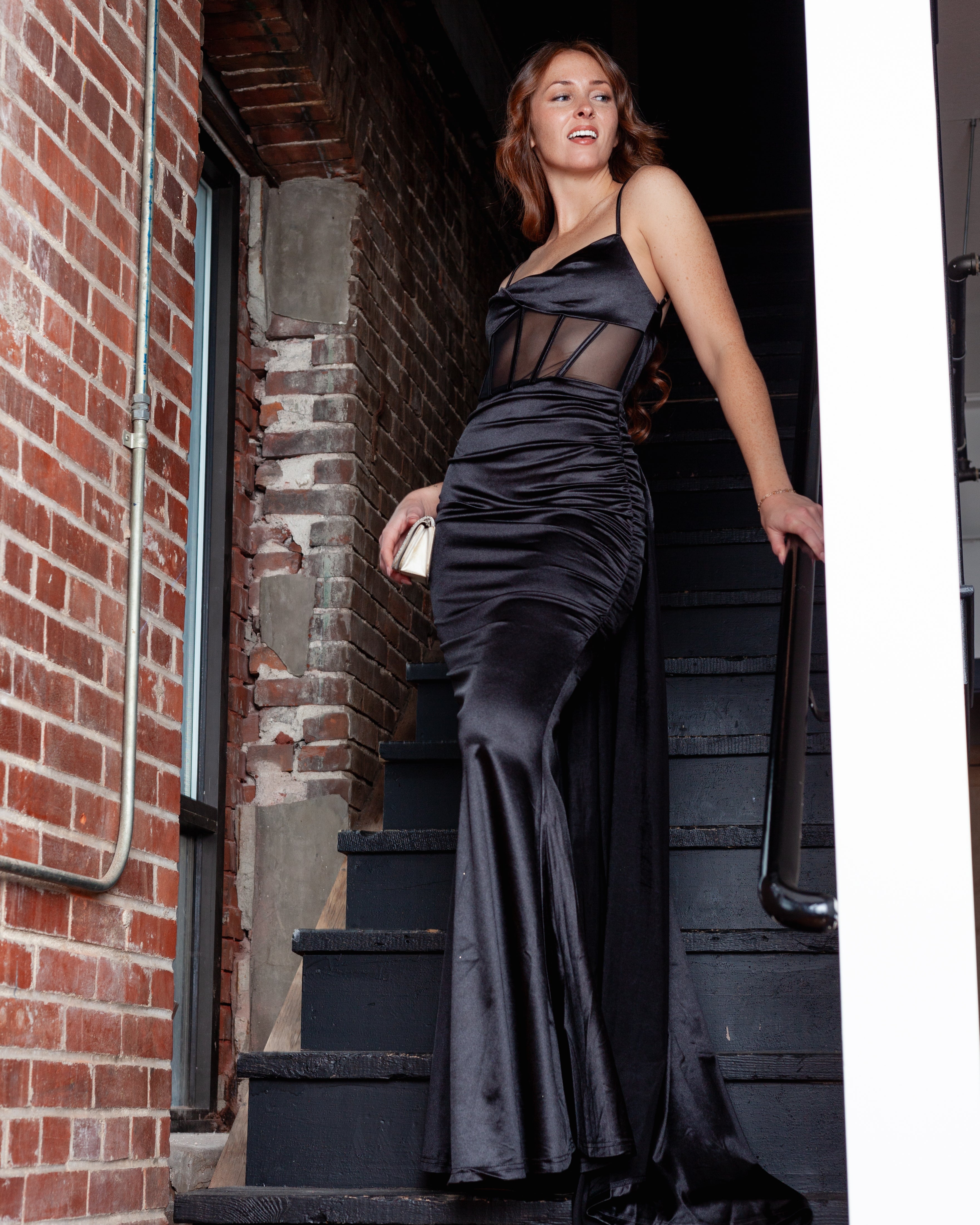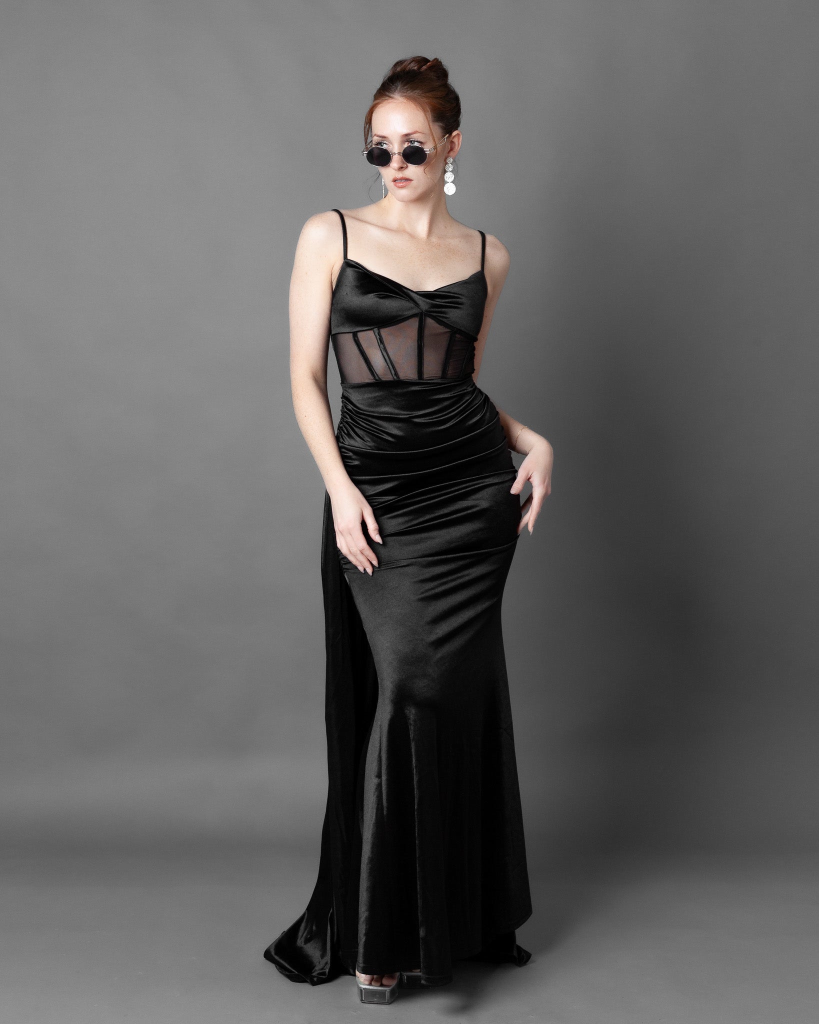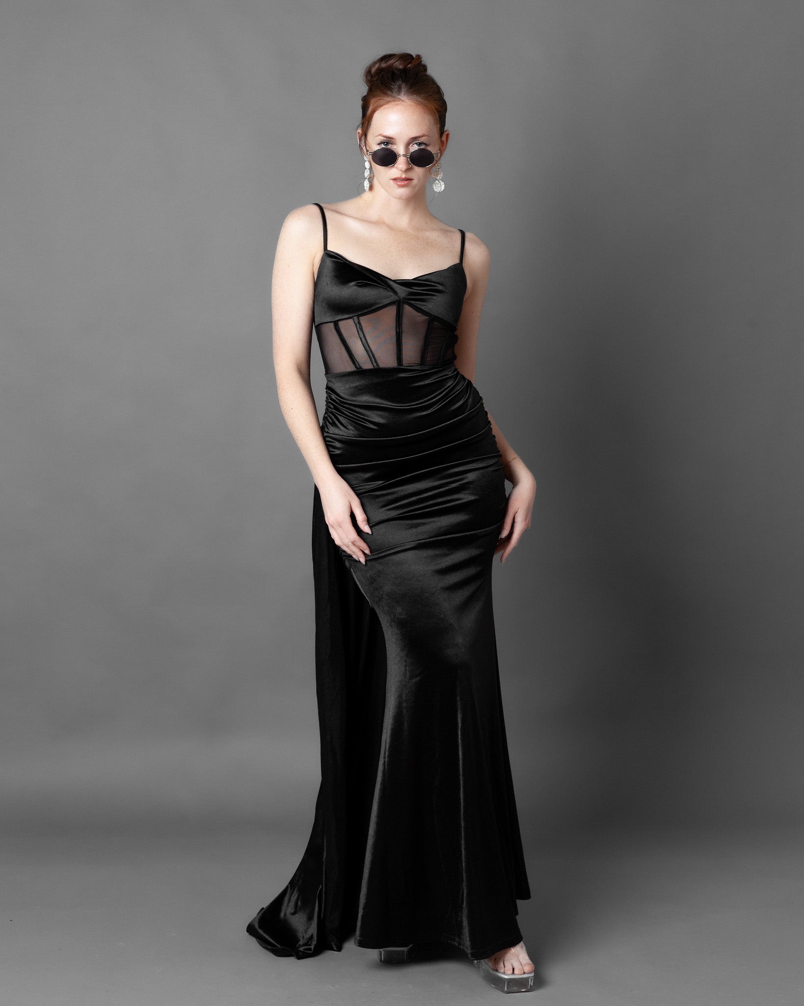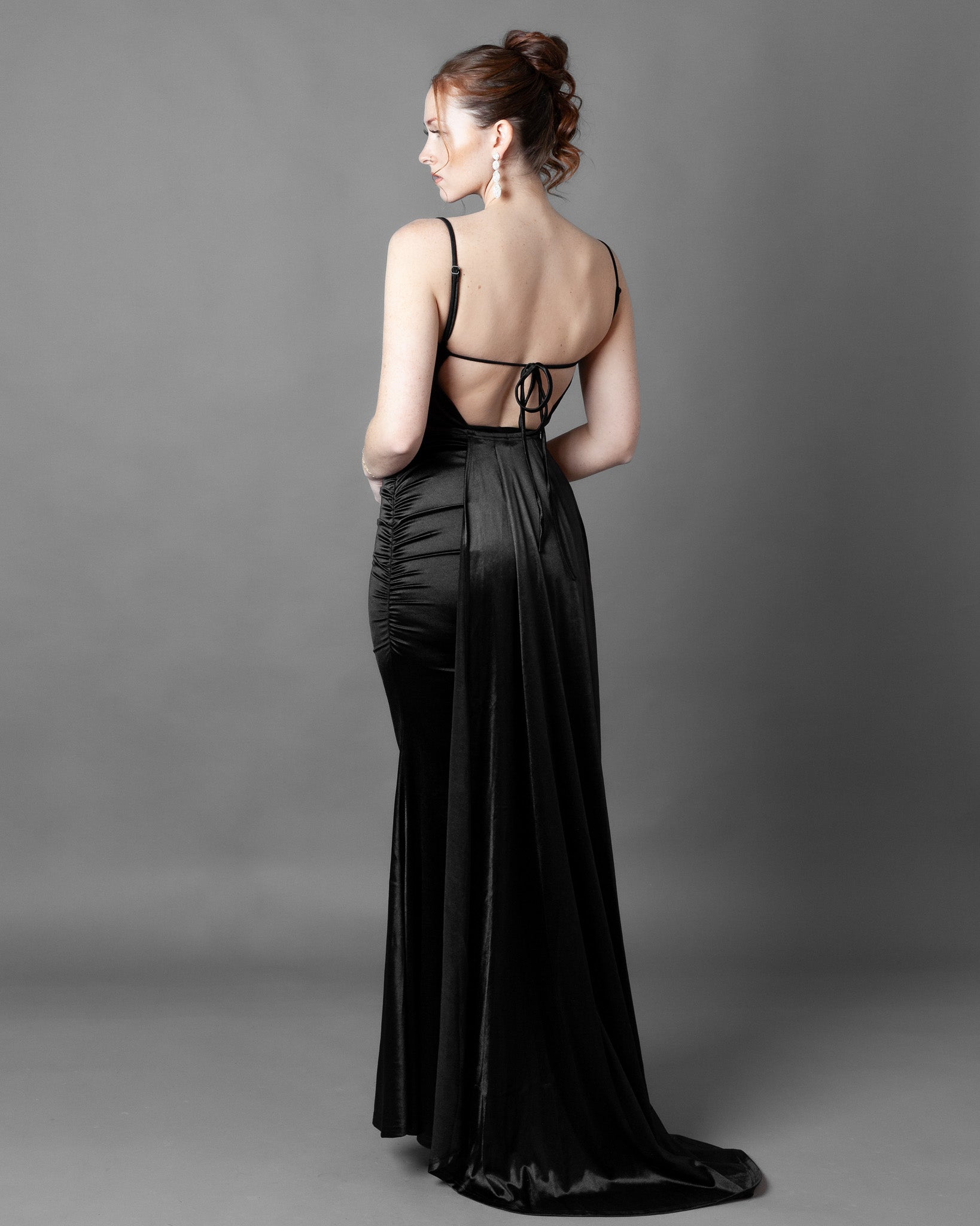 London Corset Satin Maxi Dress + Train
