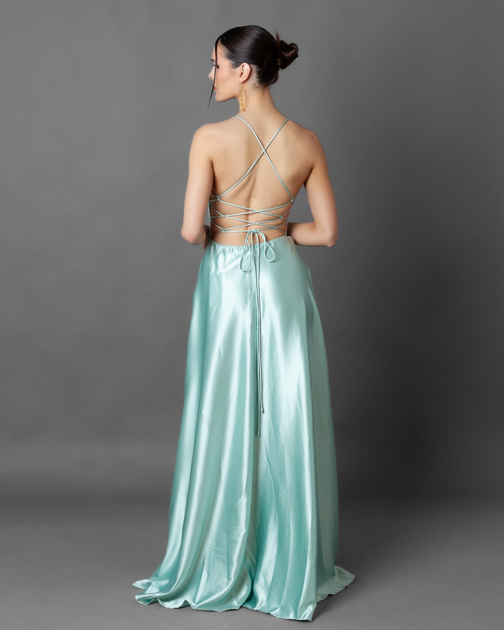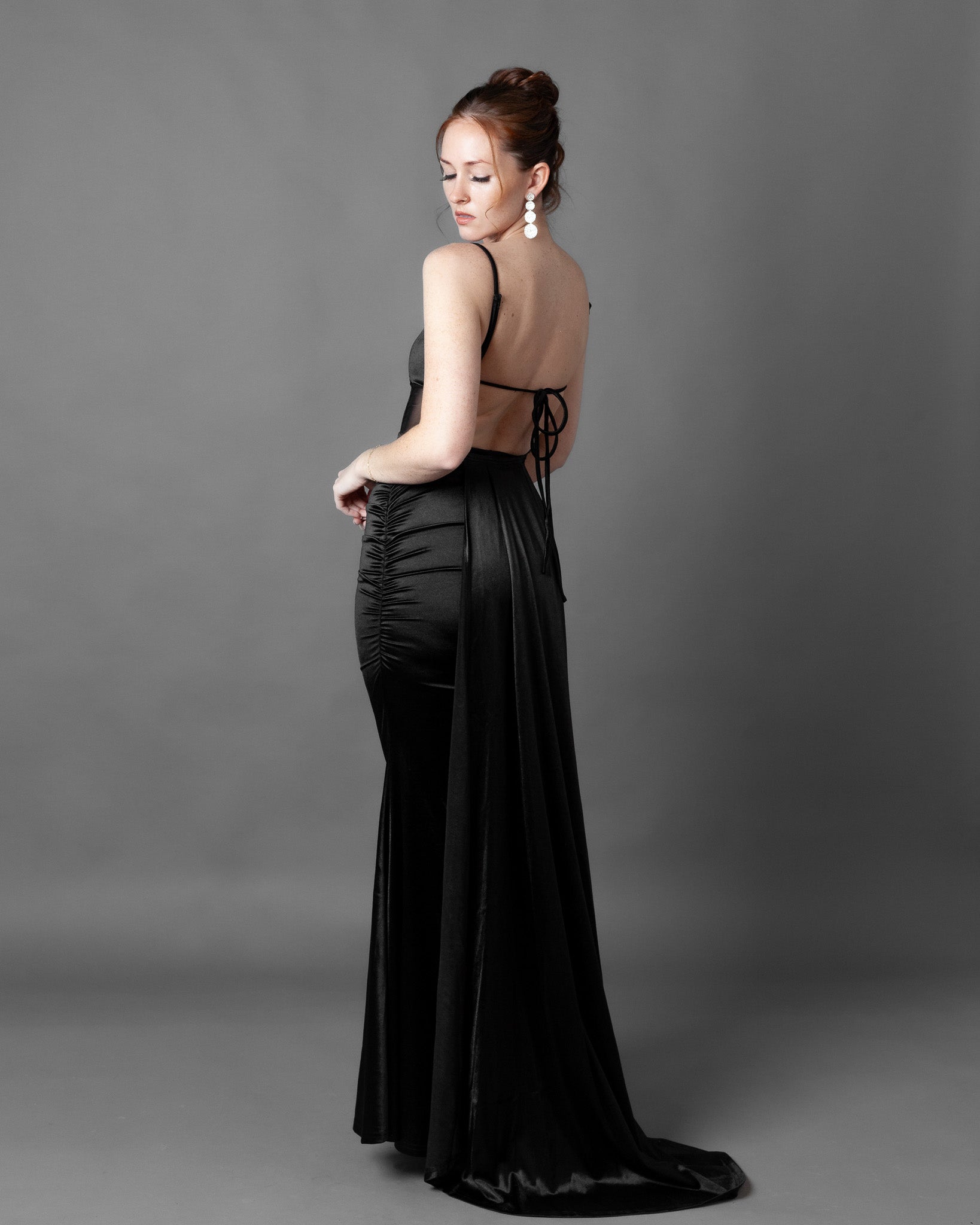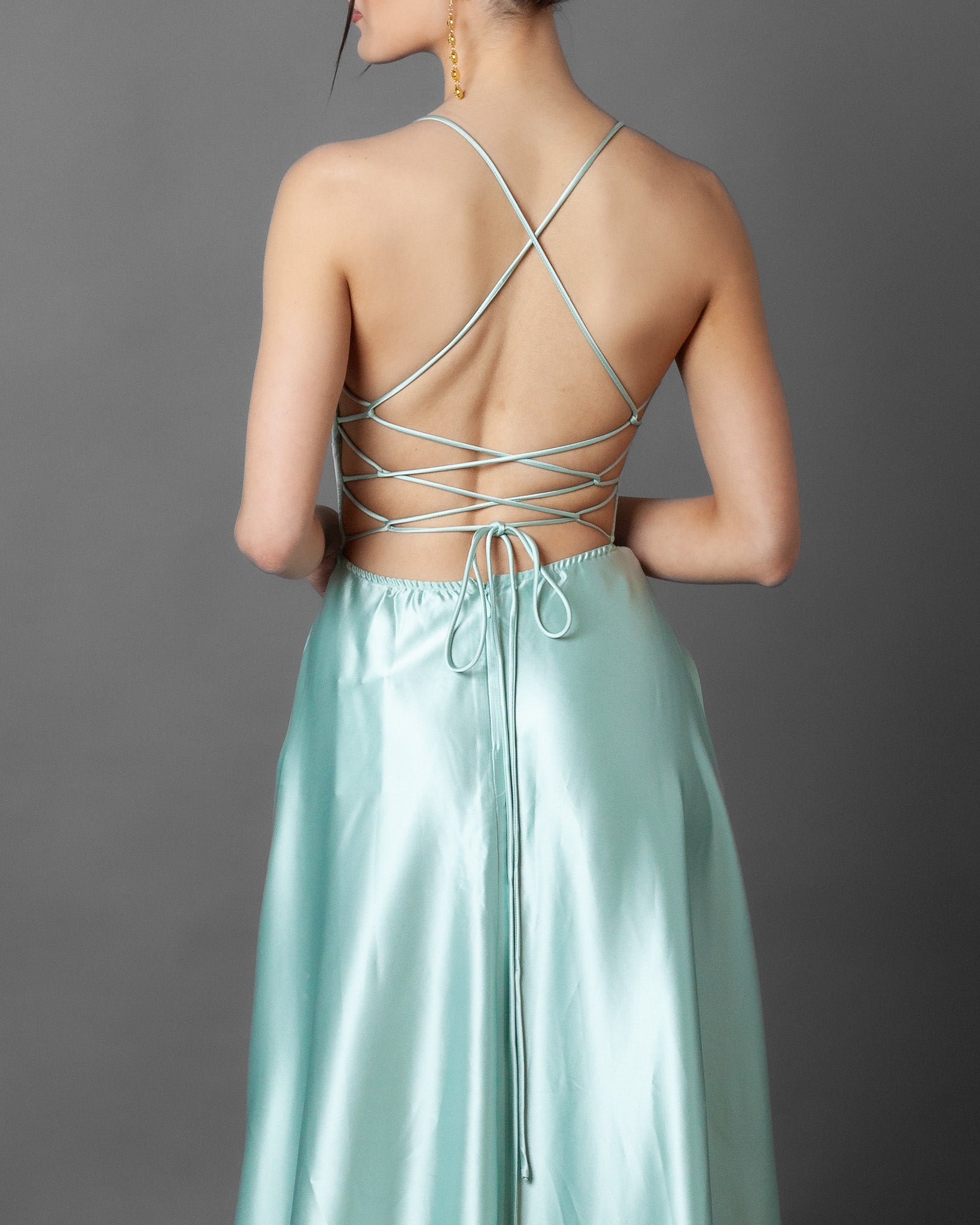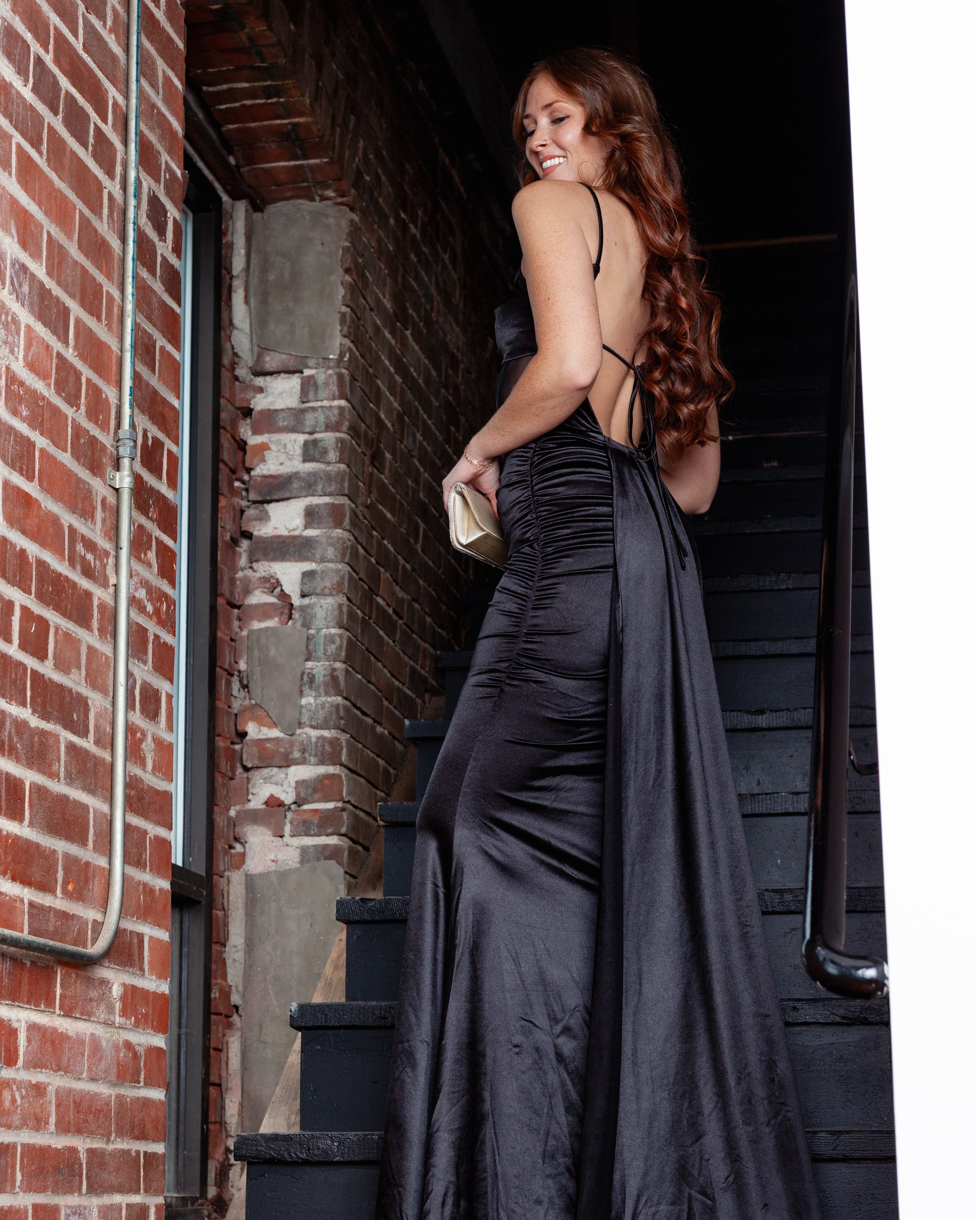 London Corset Satin Maxi Dress + Train