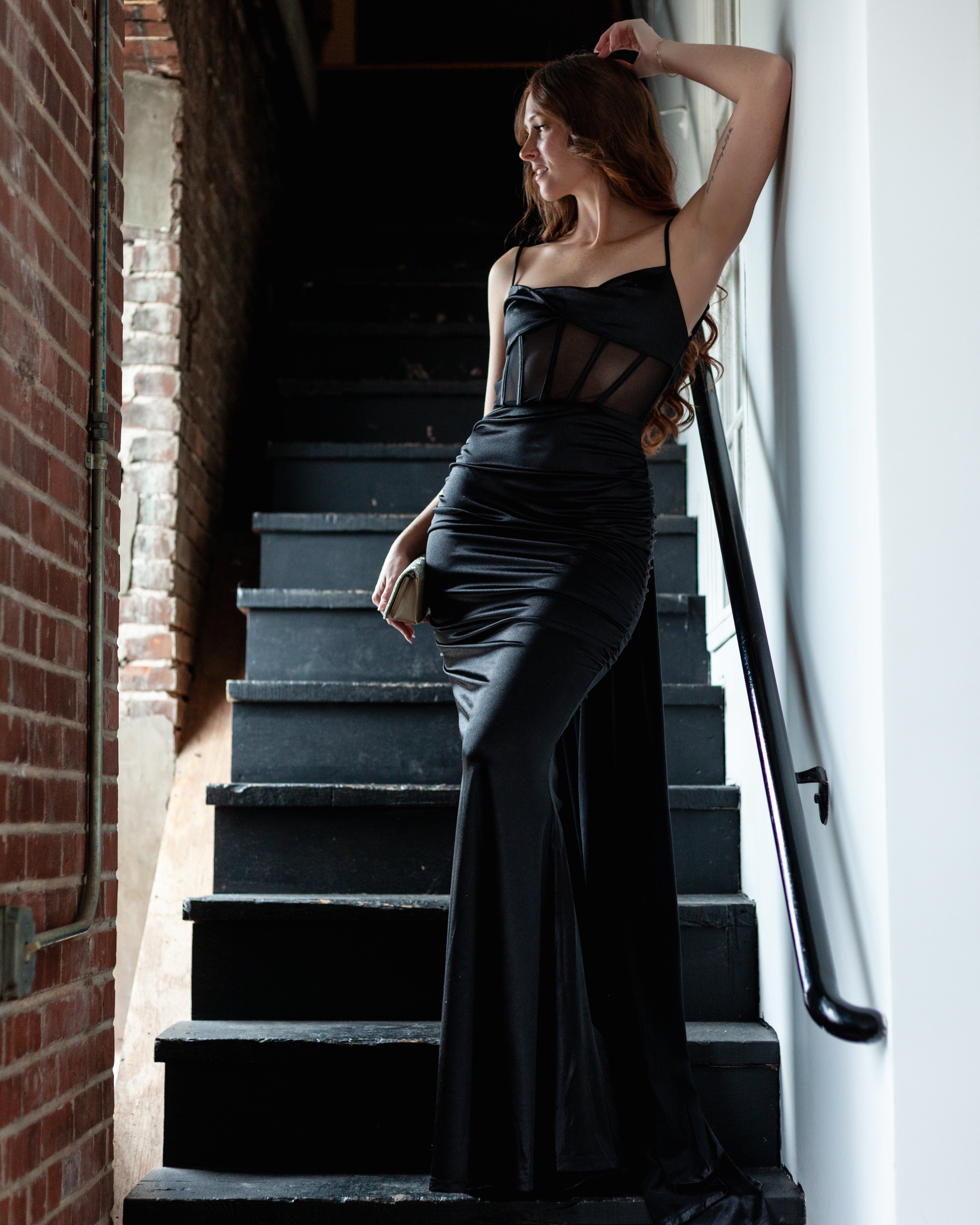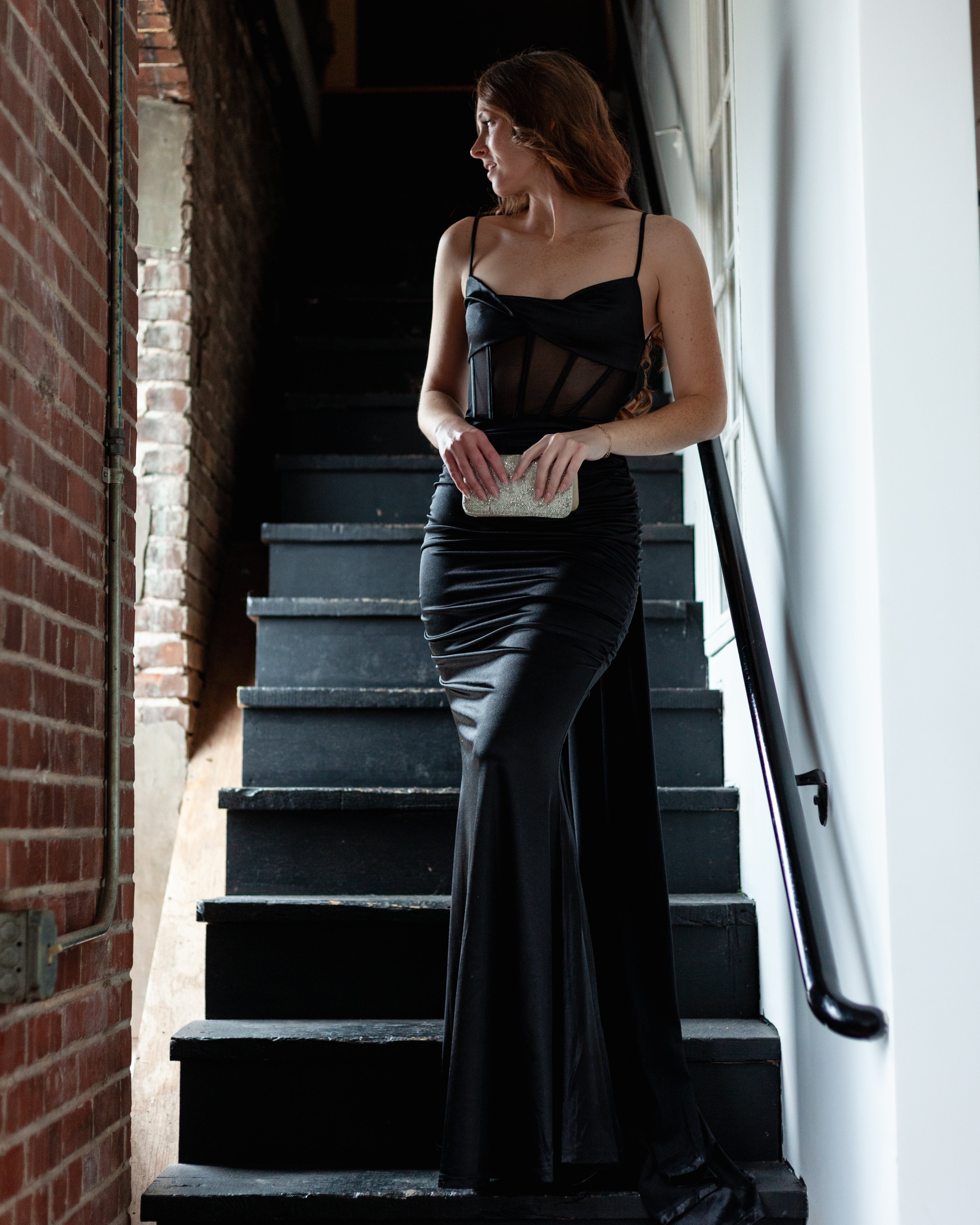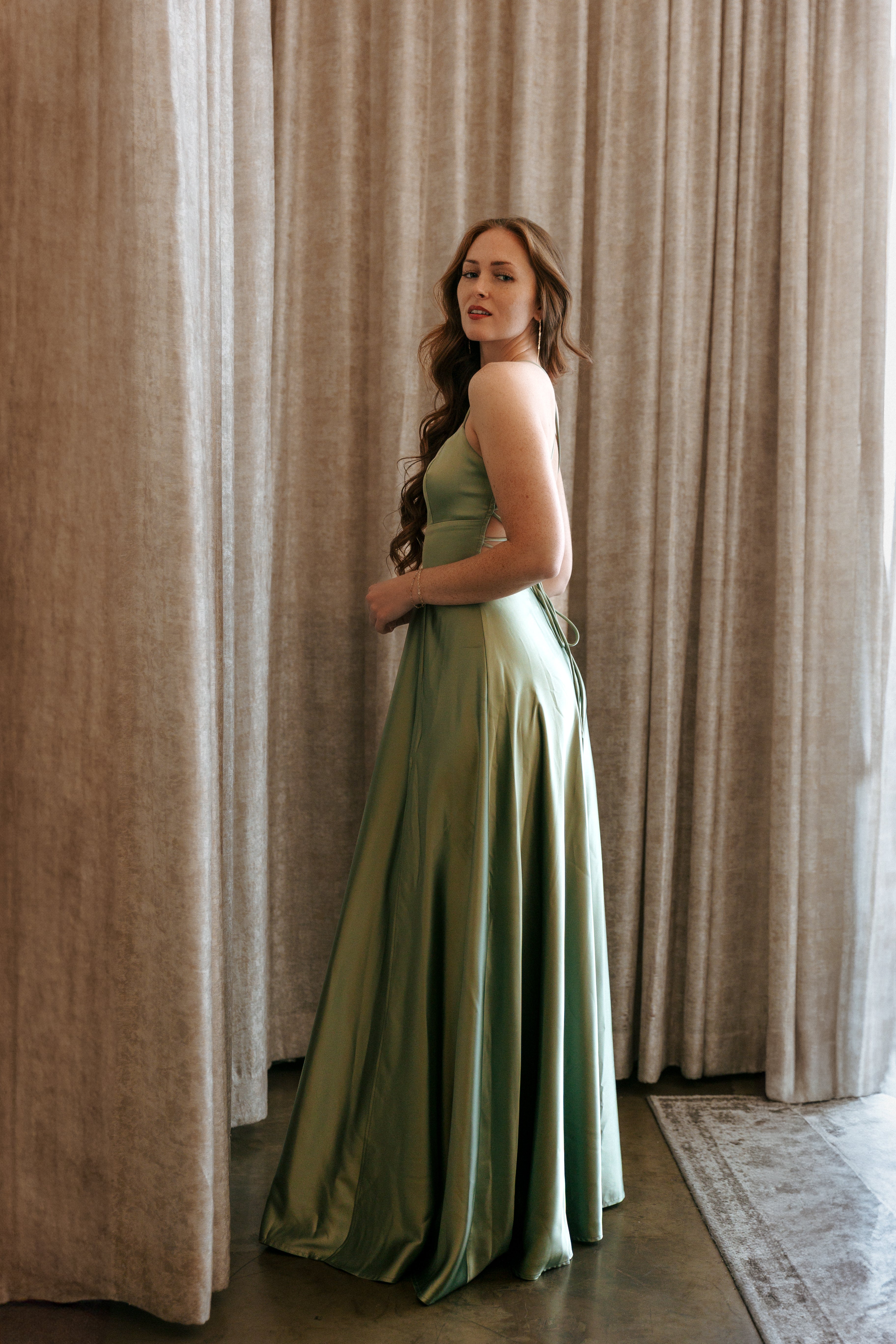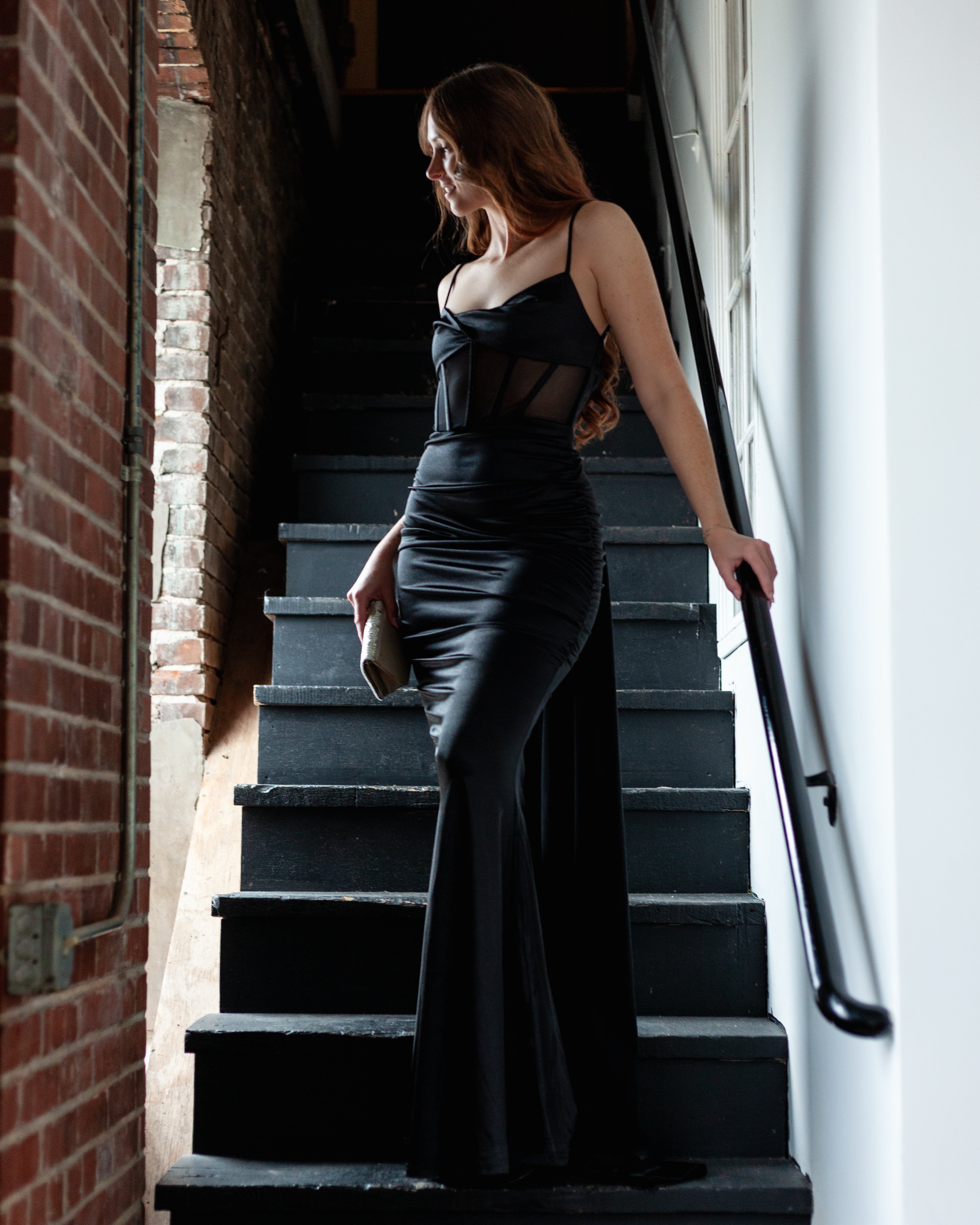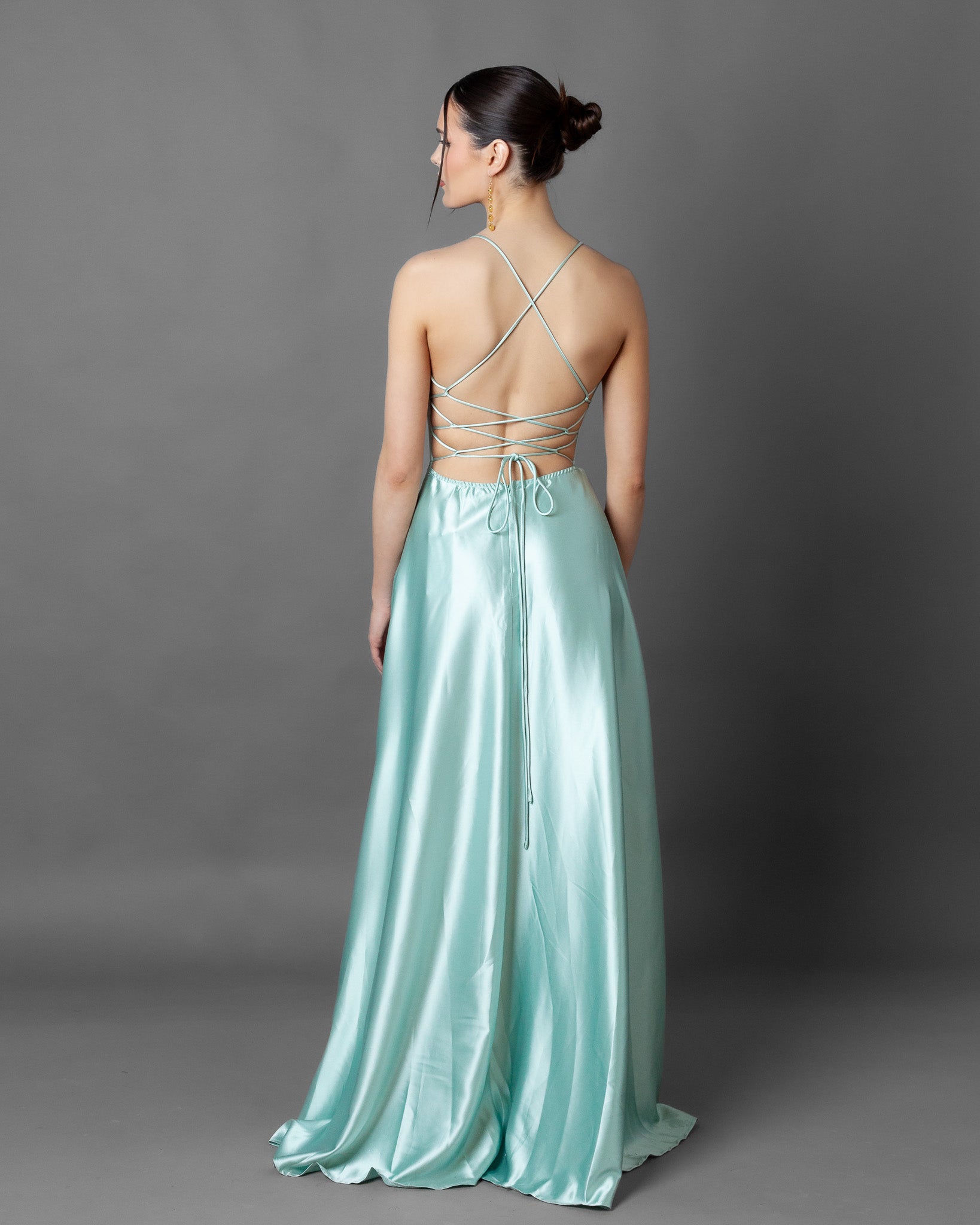 London Corset Satin Maxi Dress + Train