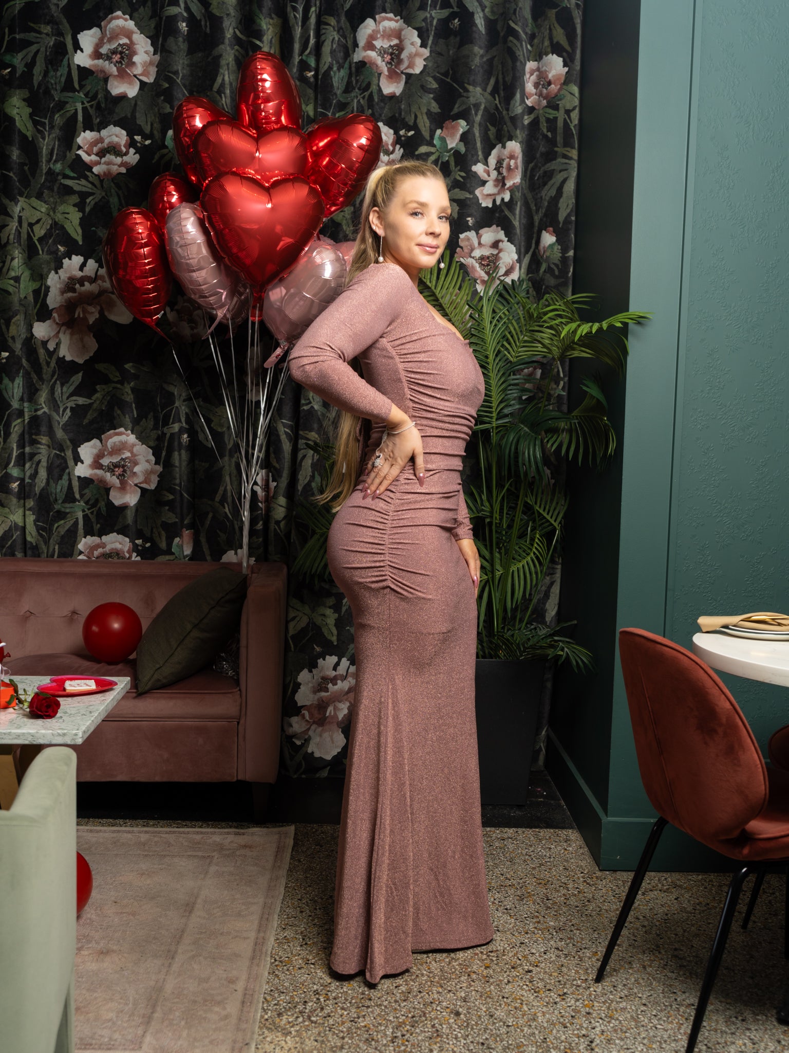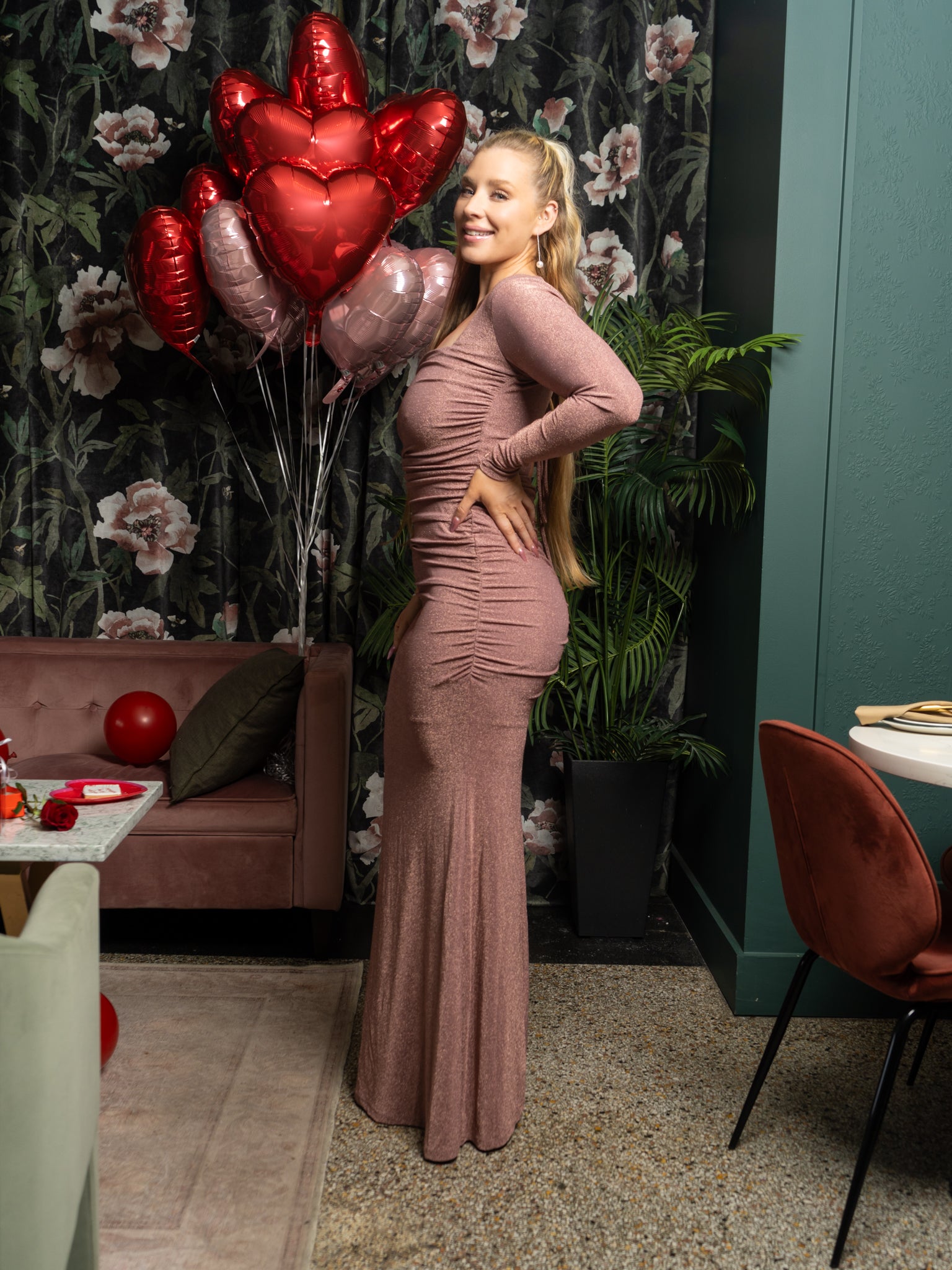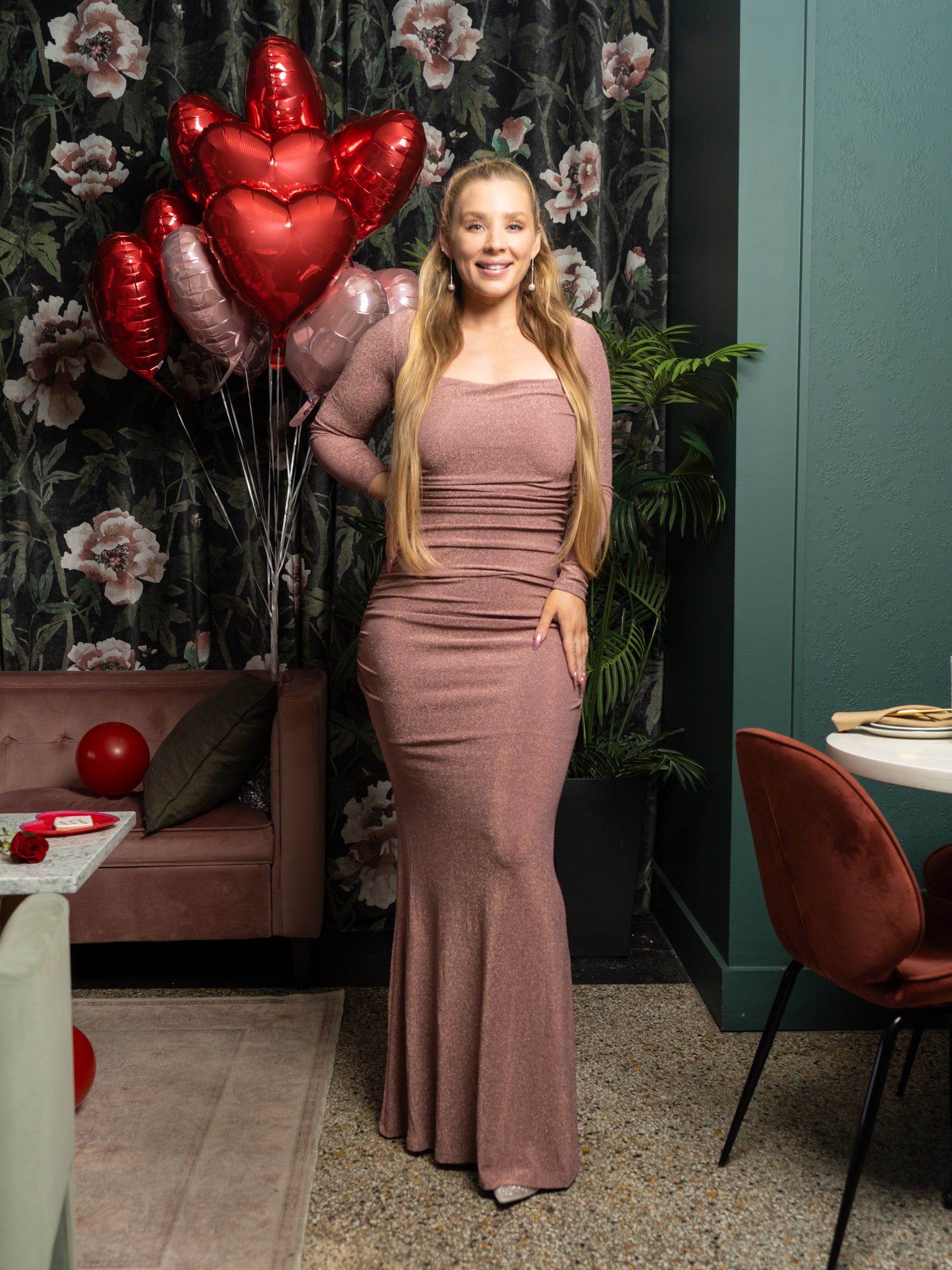 Abu Dhabi Glitter Criss-Cross Long Sleeve Maxi Dress