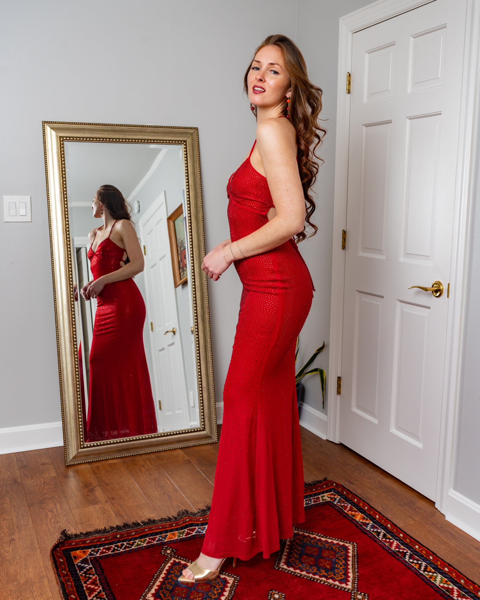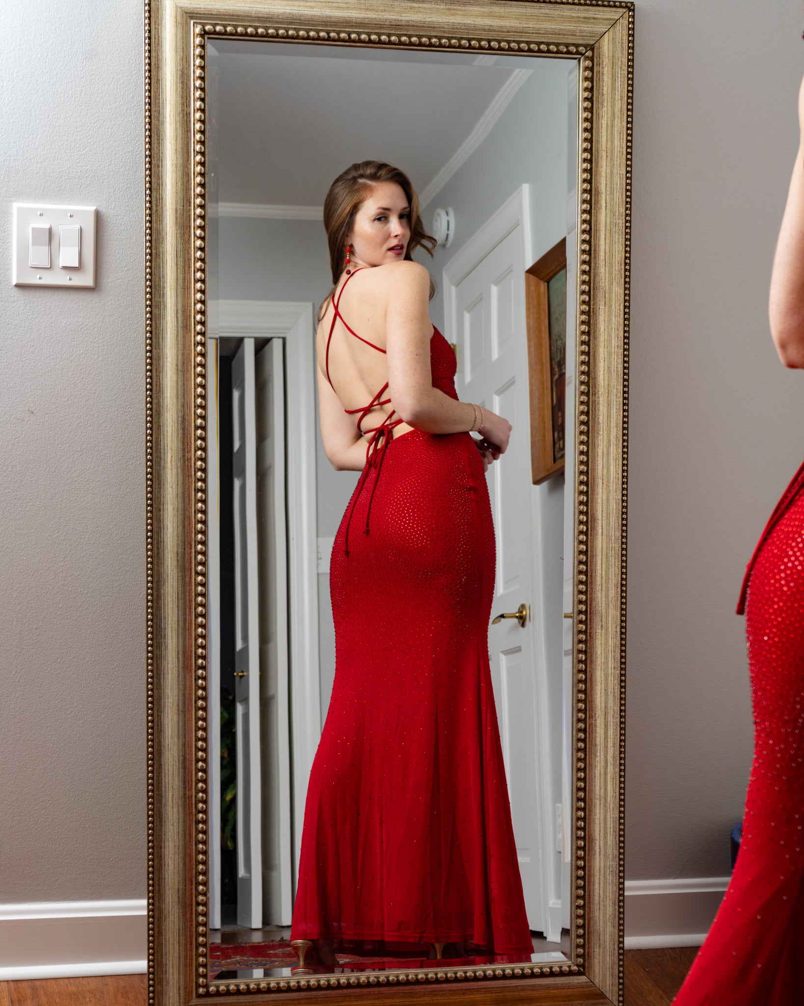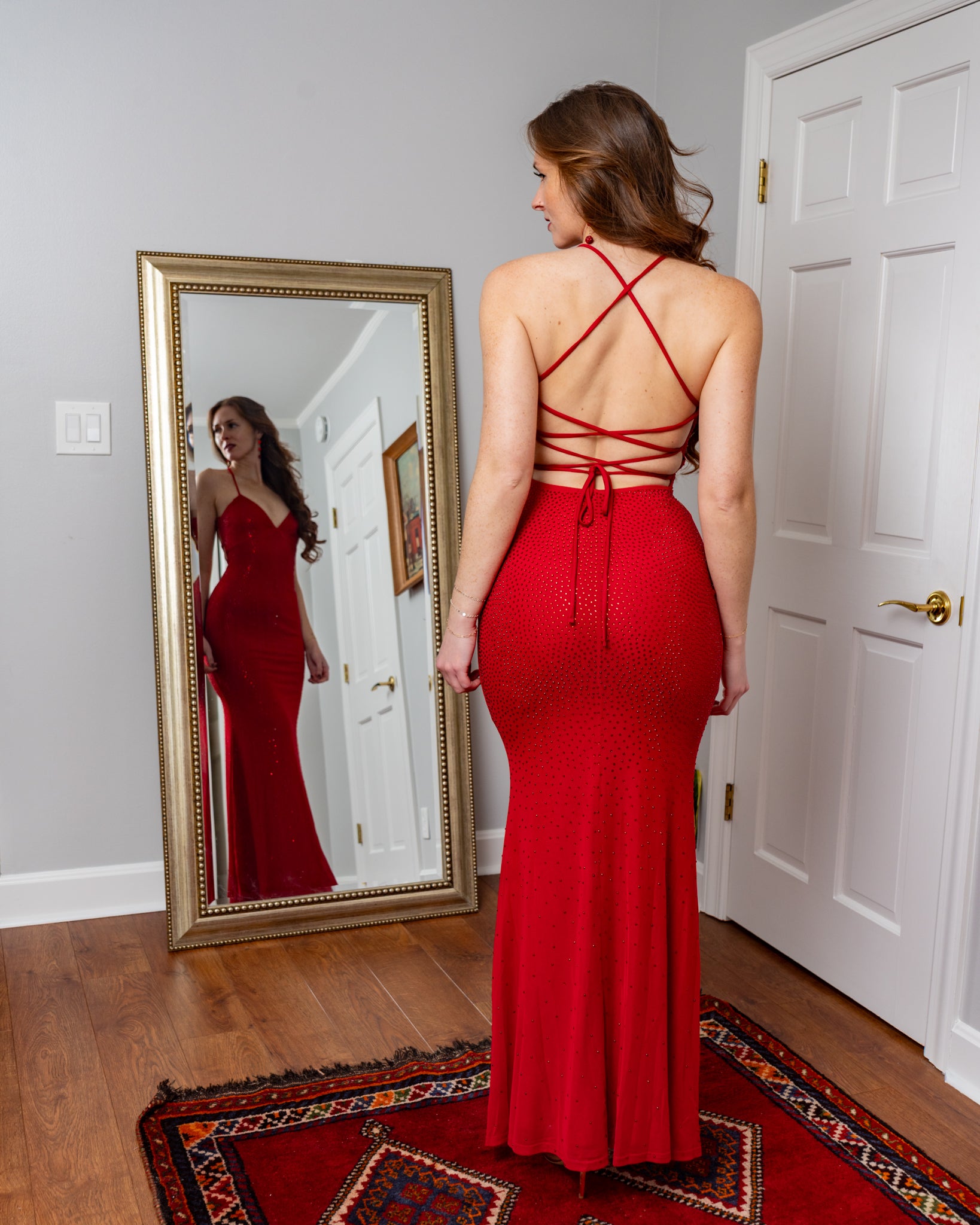 Barcelona Rhinestone Mesh Corset Back Maxi Mermaid Dress