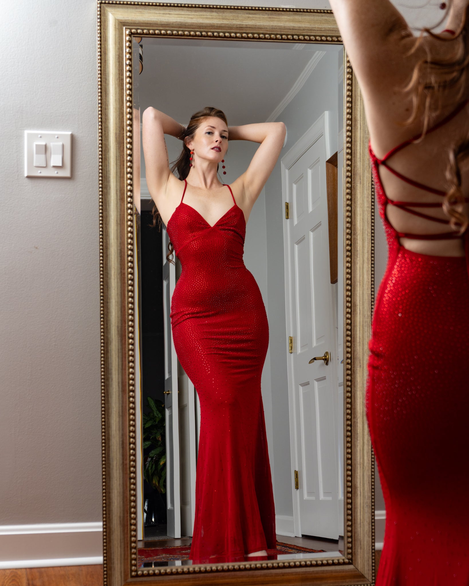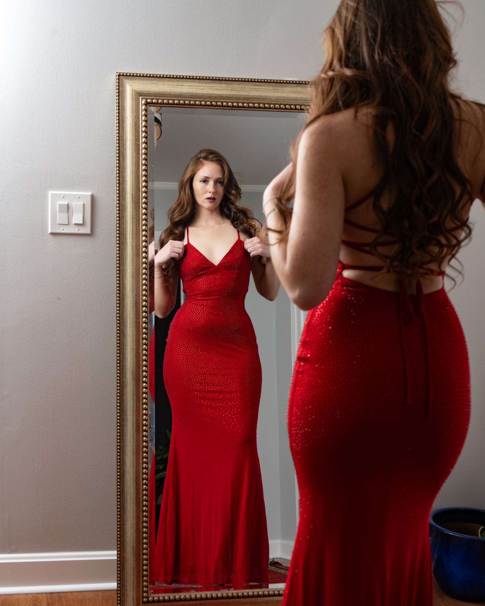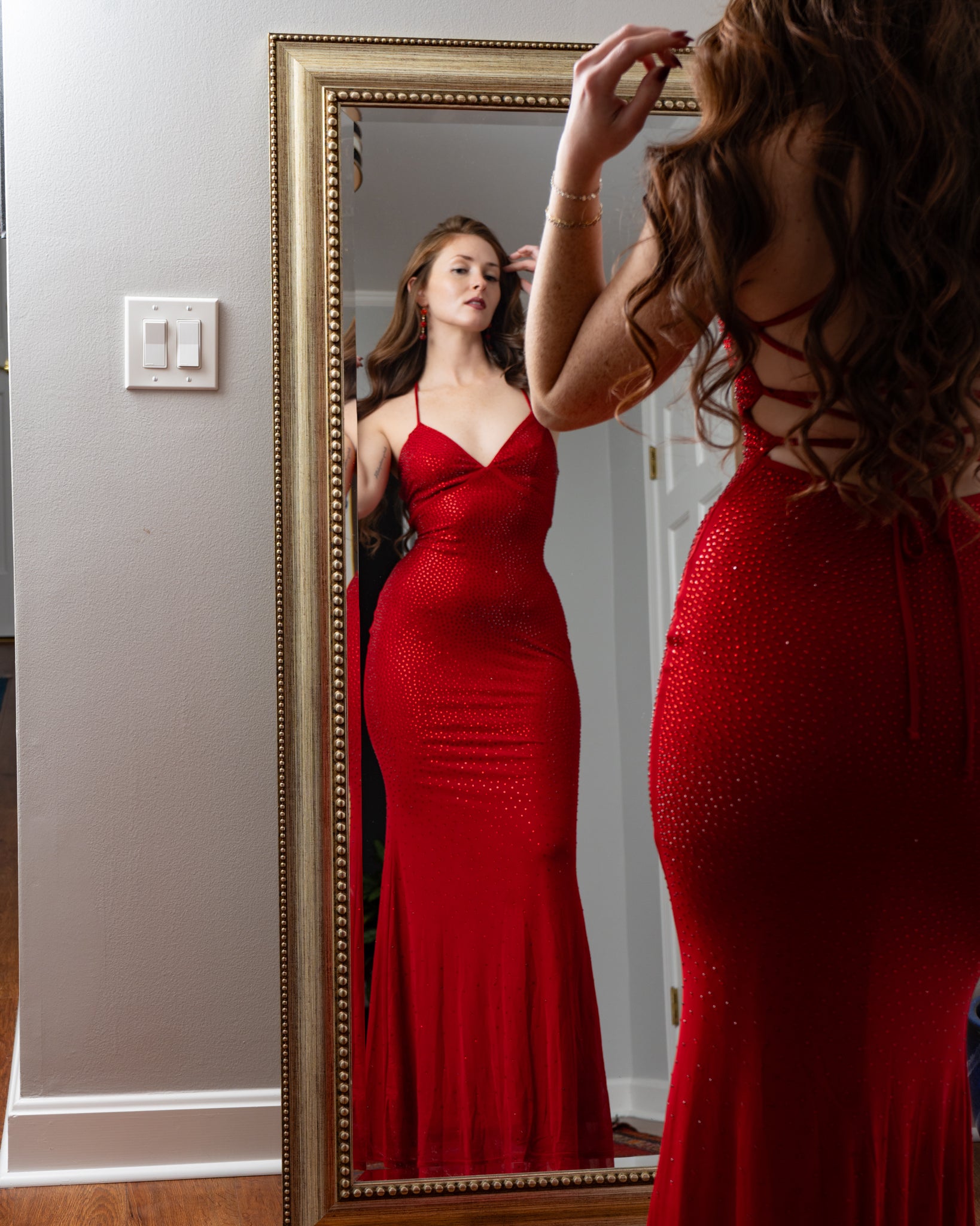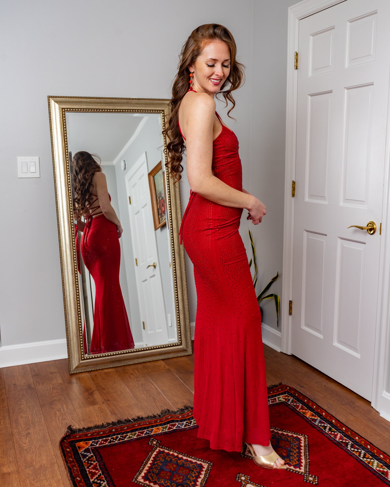Barcelona Rhinestone Mesh Corset Back Maxi Mermaid Dress
