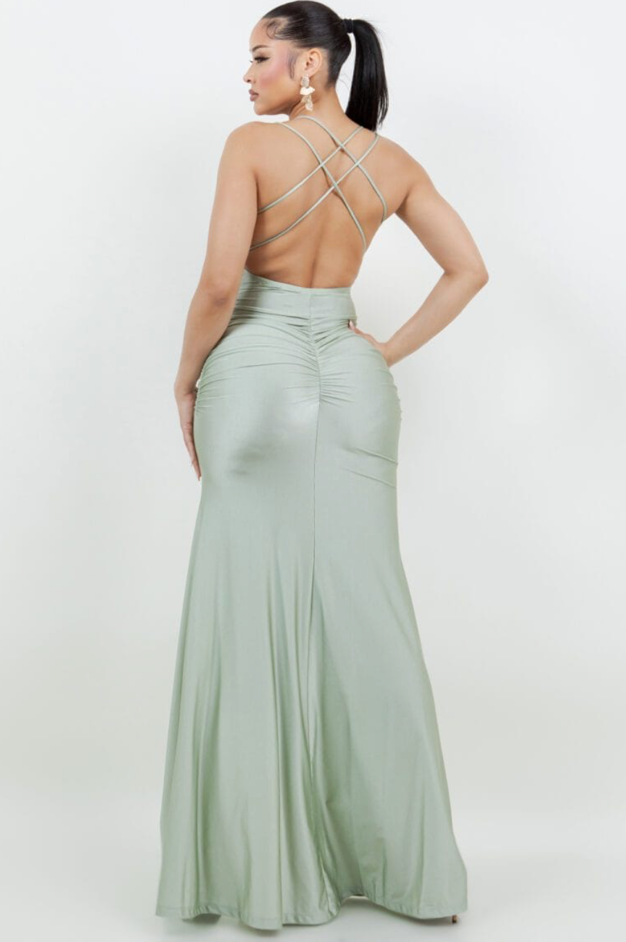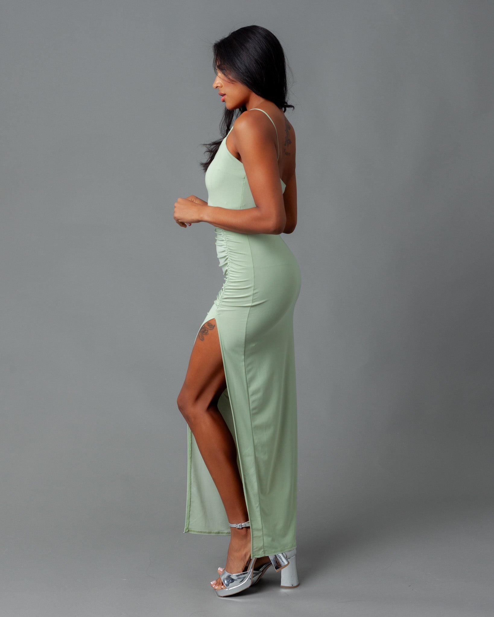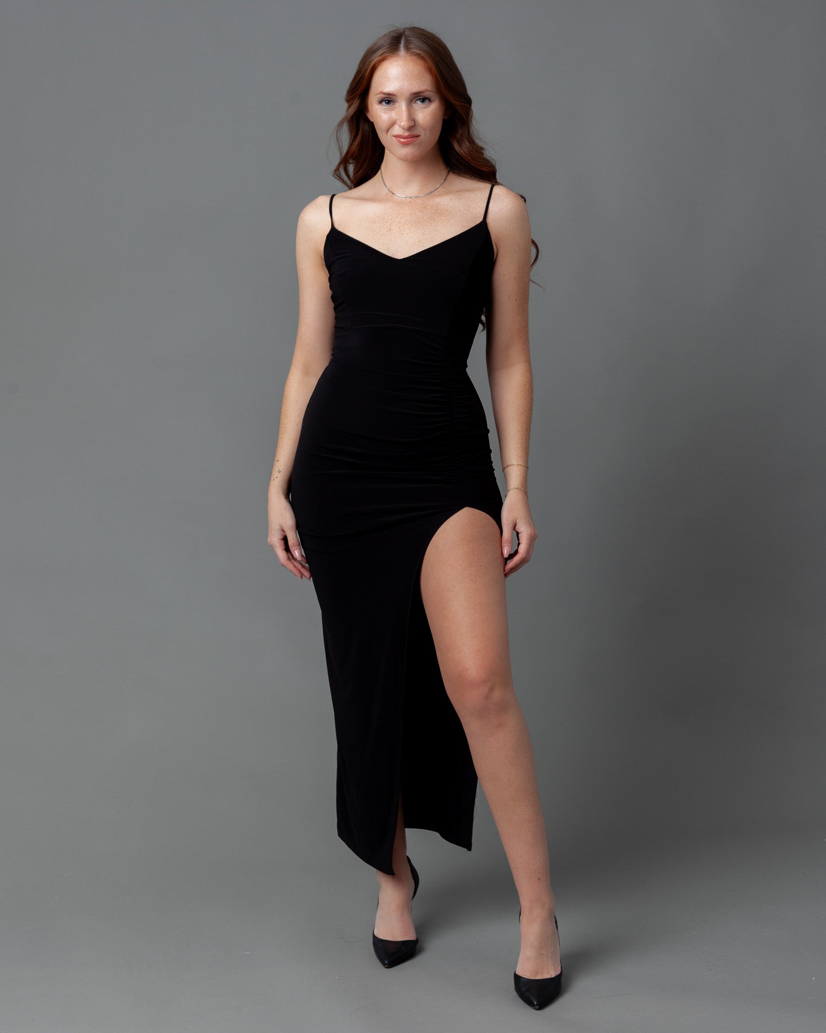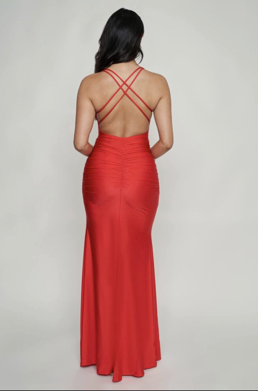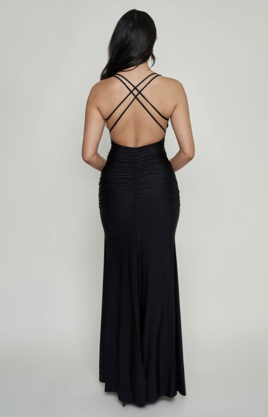 Lisbon Ruched Maxi Dress + Thigh Slit