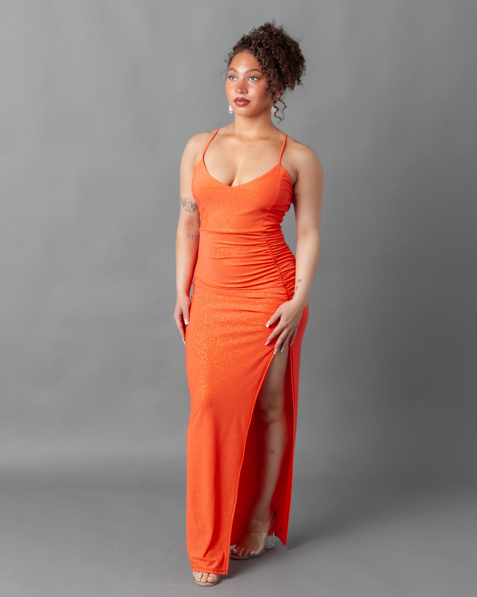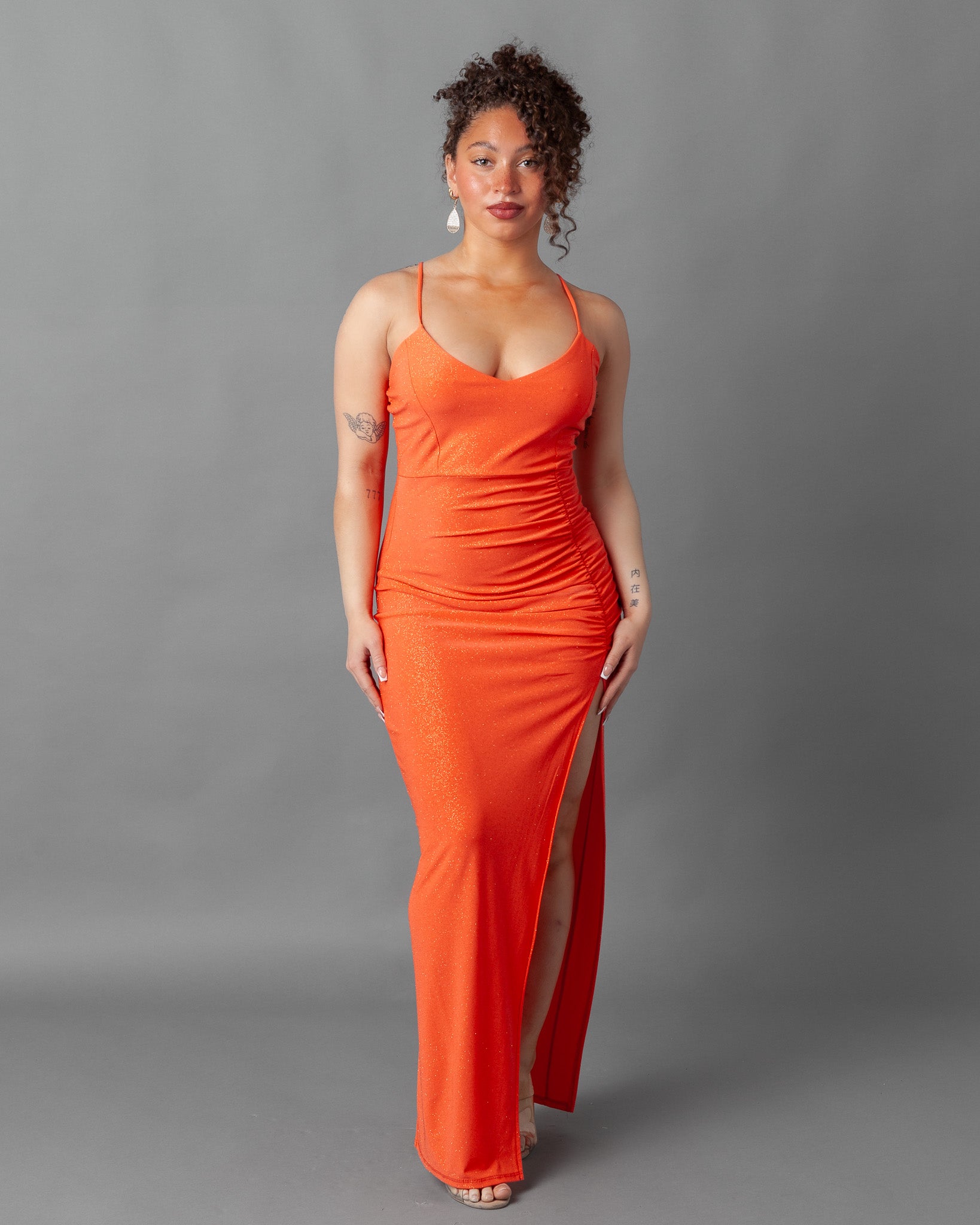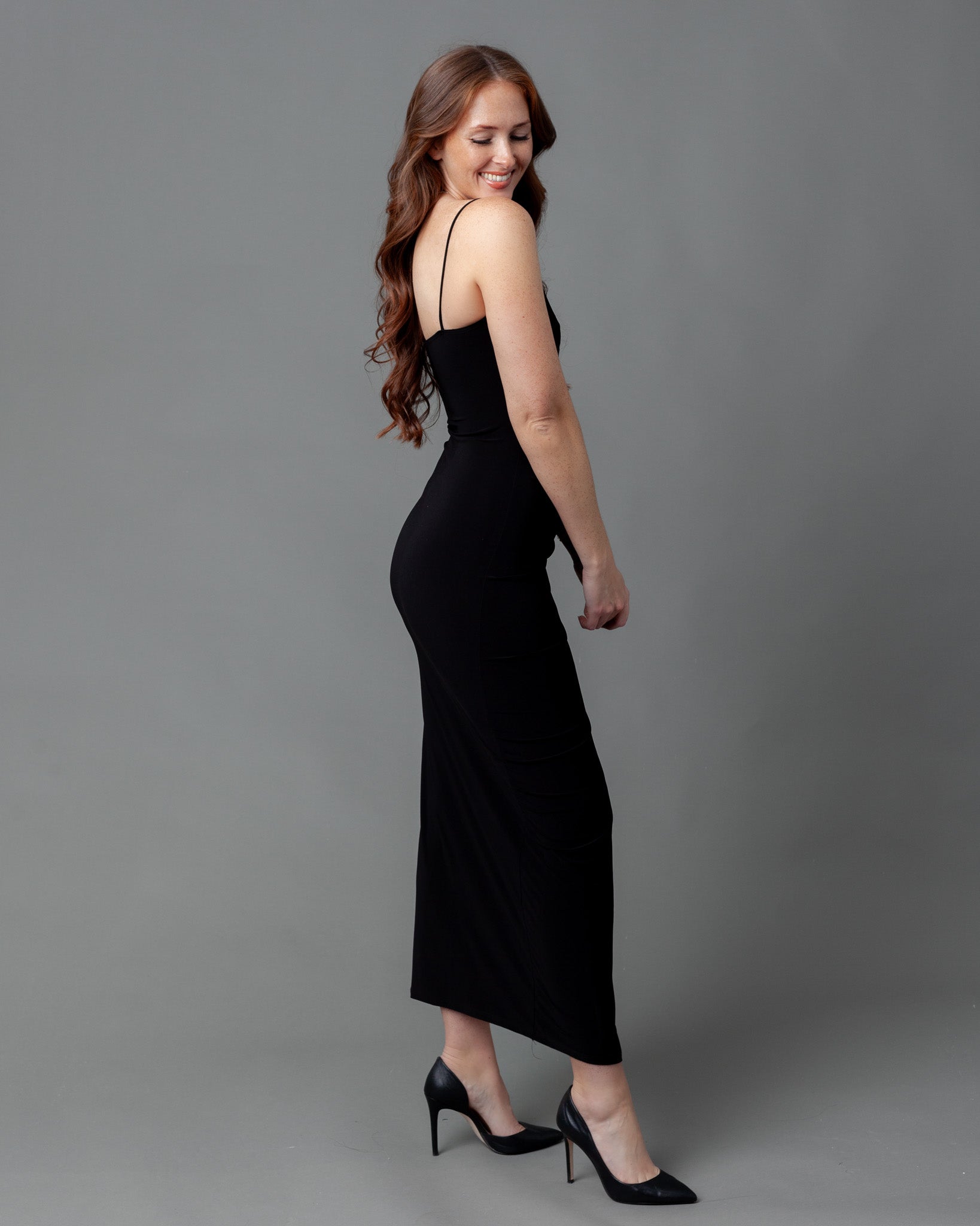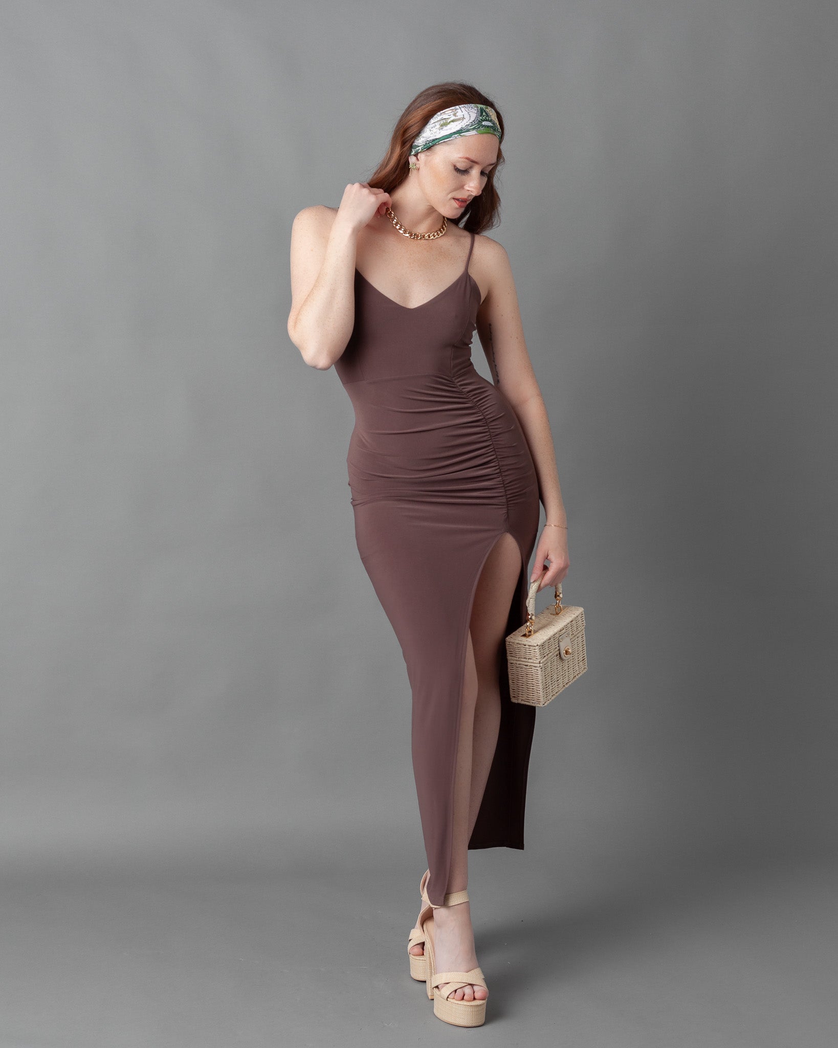 Lisbon Ruched Maxi Dress + Thigh Slit