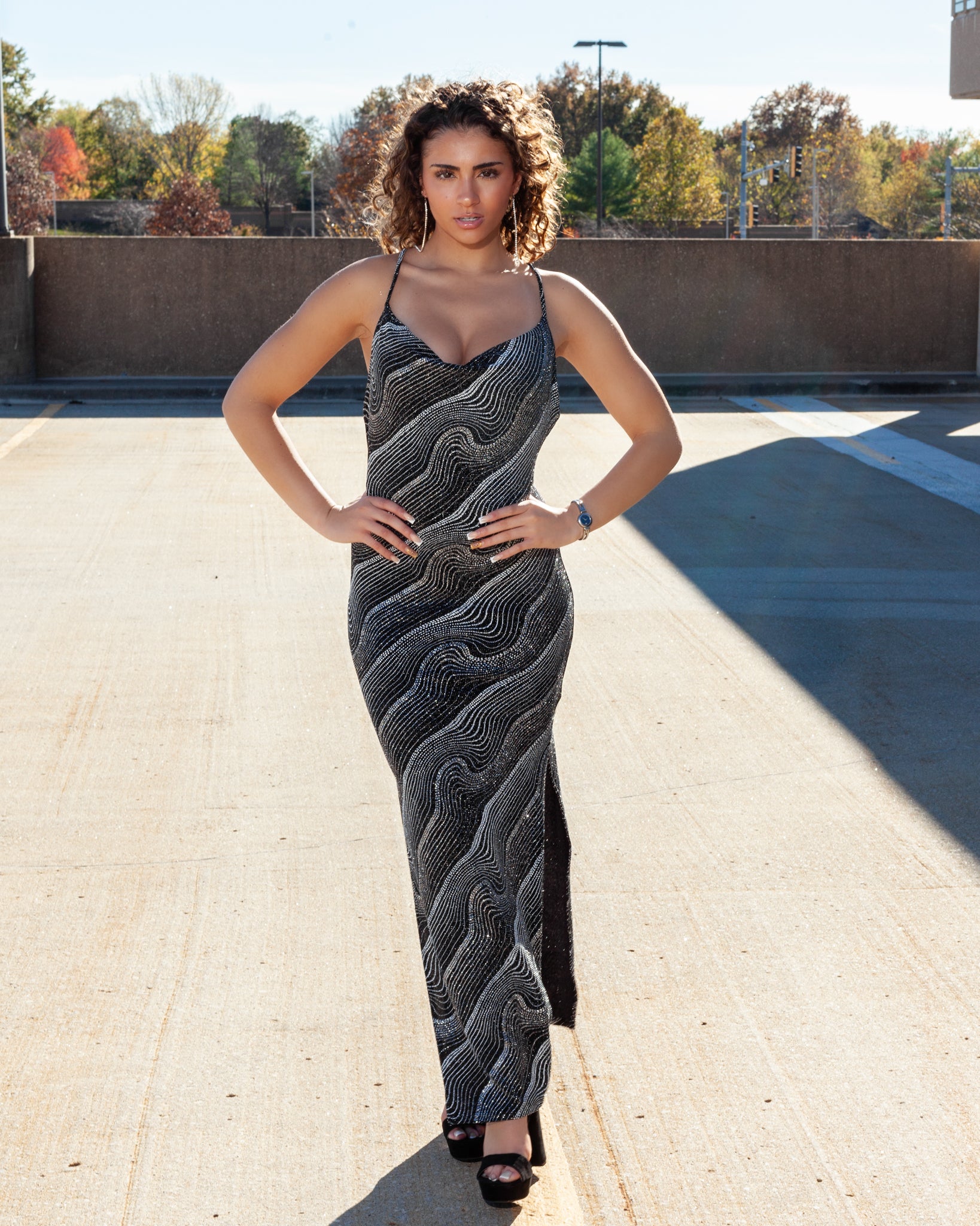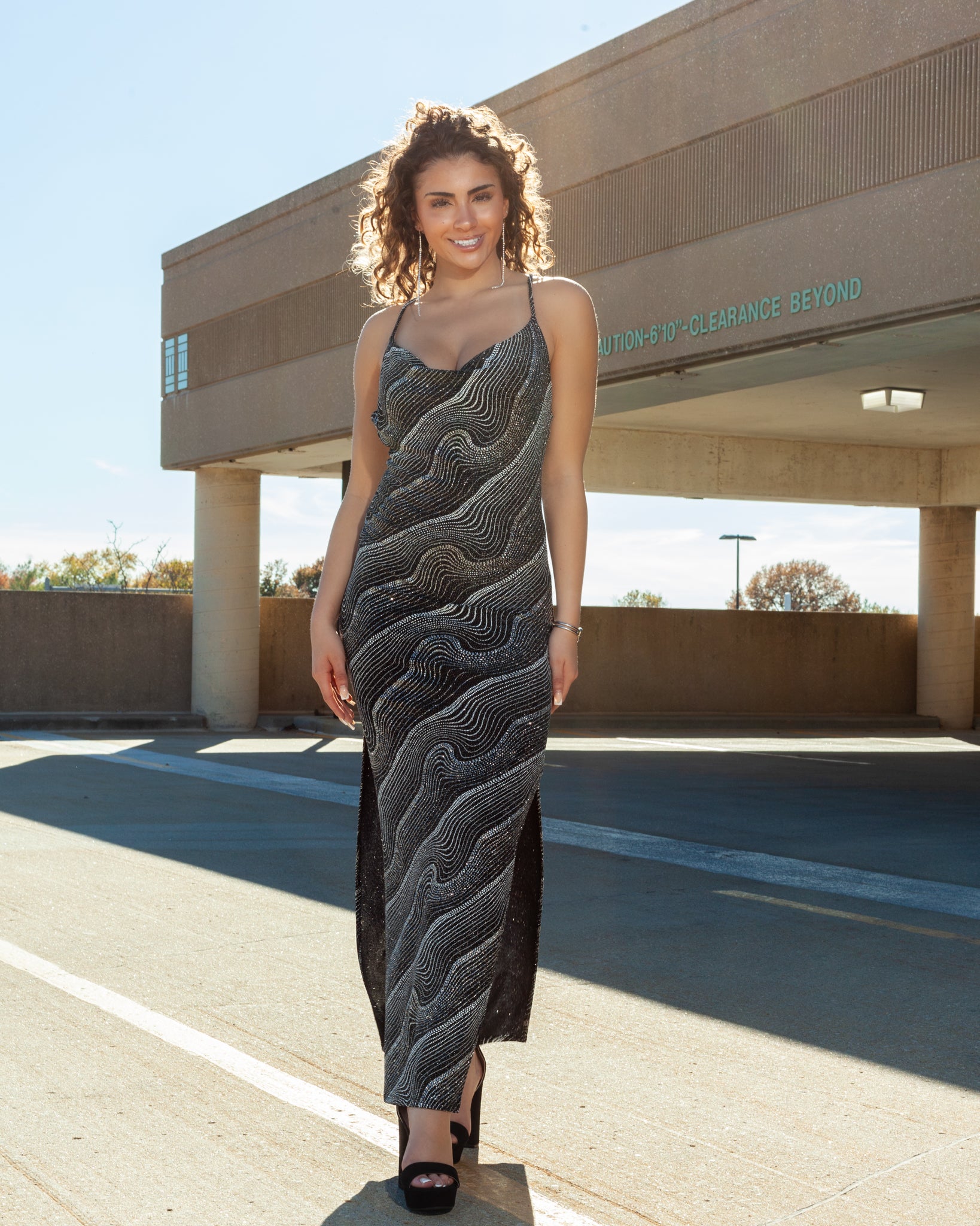 Kabul Glitter Thigh Slit Maxi Dress