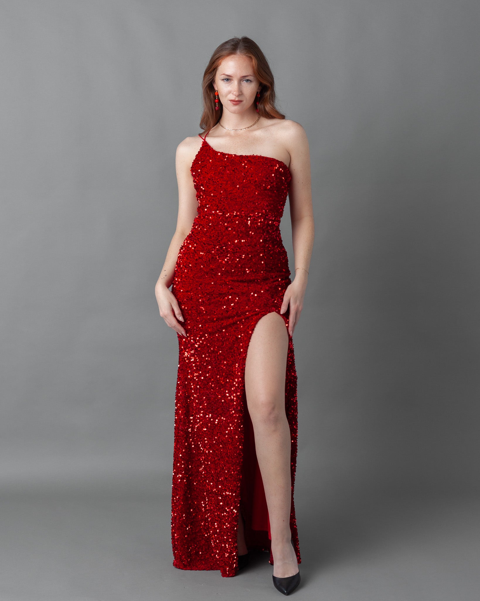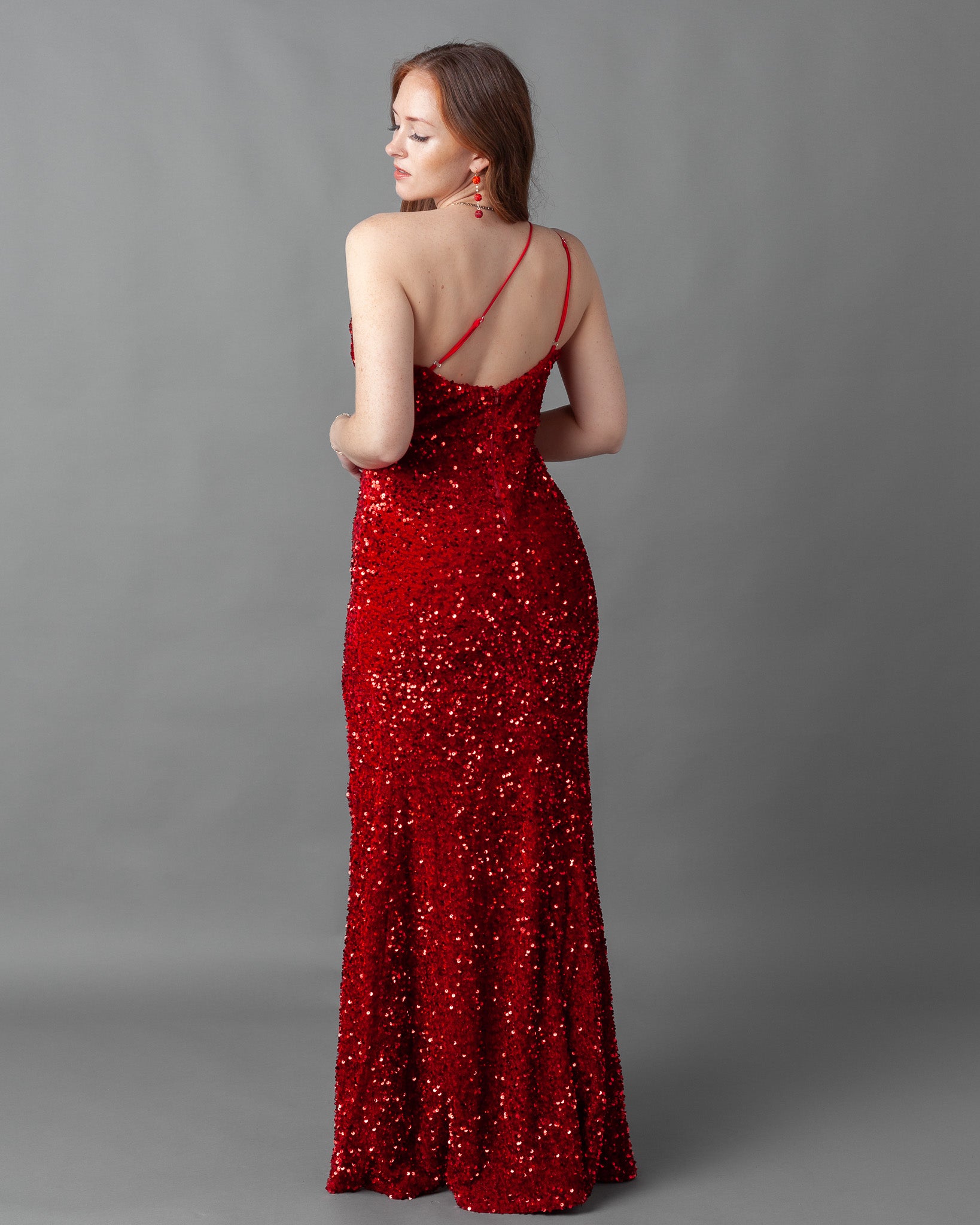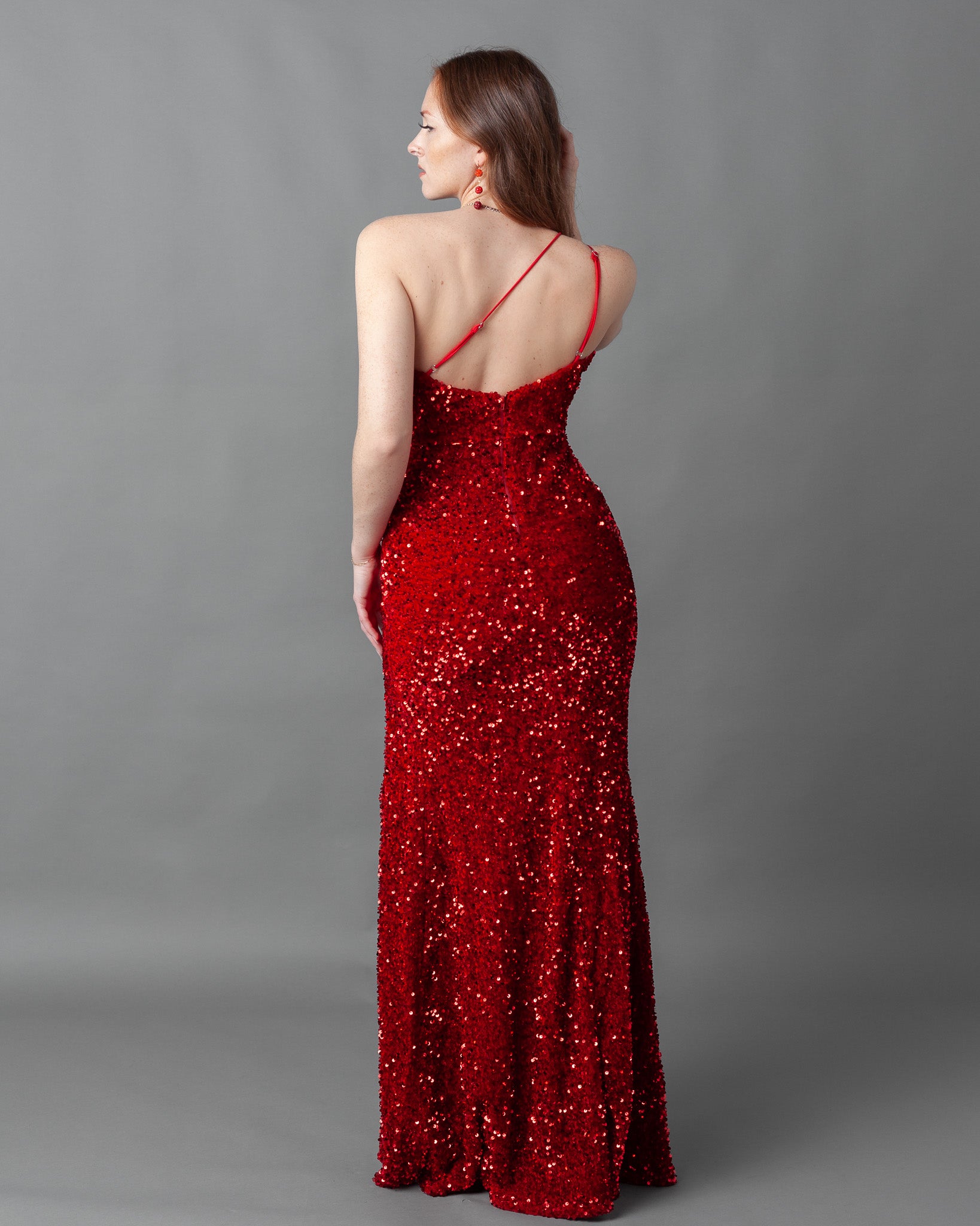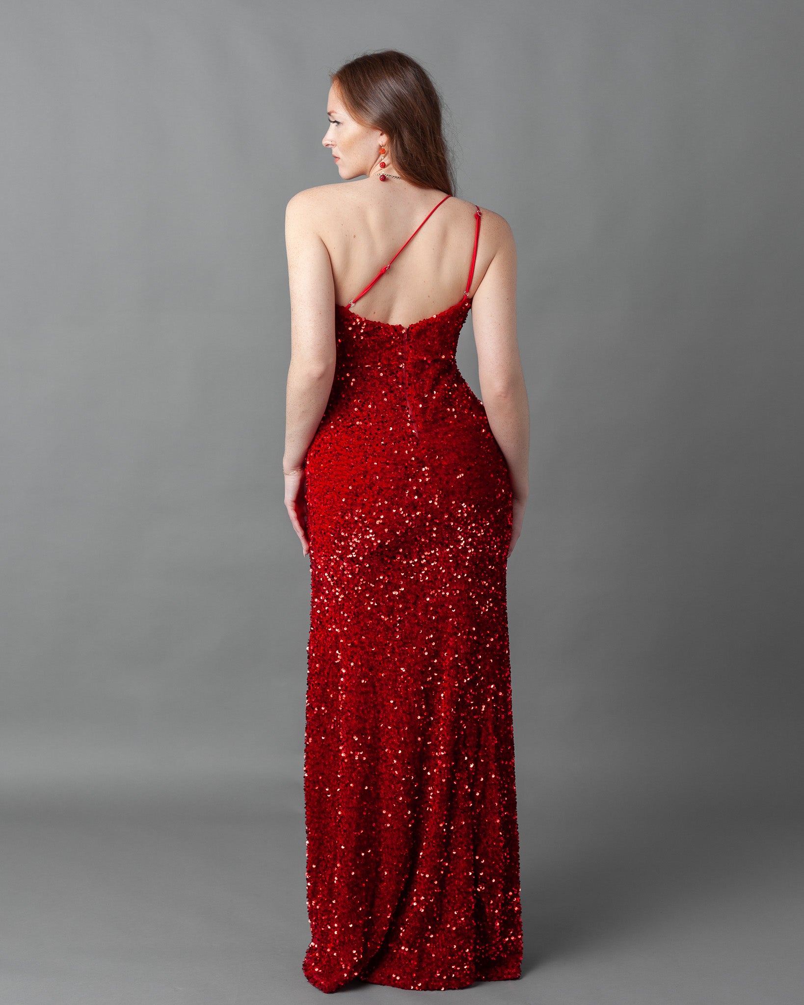 Florence Velvet Sequin One Shoulder Asymmetric Maxi Dress