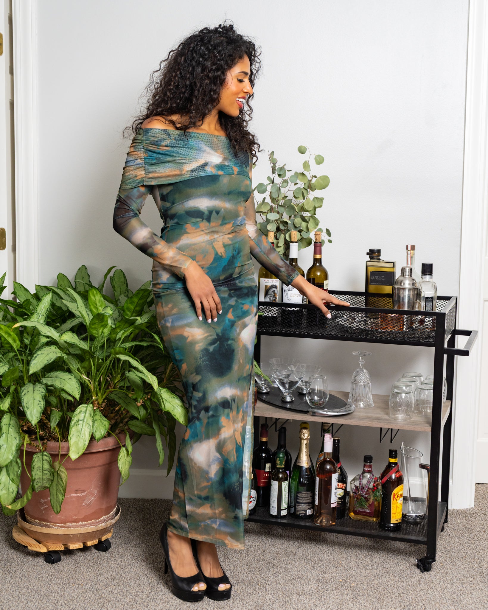 Chicago Ombre Mesh Long Sleeve Maxi Dress + Side Slit