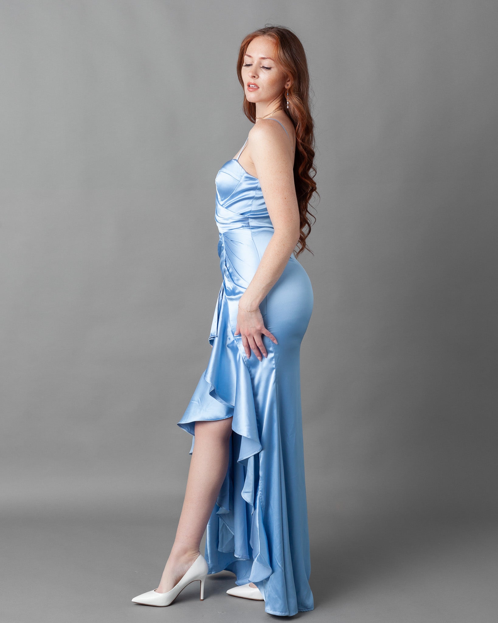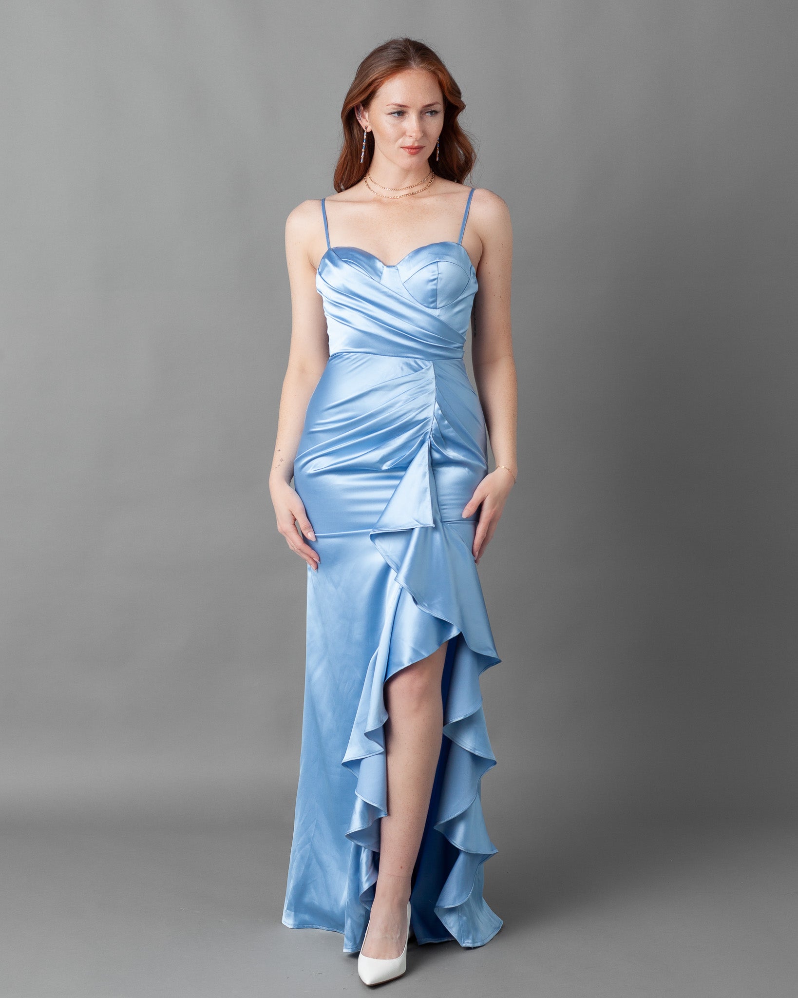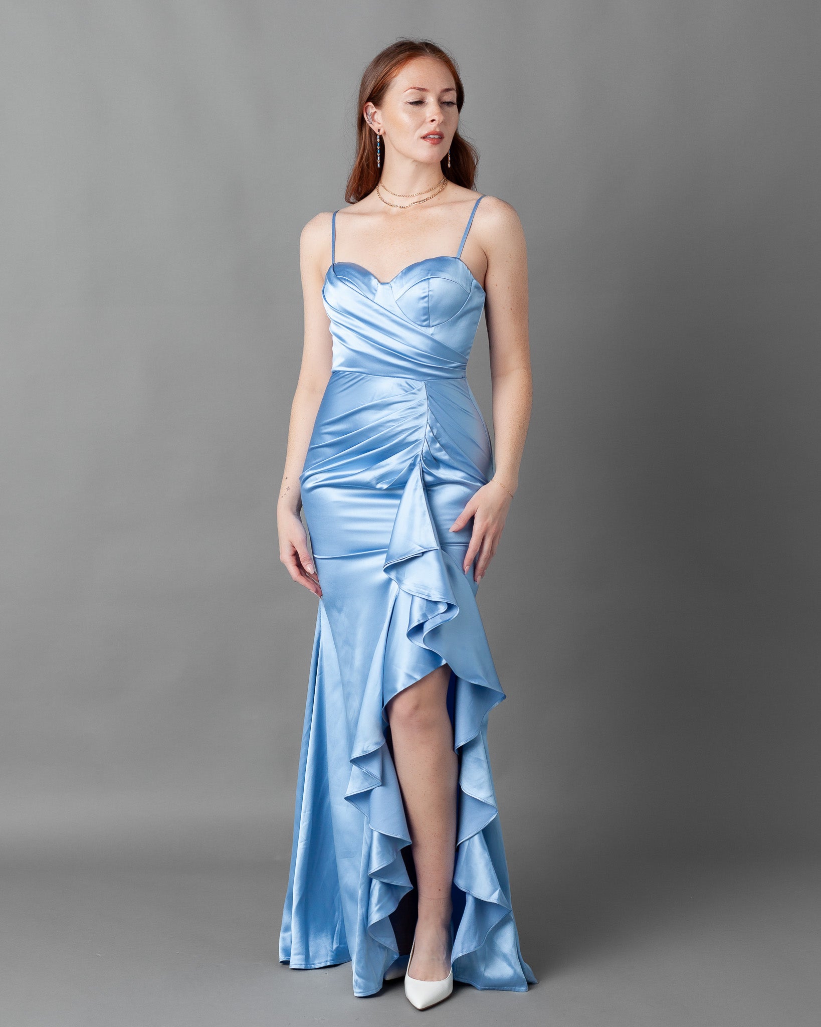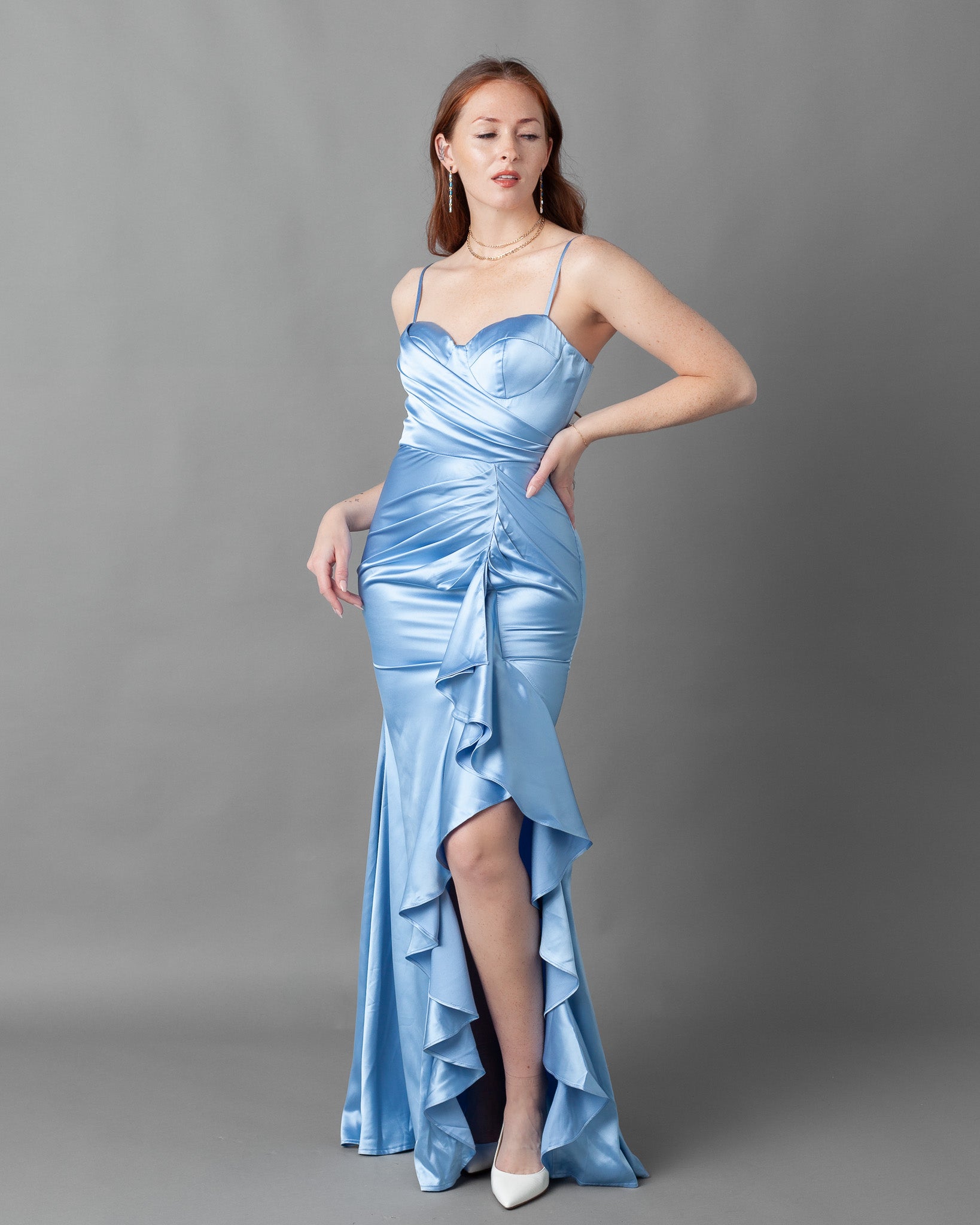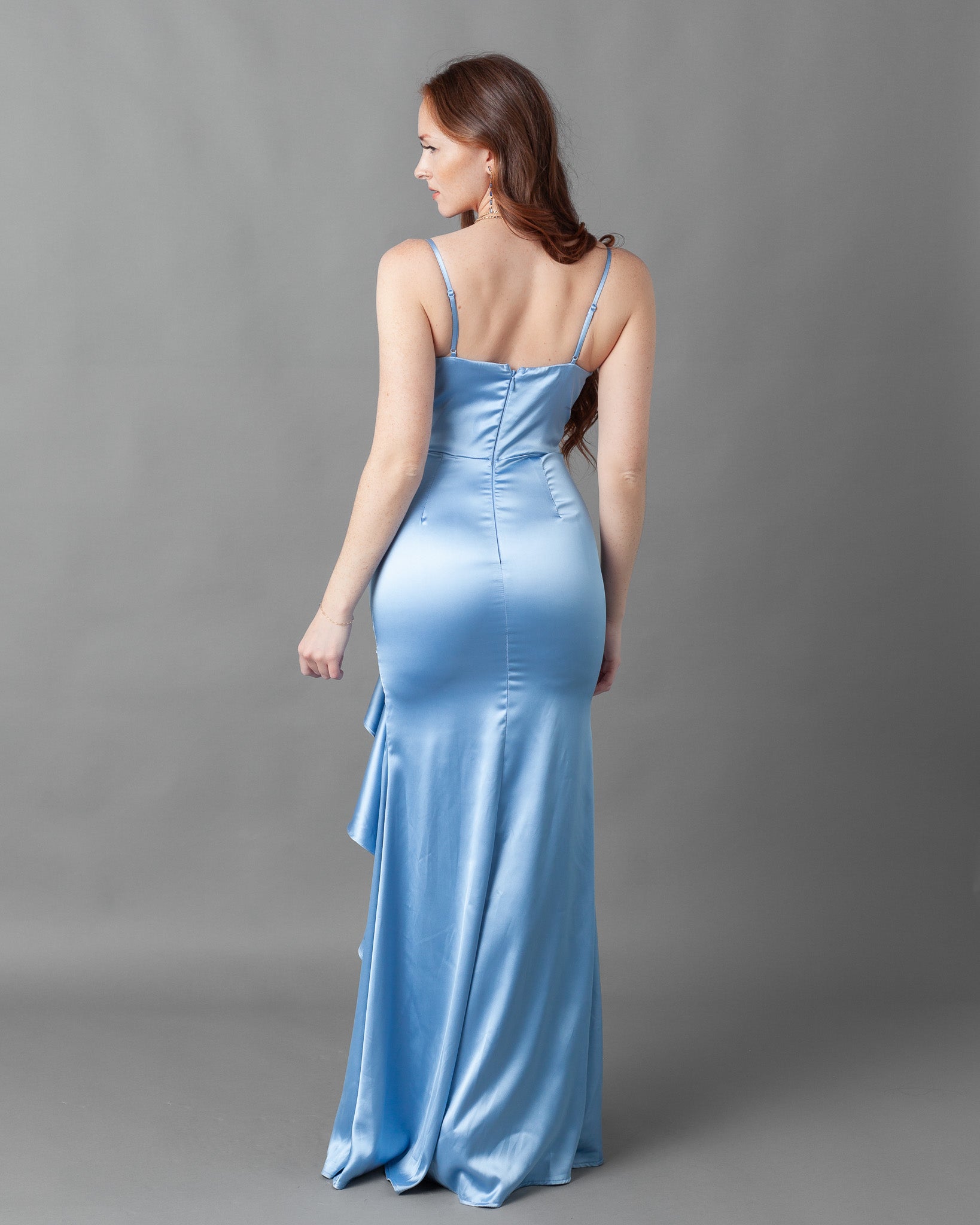 Moscow Silky Maxi Dress + Ruffle Thigh slit