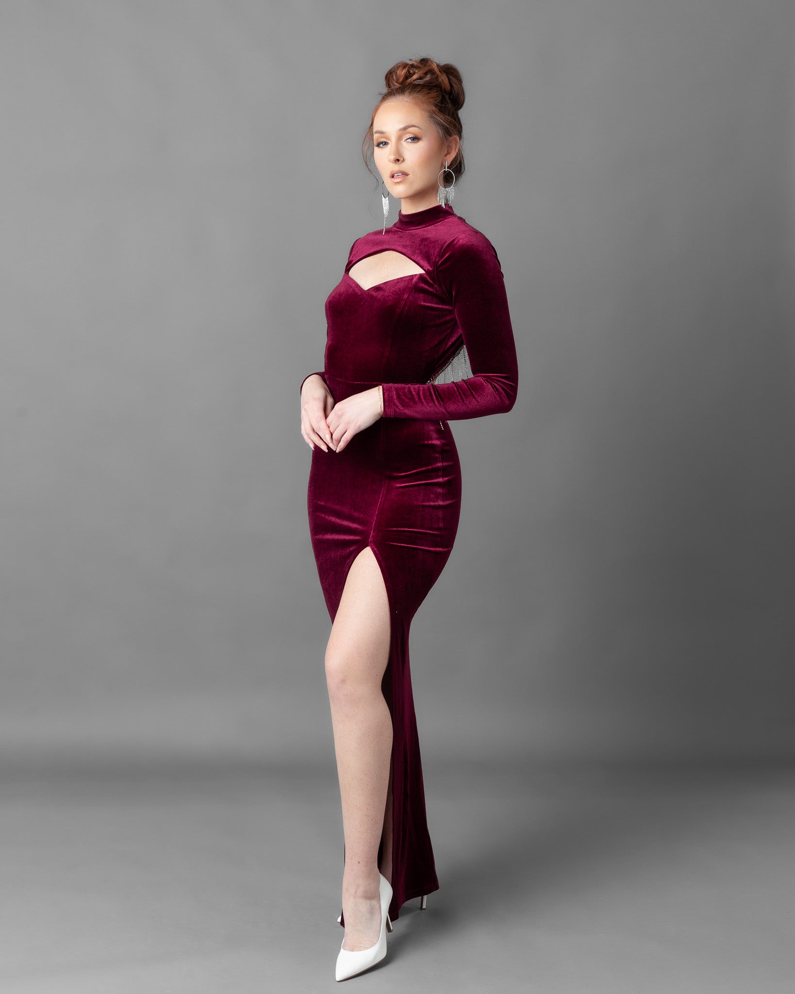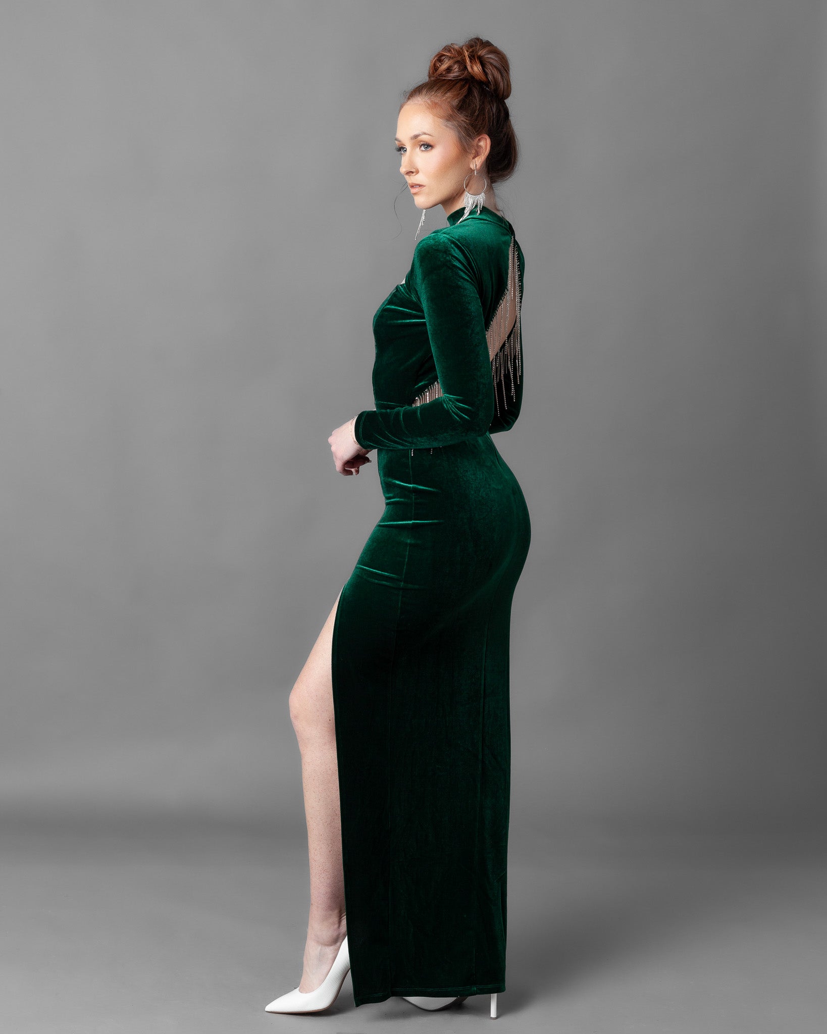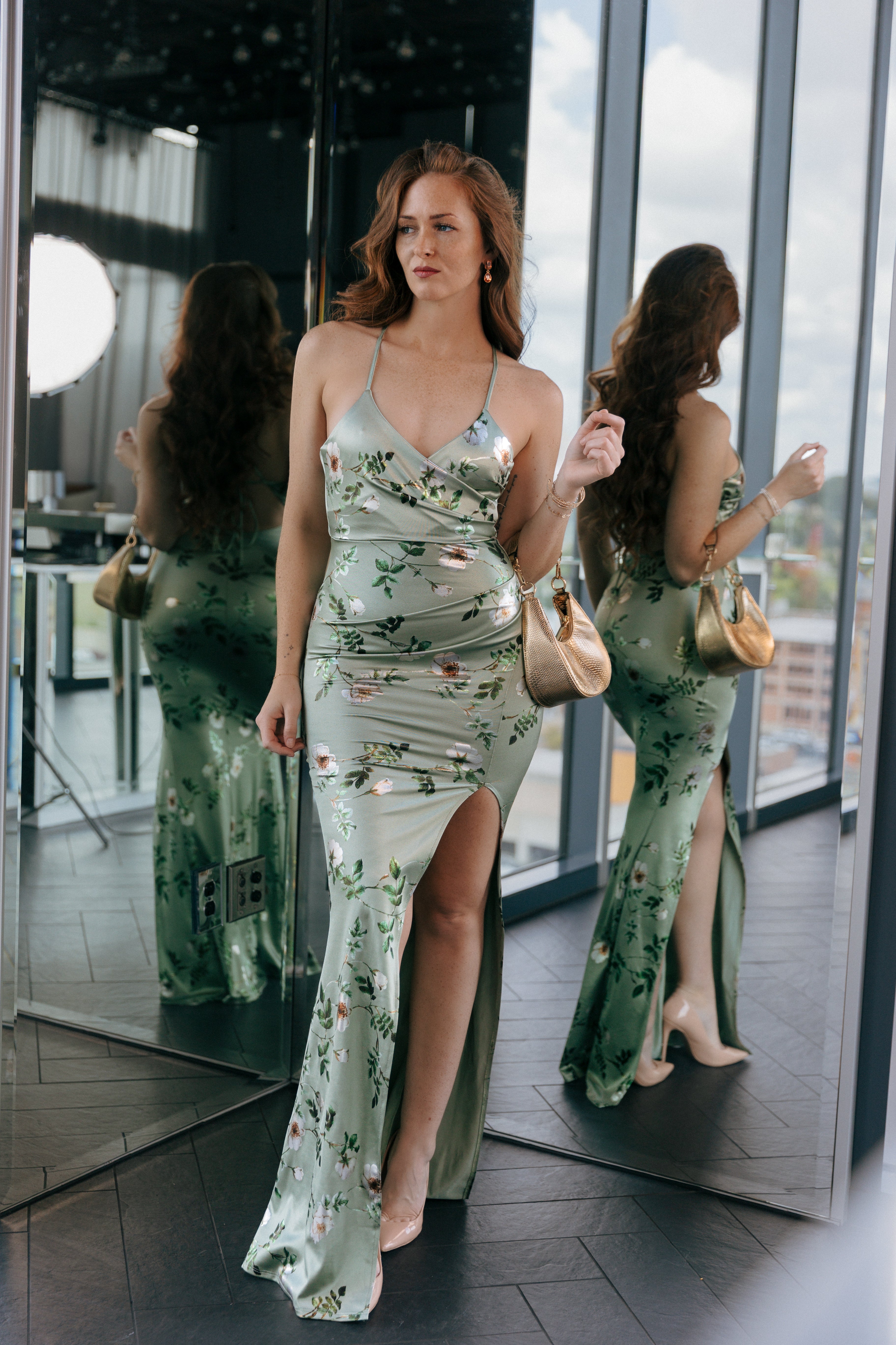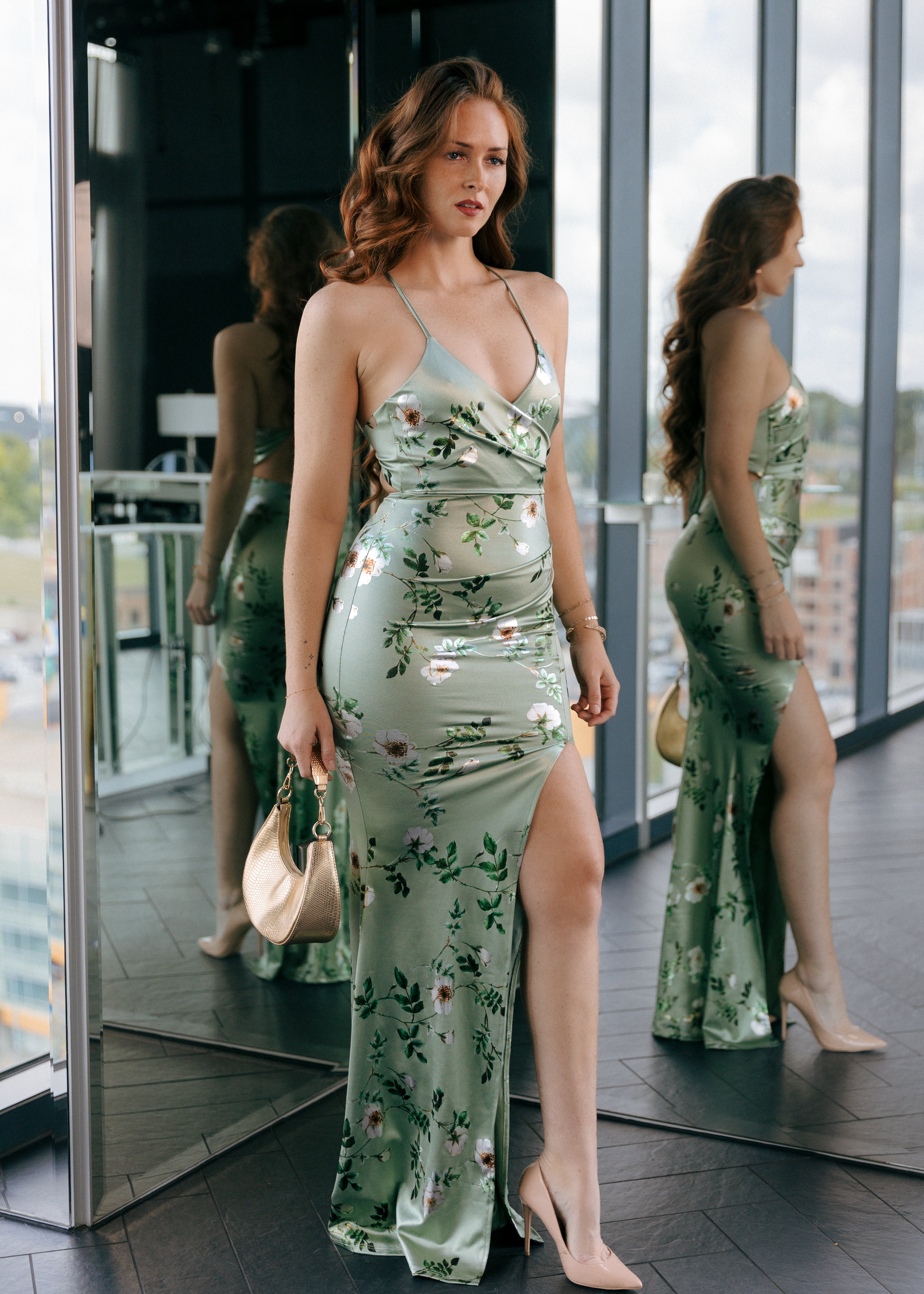 Moscow Silky Maxi Dress + Ruffle Thigh slit
