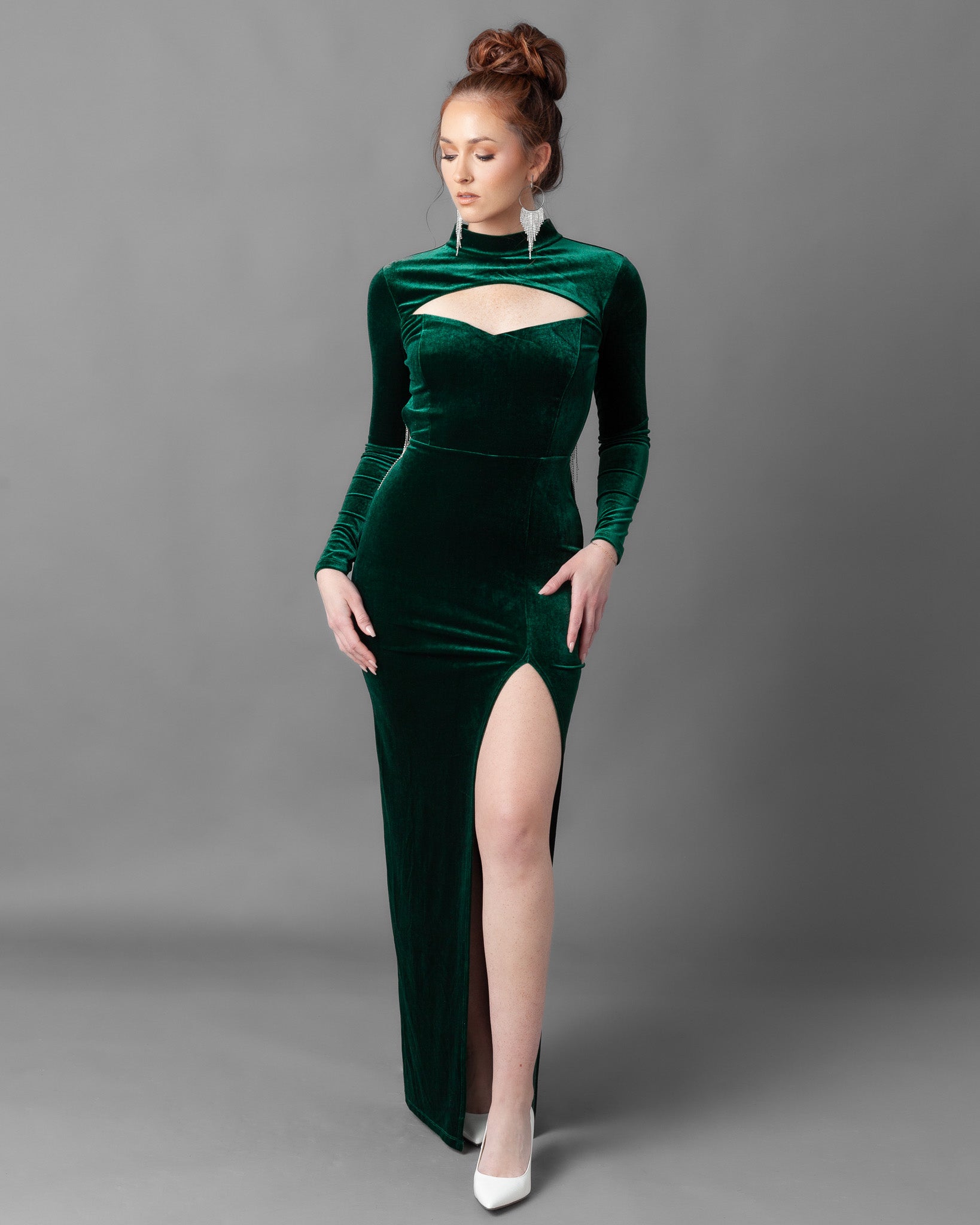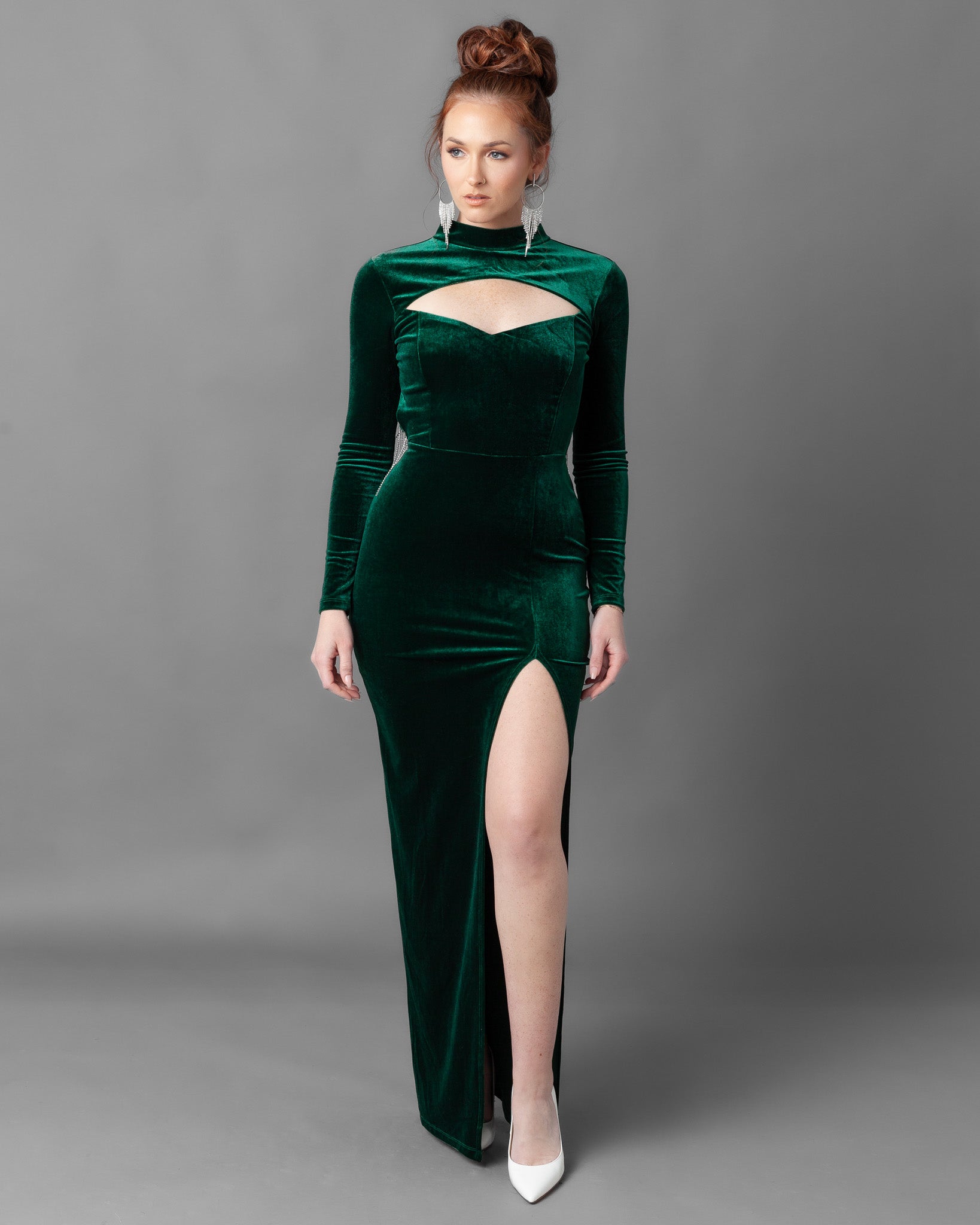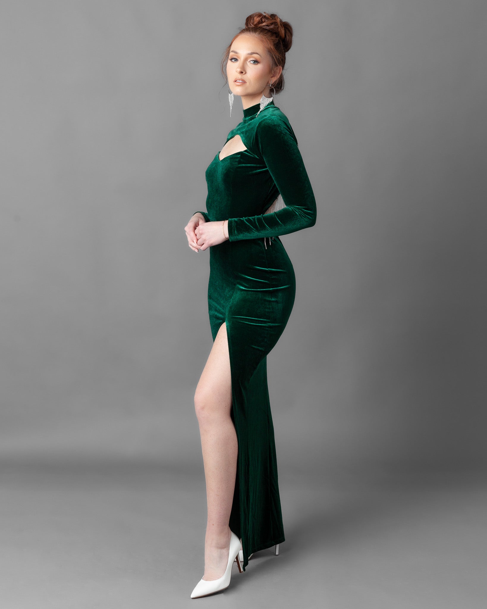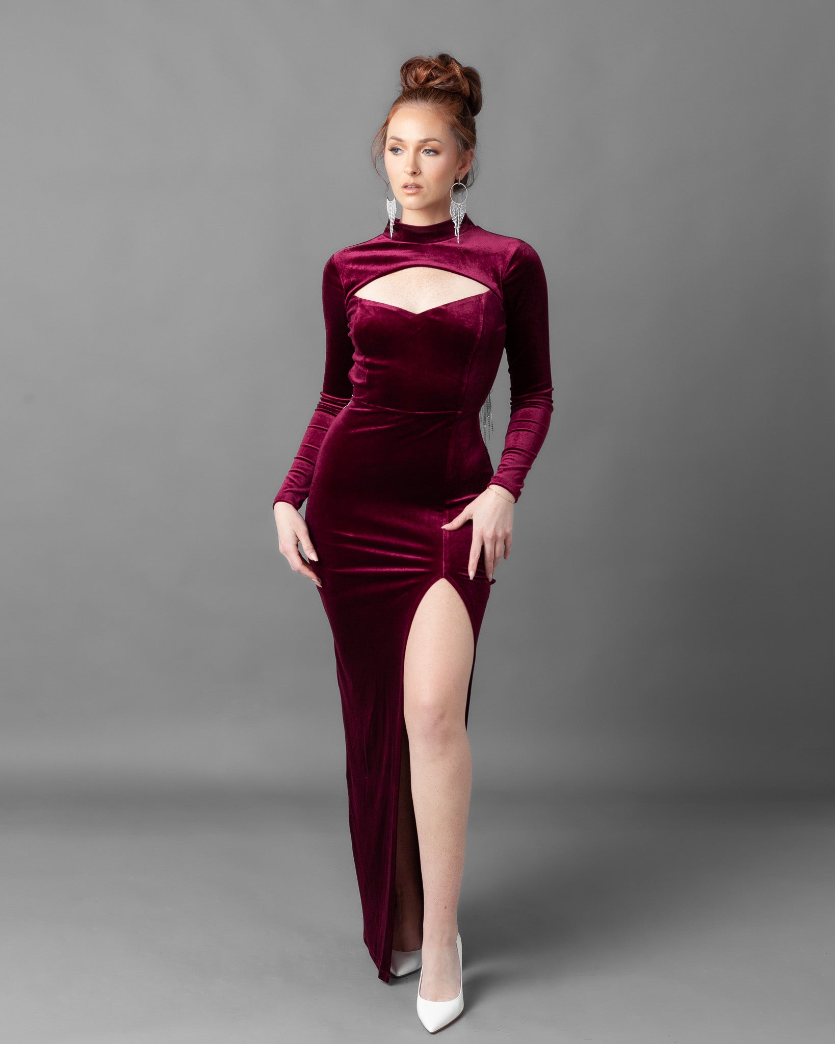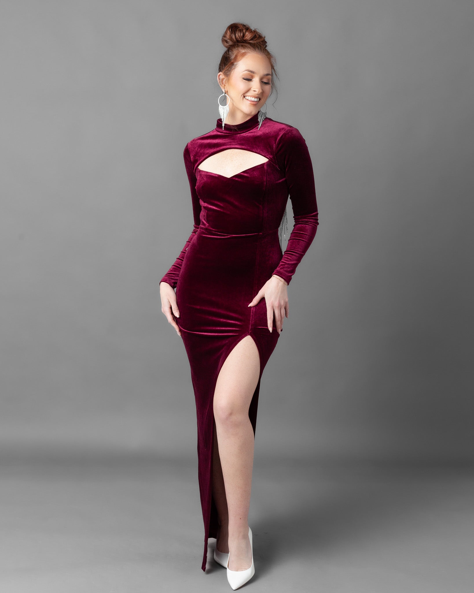 Moscow Silky Maxi Dress + Ruffle Thigh slit