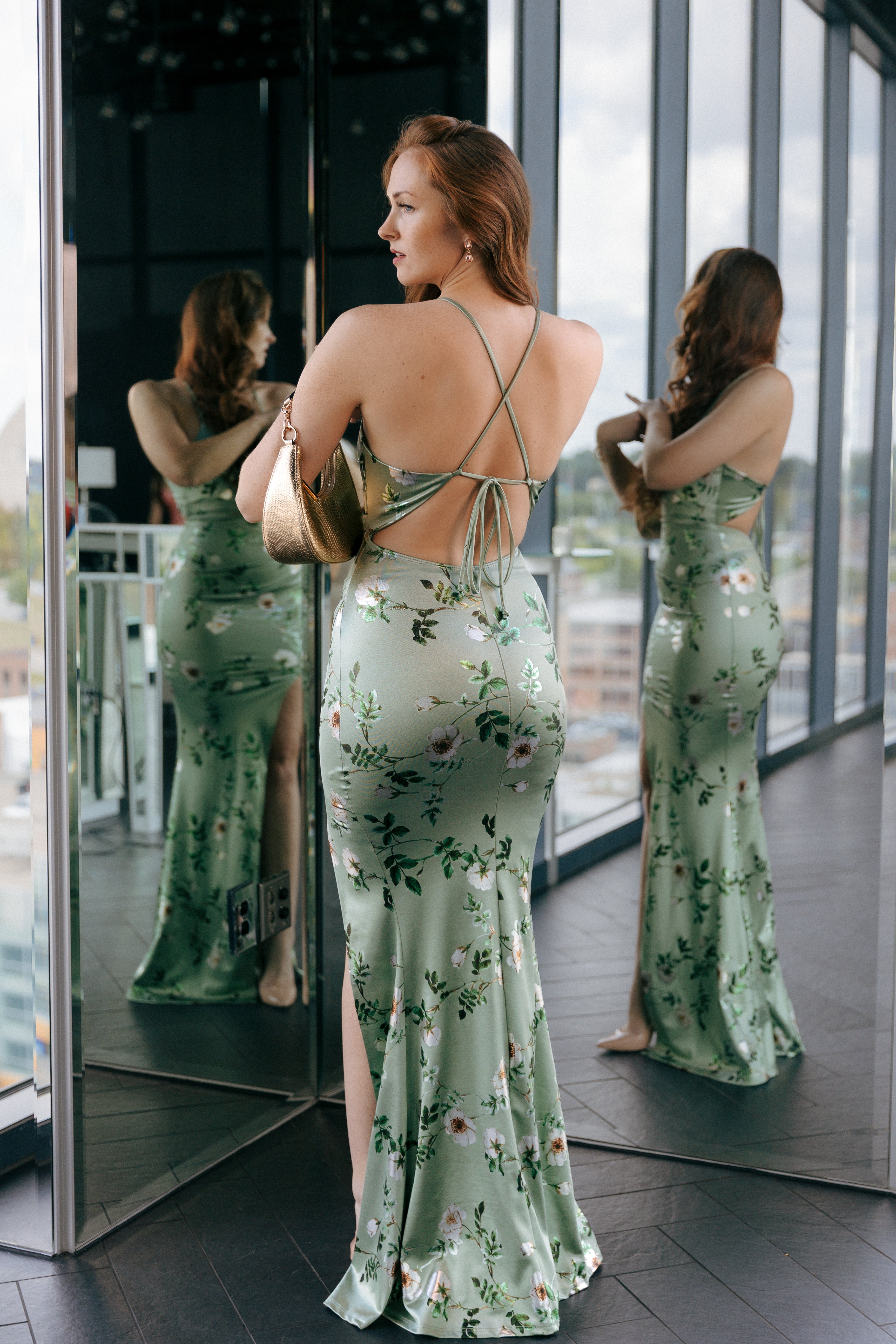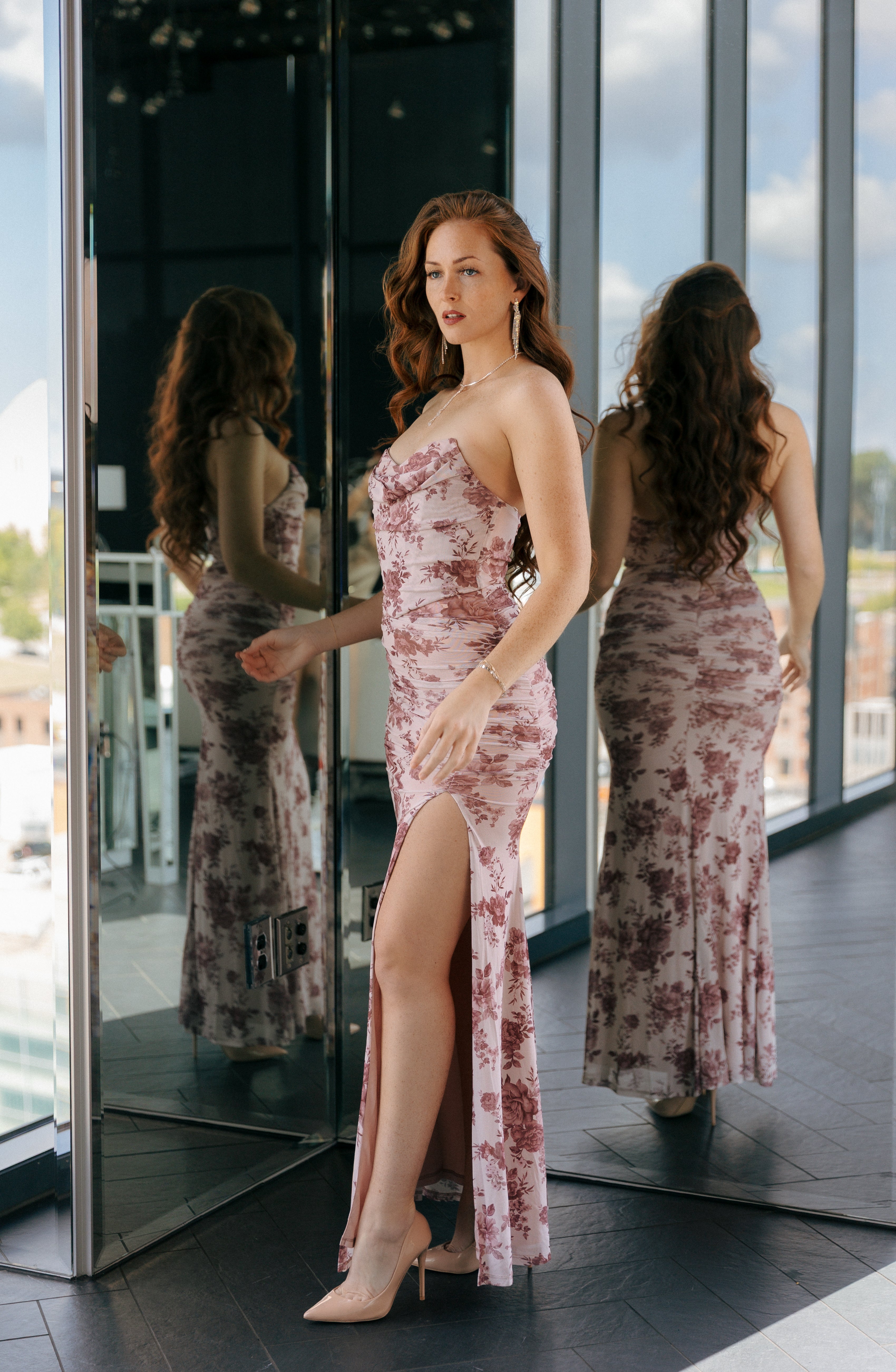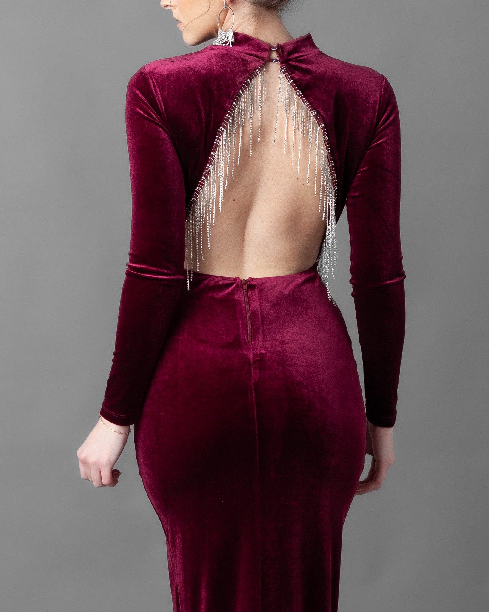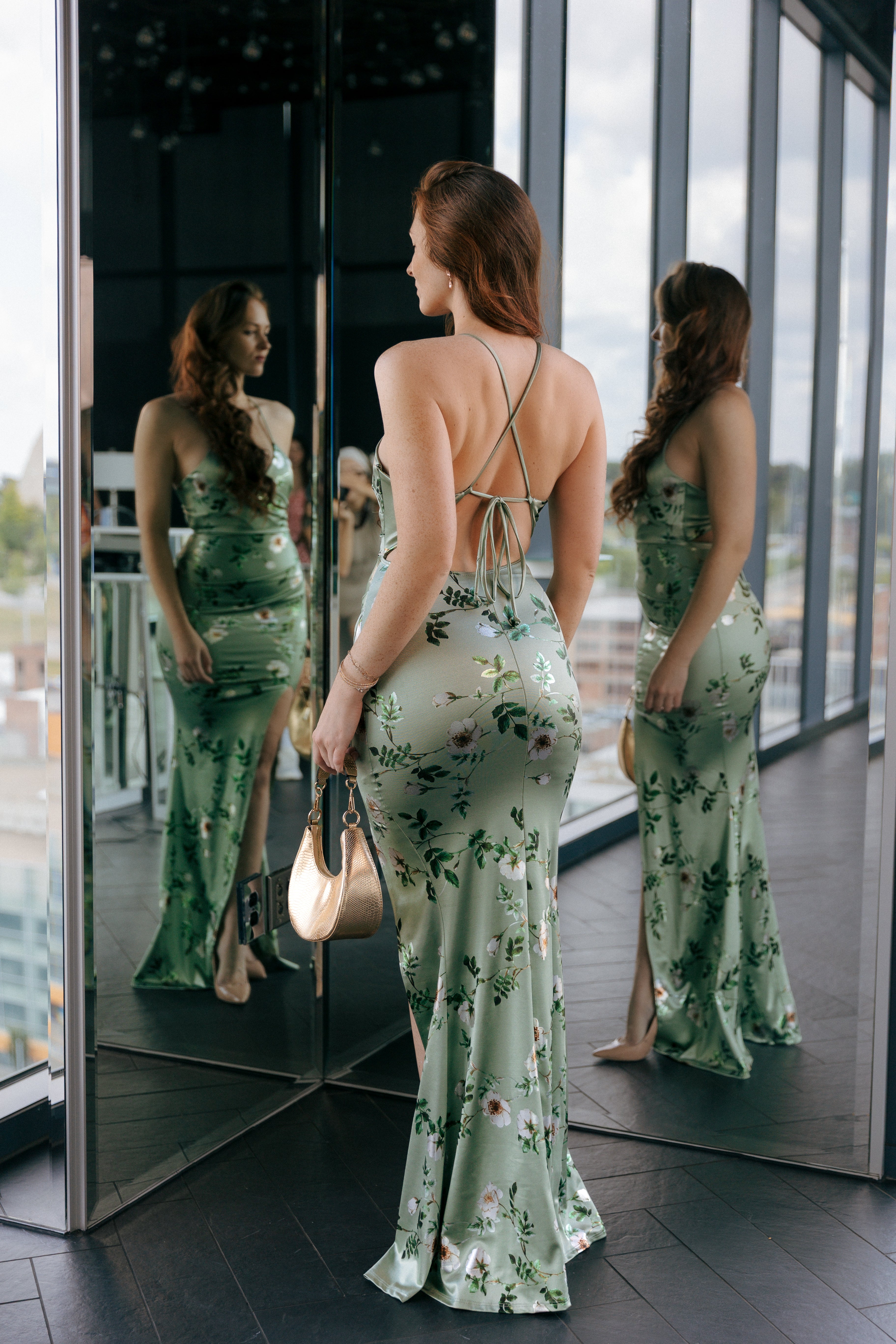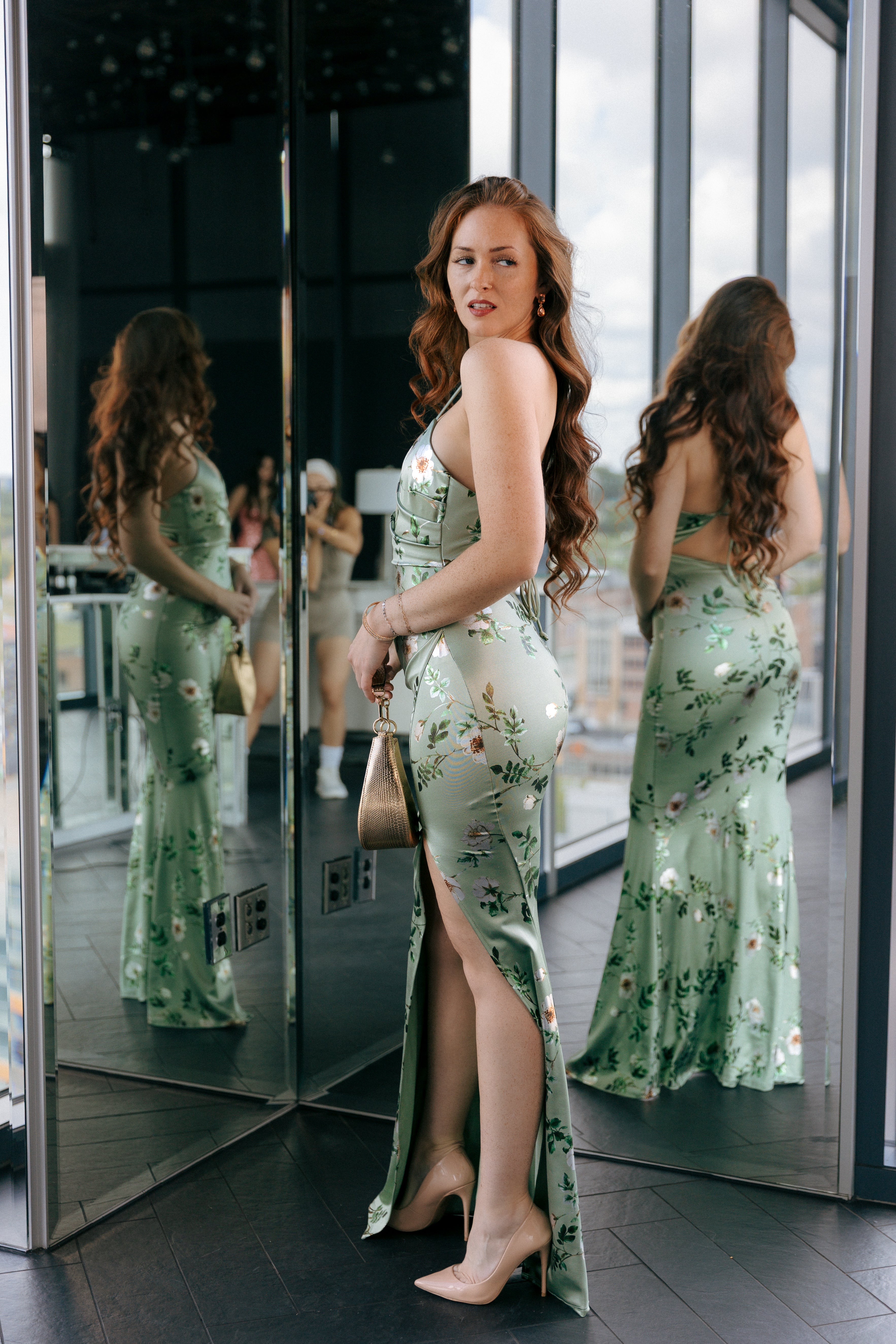 Moscow Silky Maxi Dress + Ruffle Thigh slit