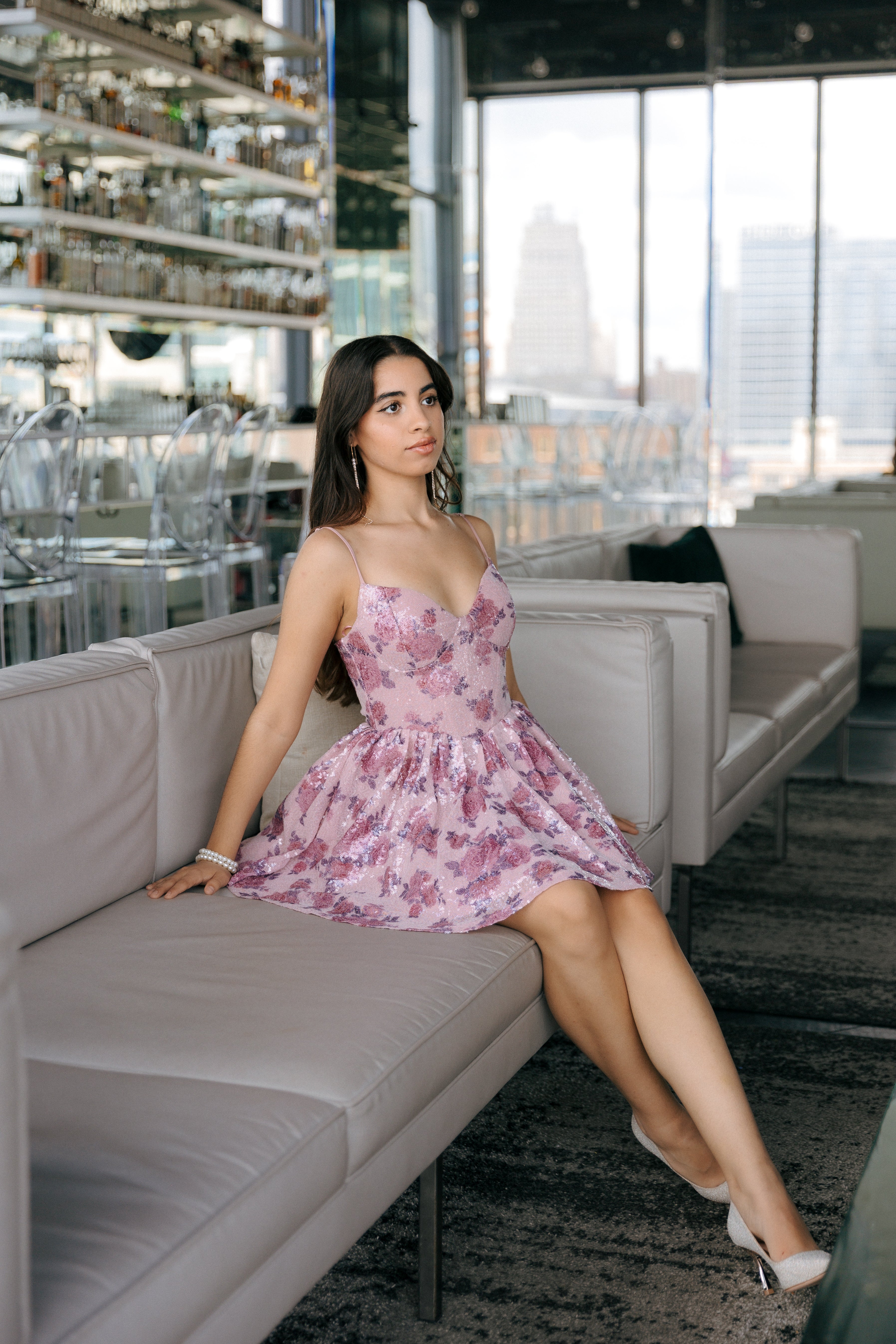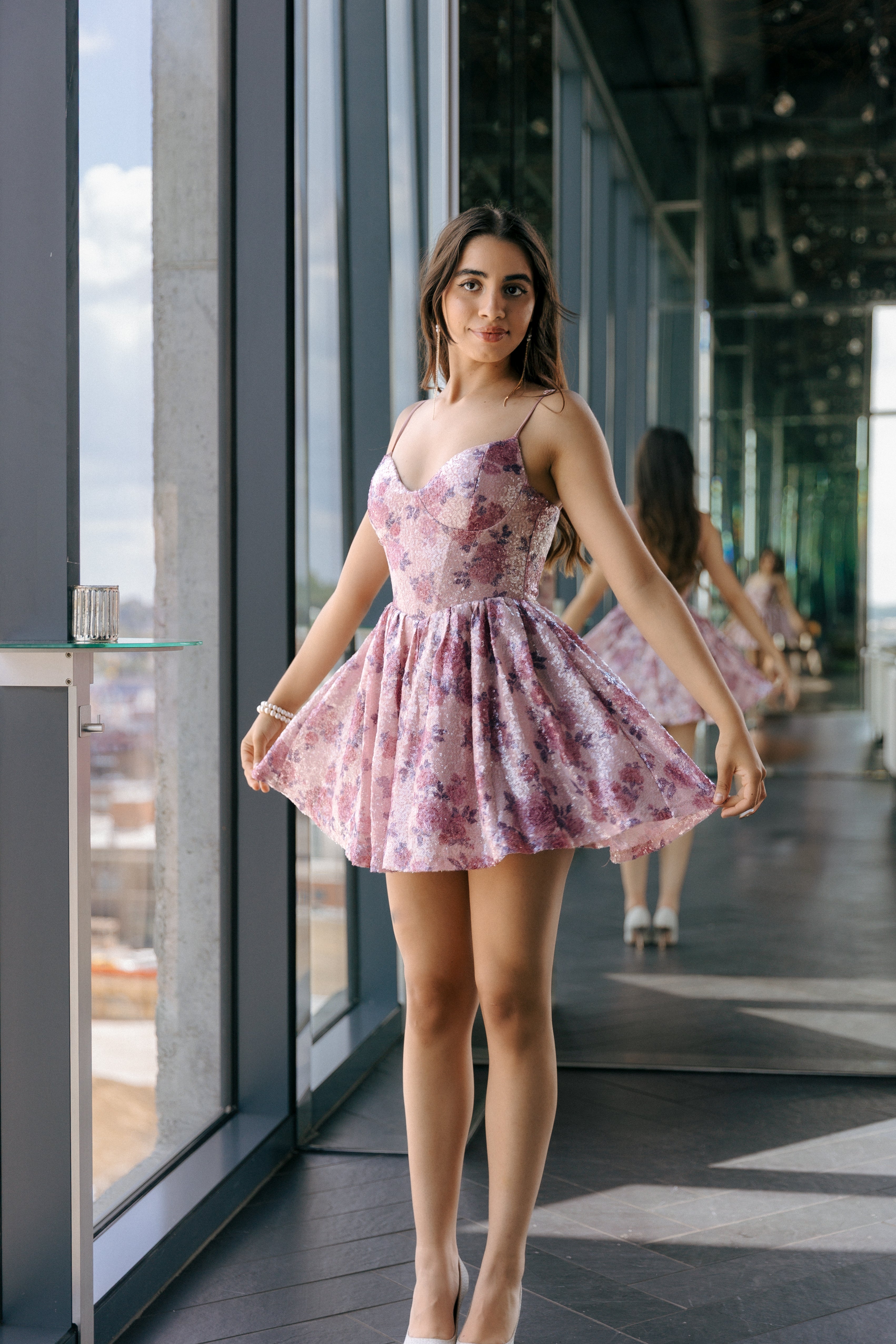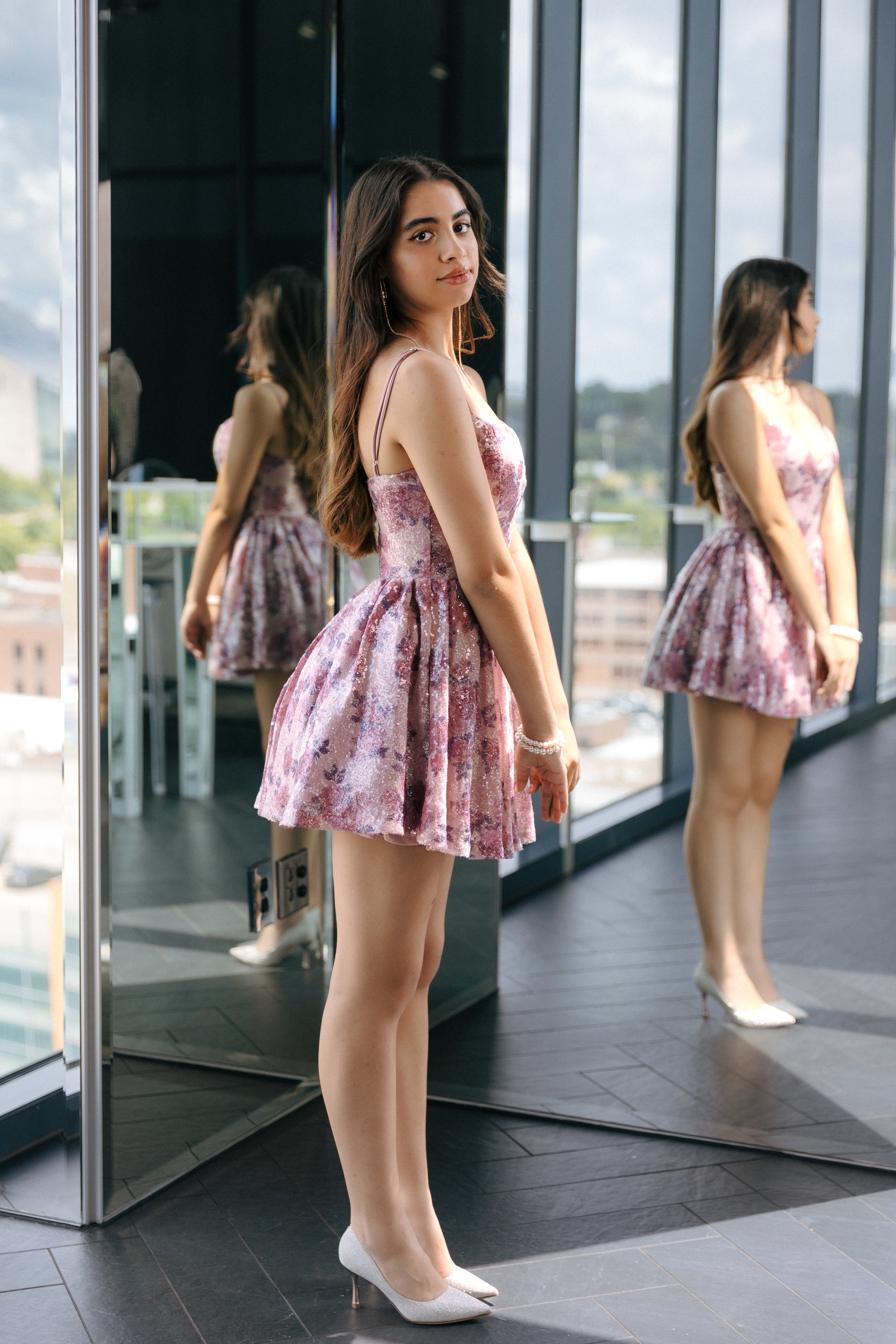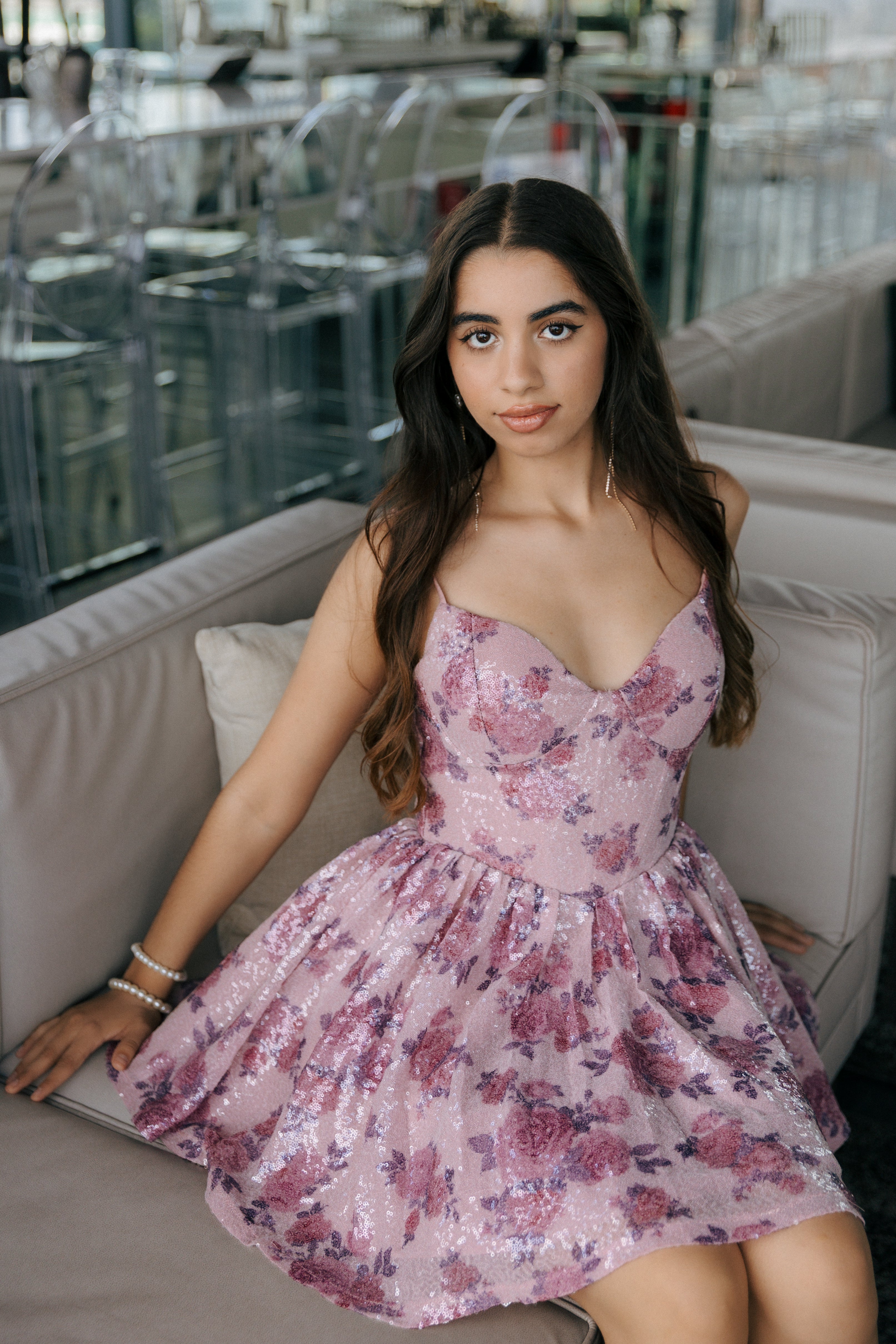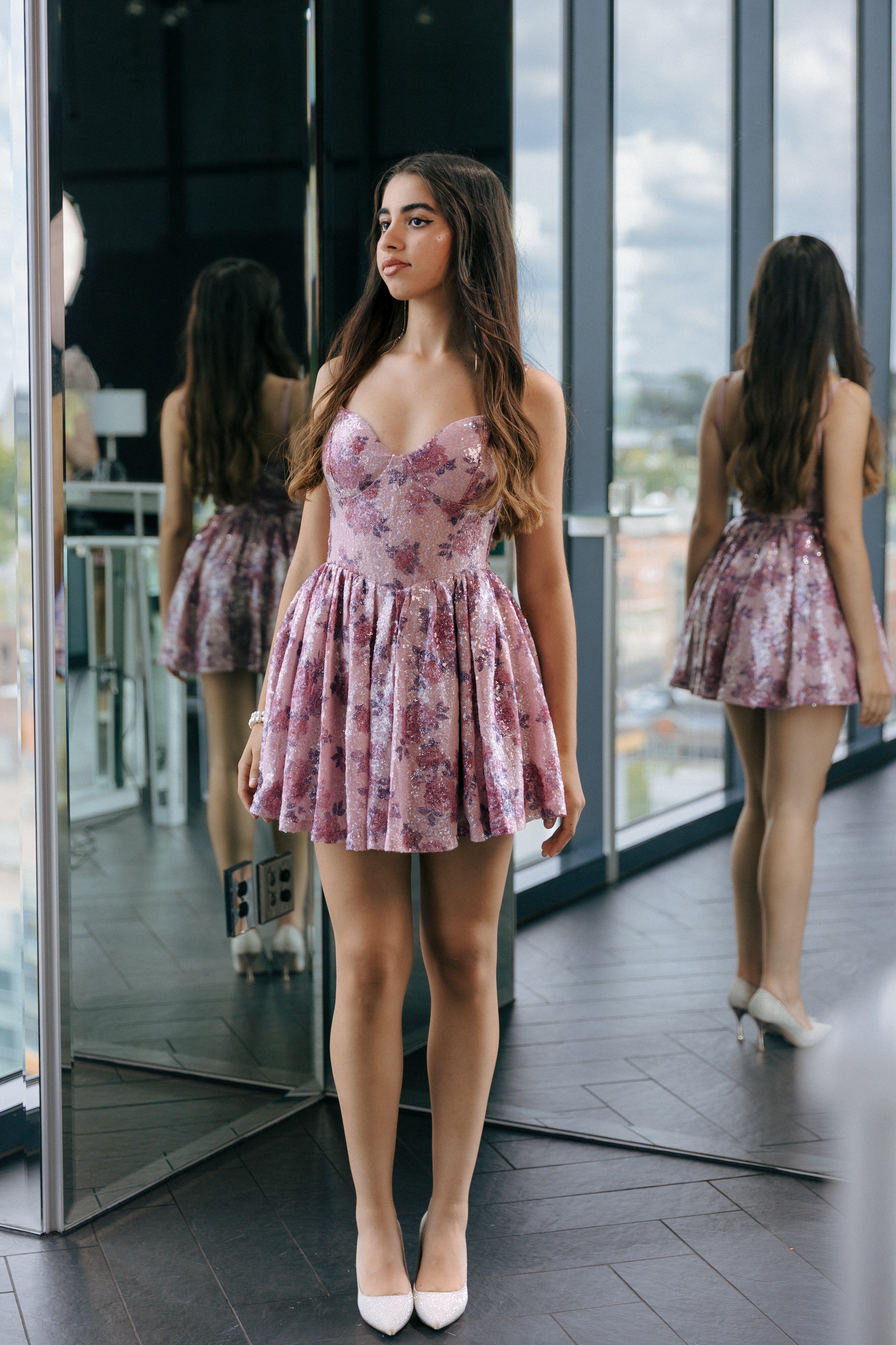 Floral Sequin Fit-and-Flare Mini Dress with Structured Bodice