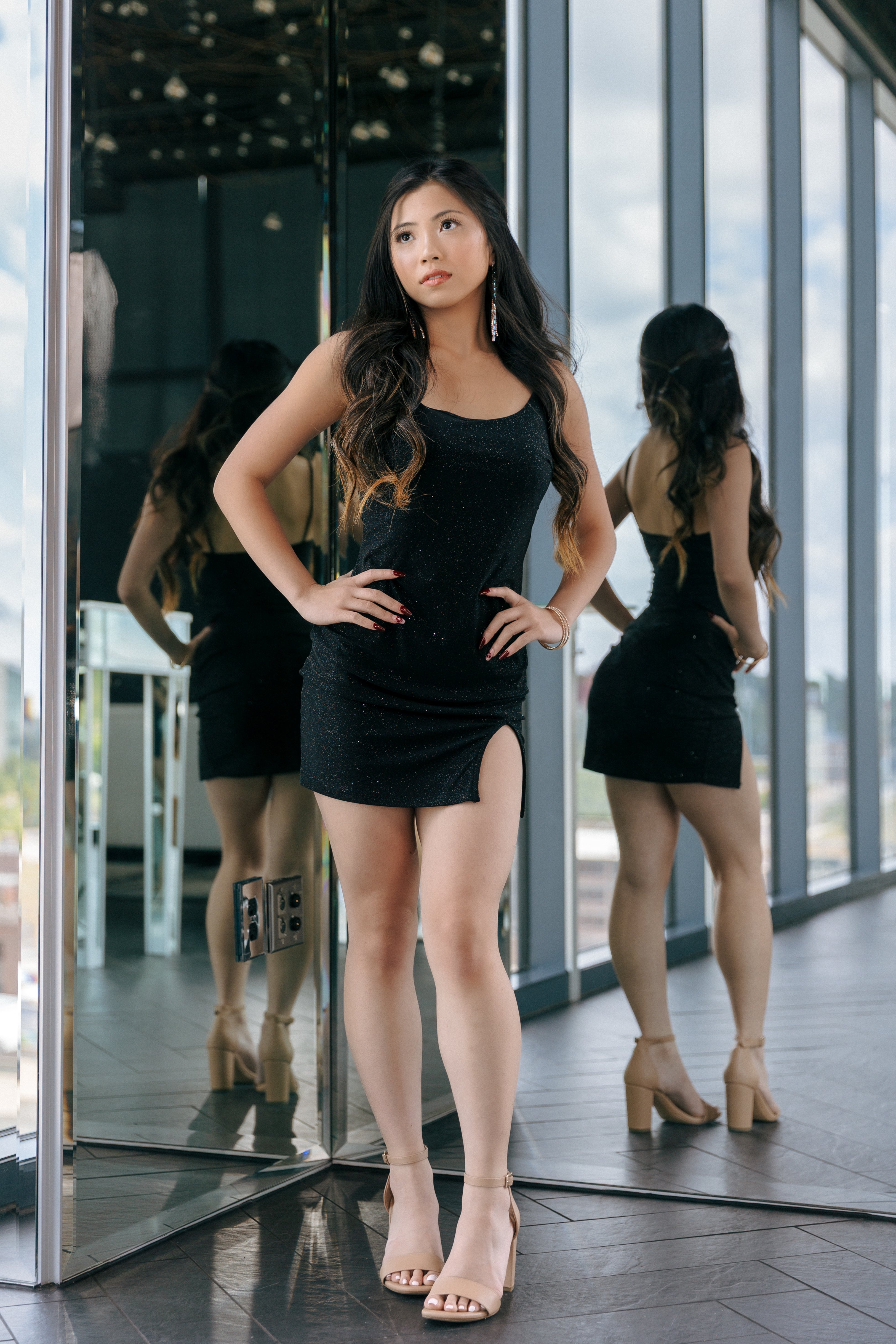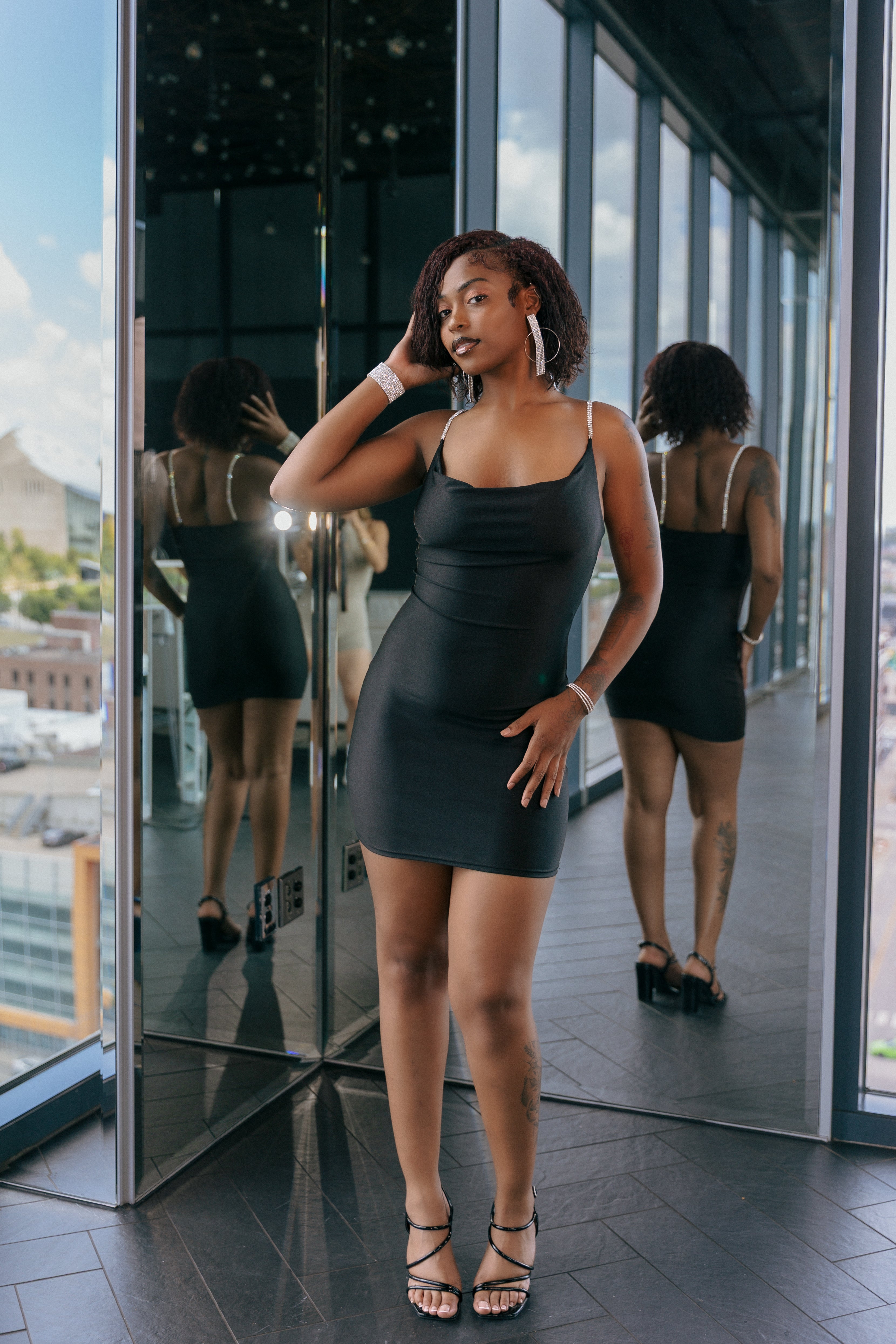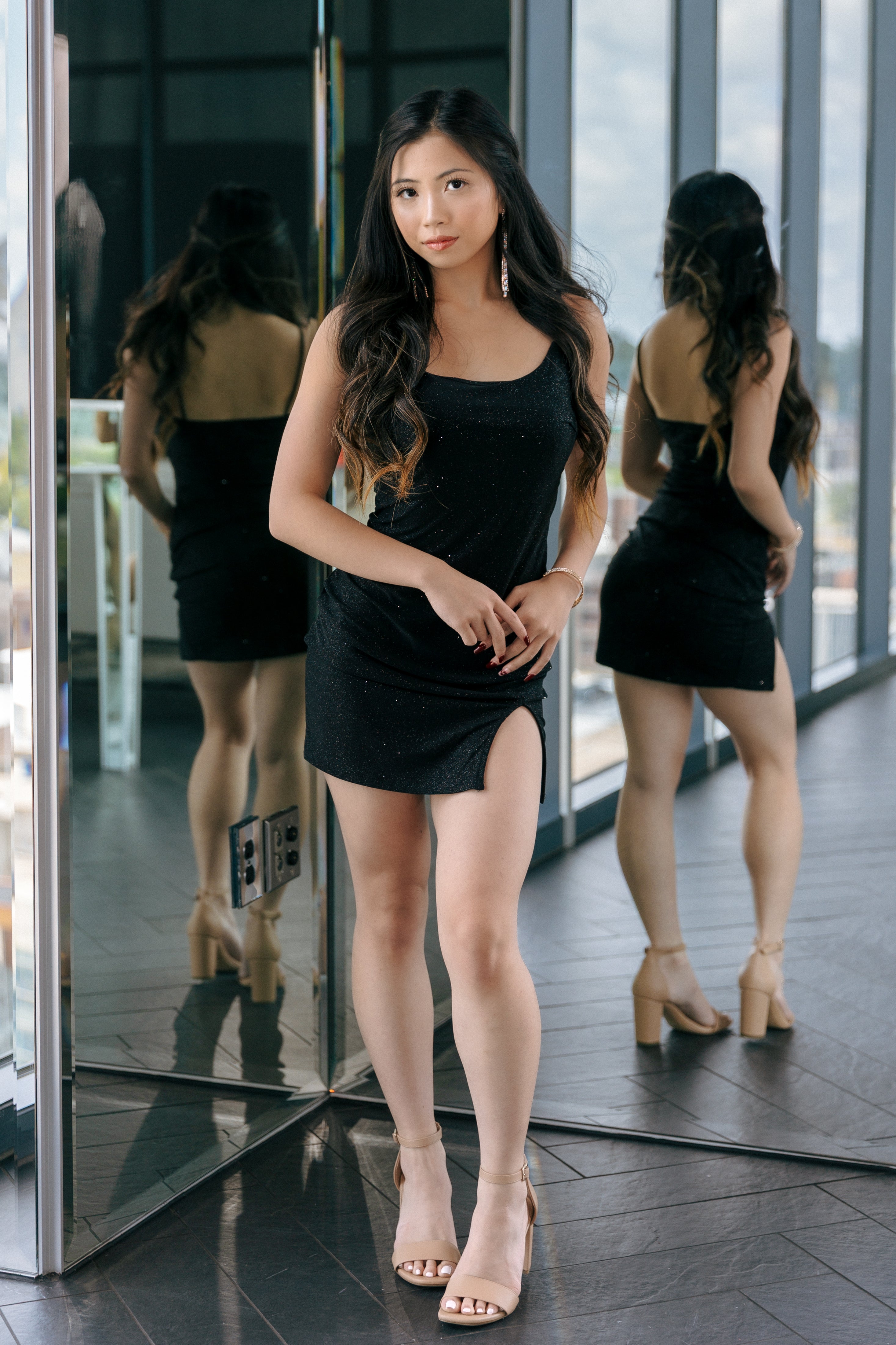 Cairo Glitter Spaghetti Strap Mini Dress + Thigh Slit