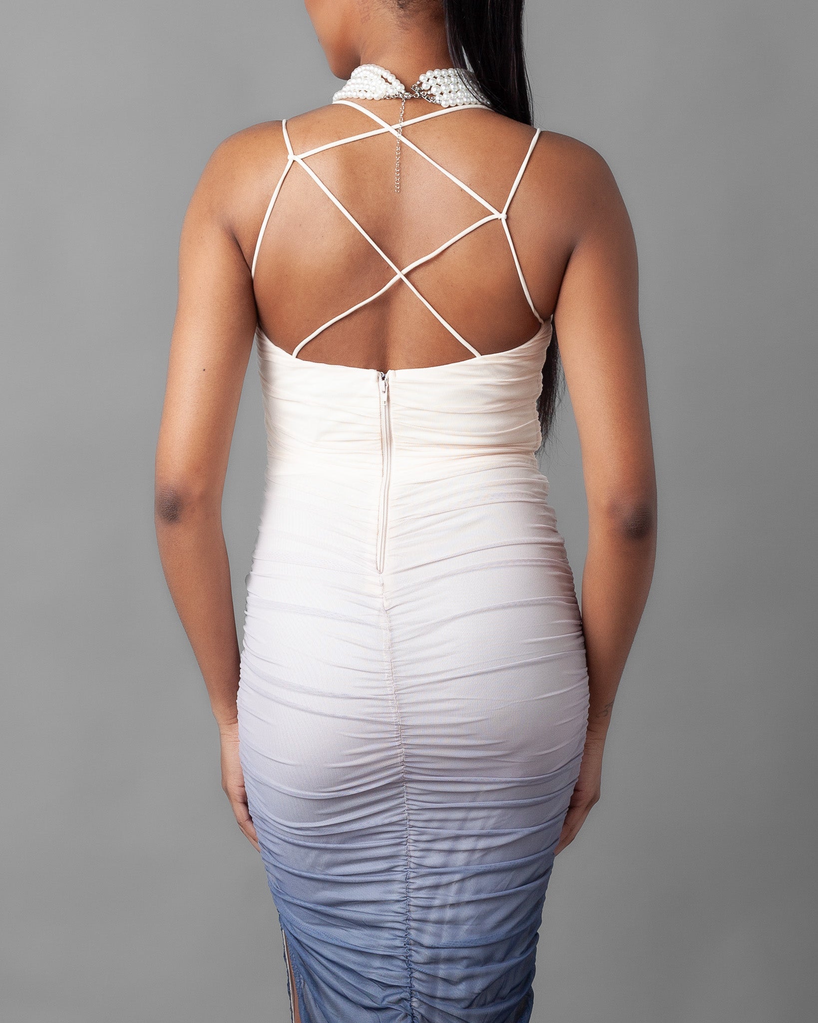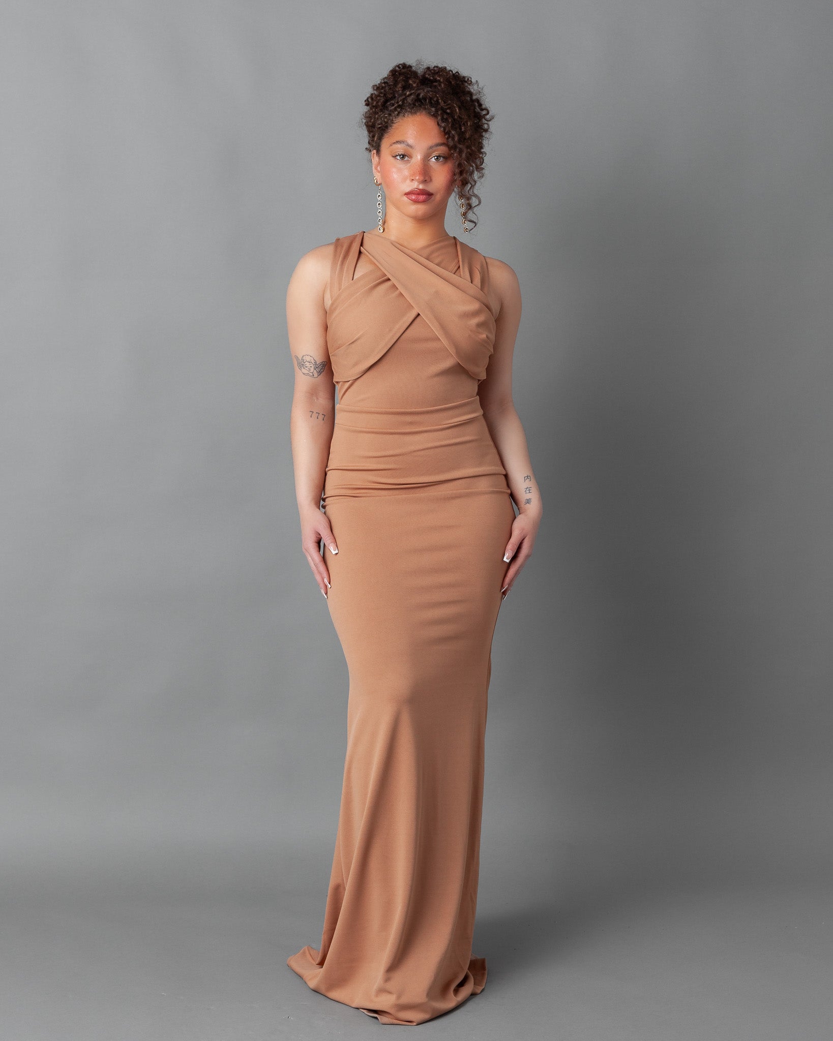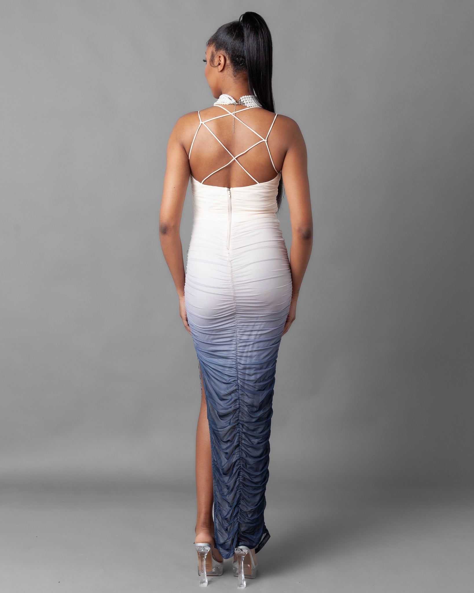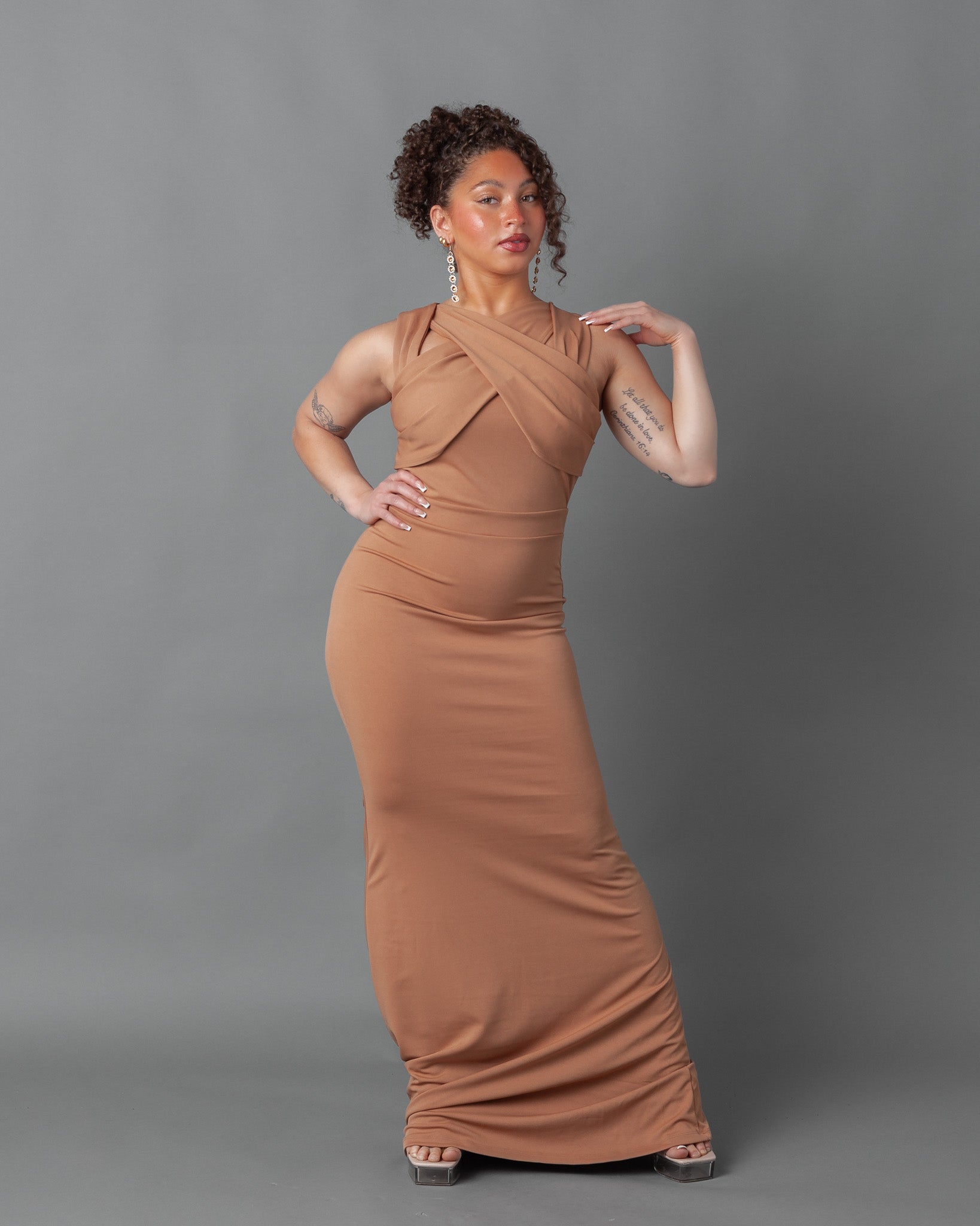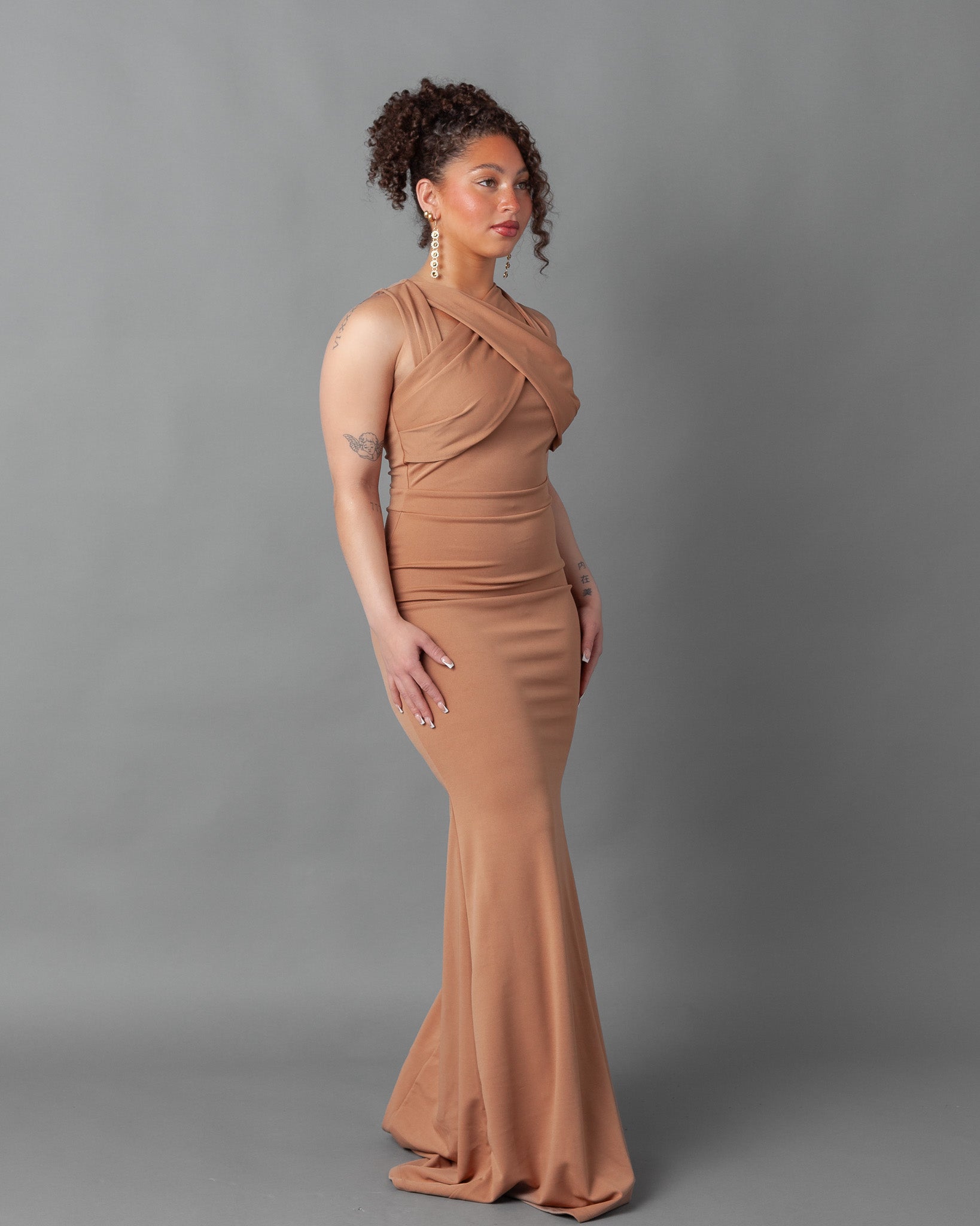Paris Rhinestone Bust Crossover Slit Maxi Dress