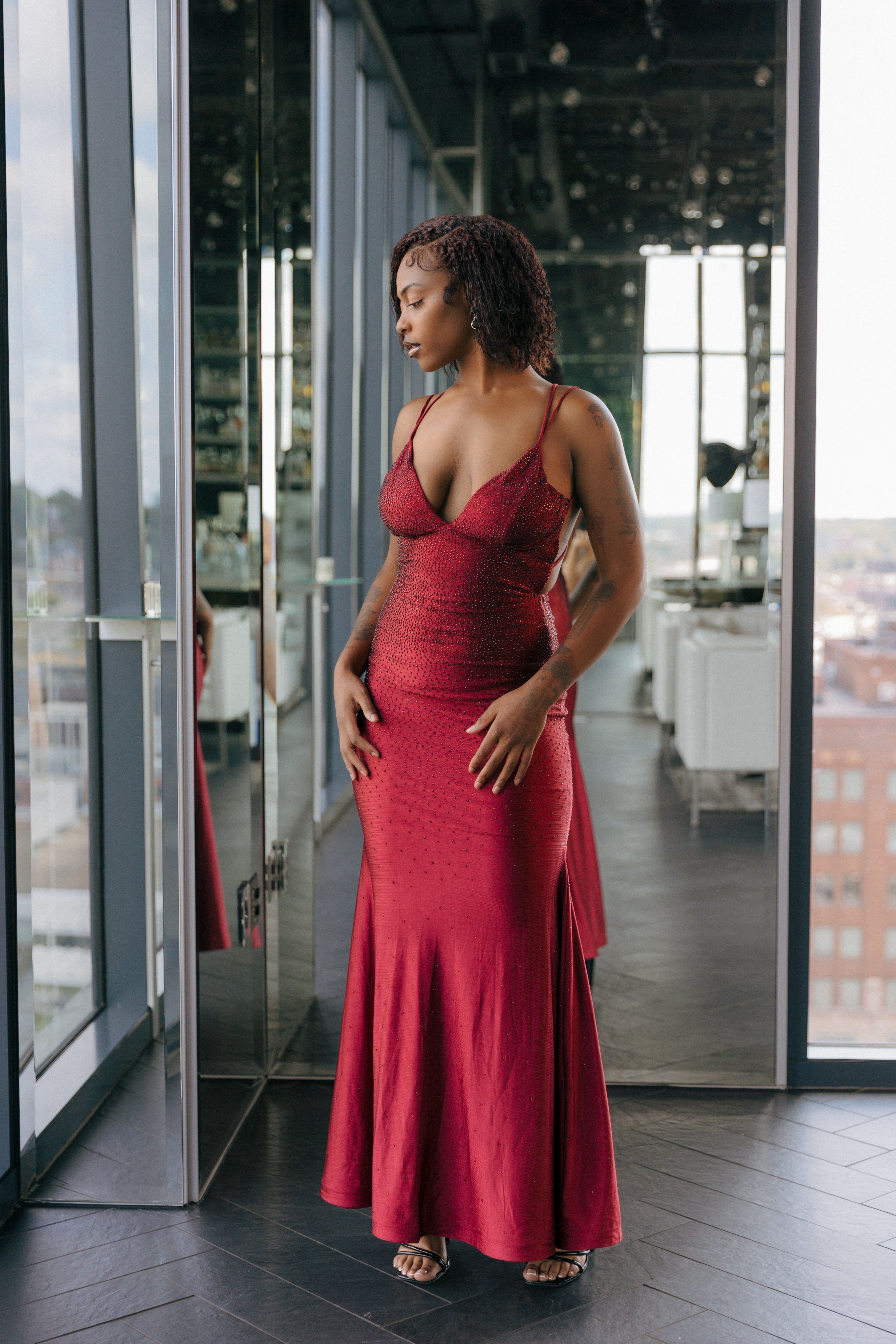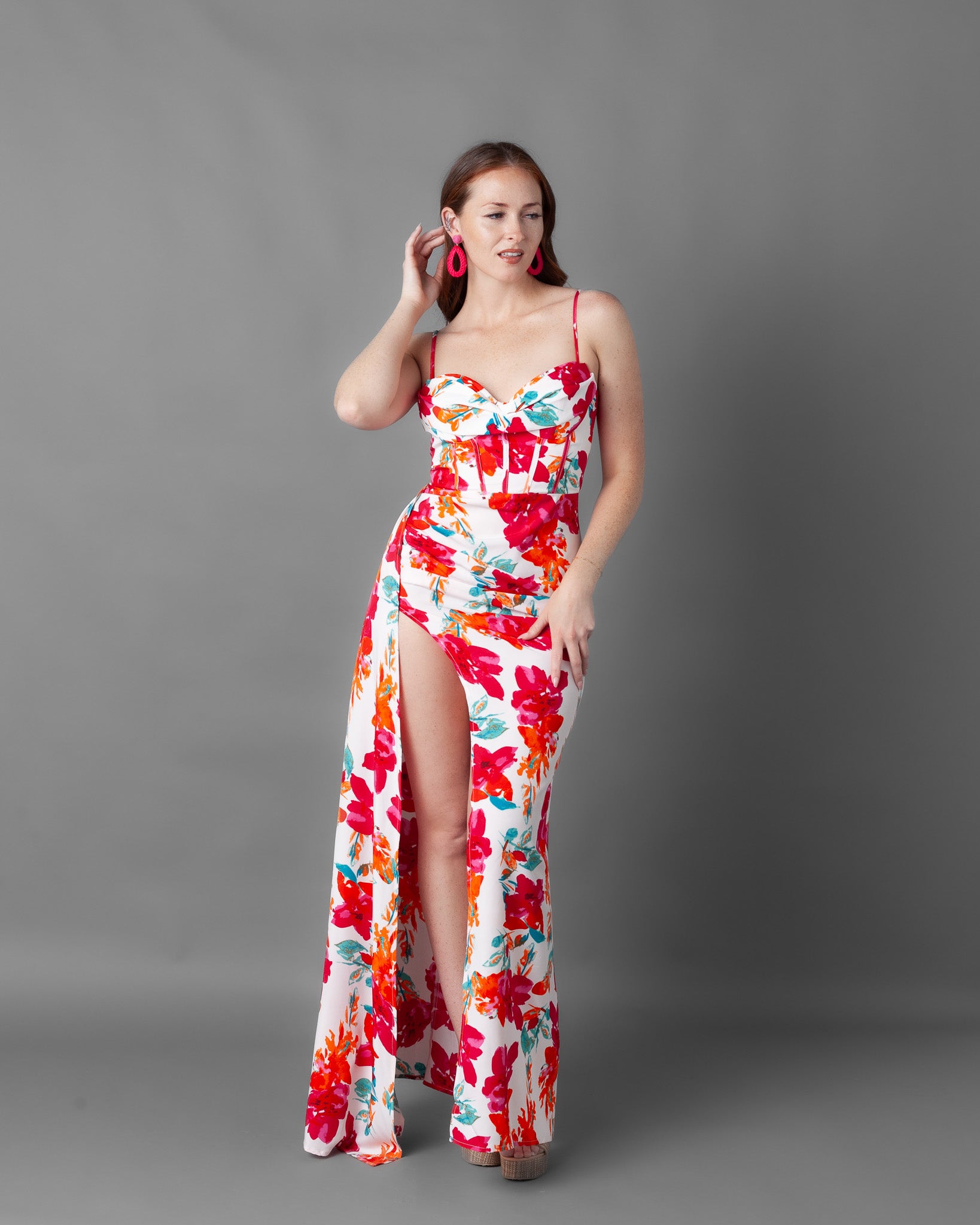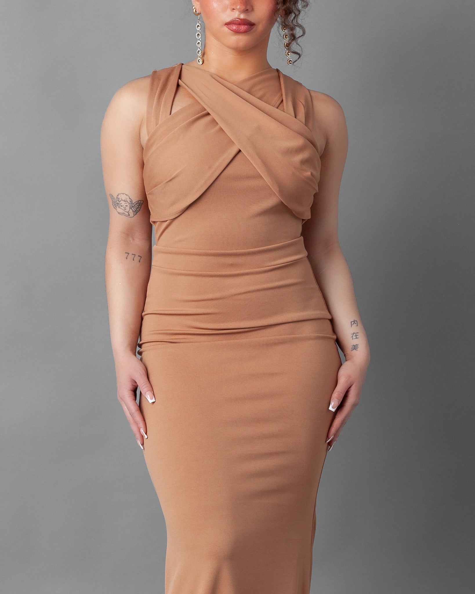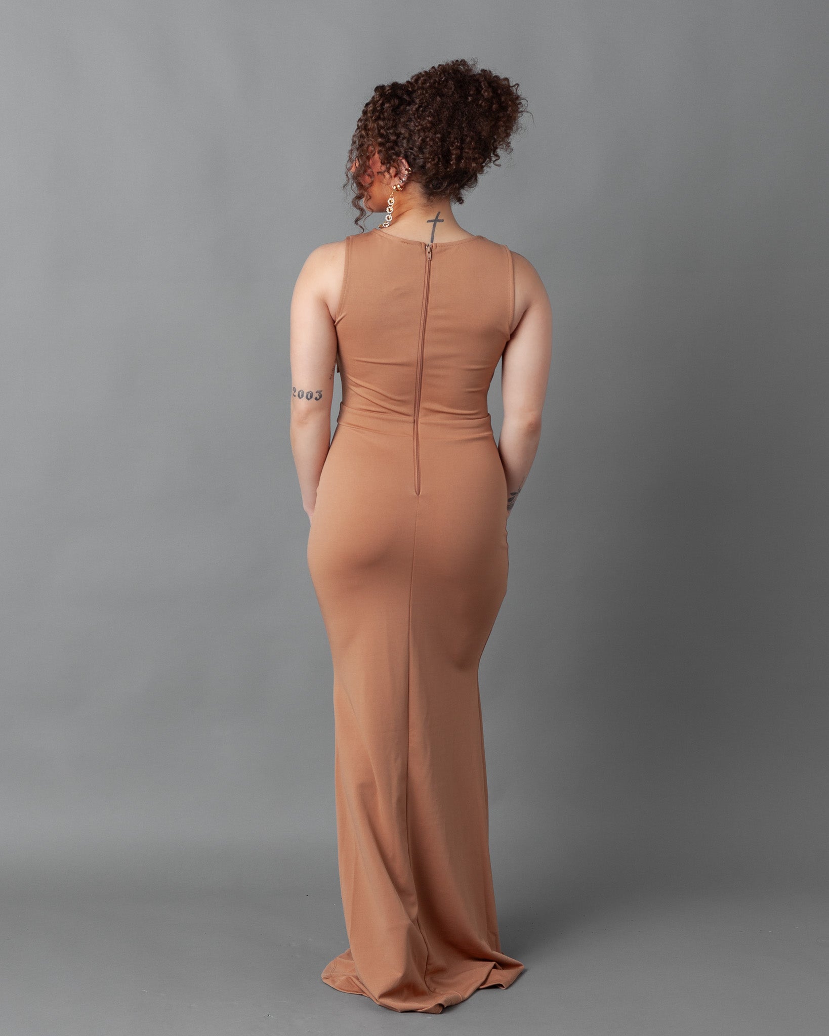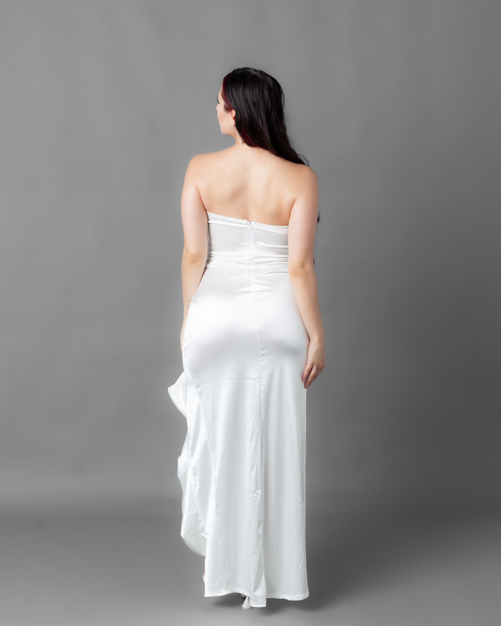 Paris Rhinestone Bust Crossover Slit Maxi Dress
