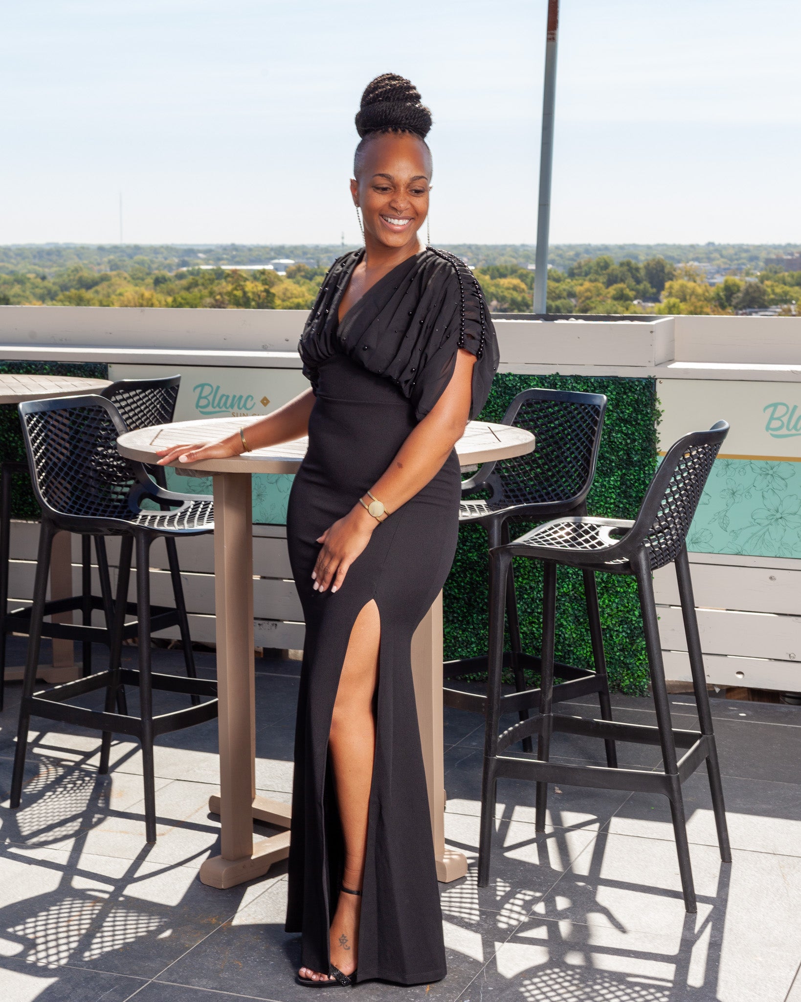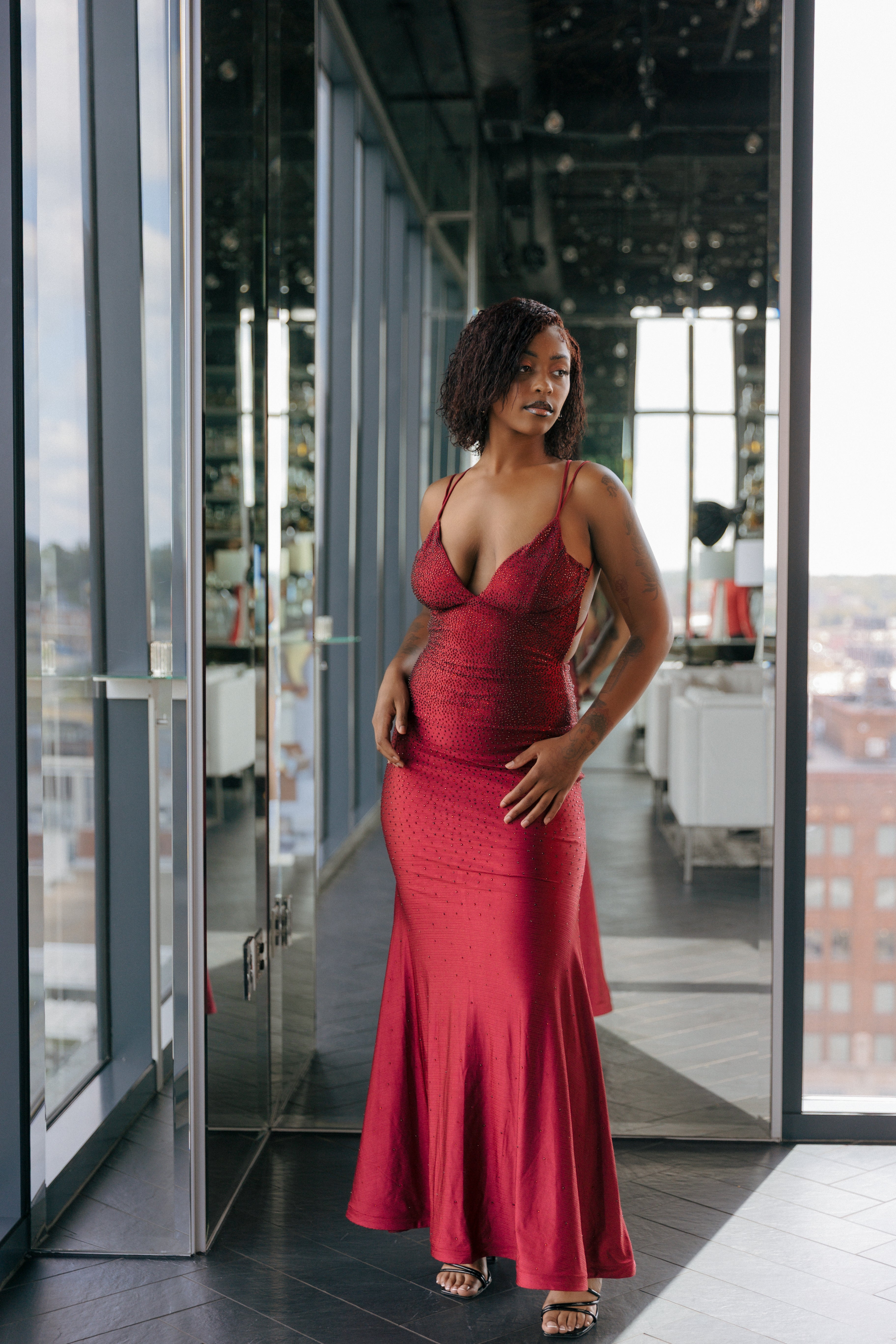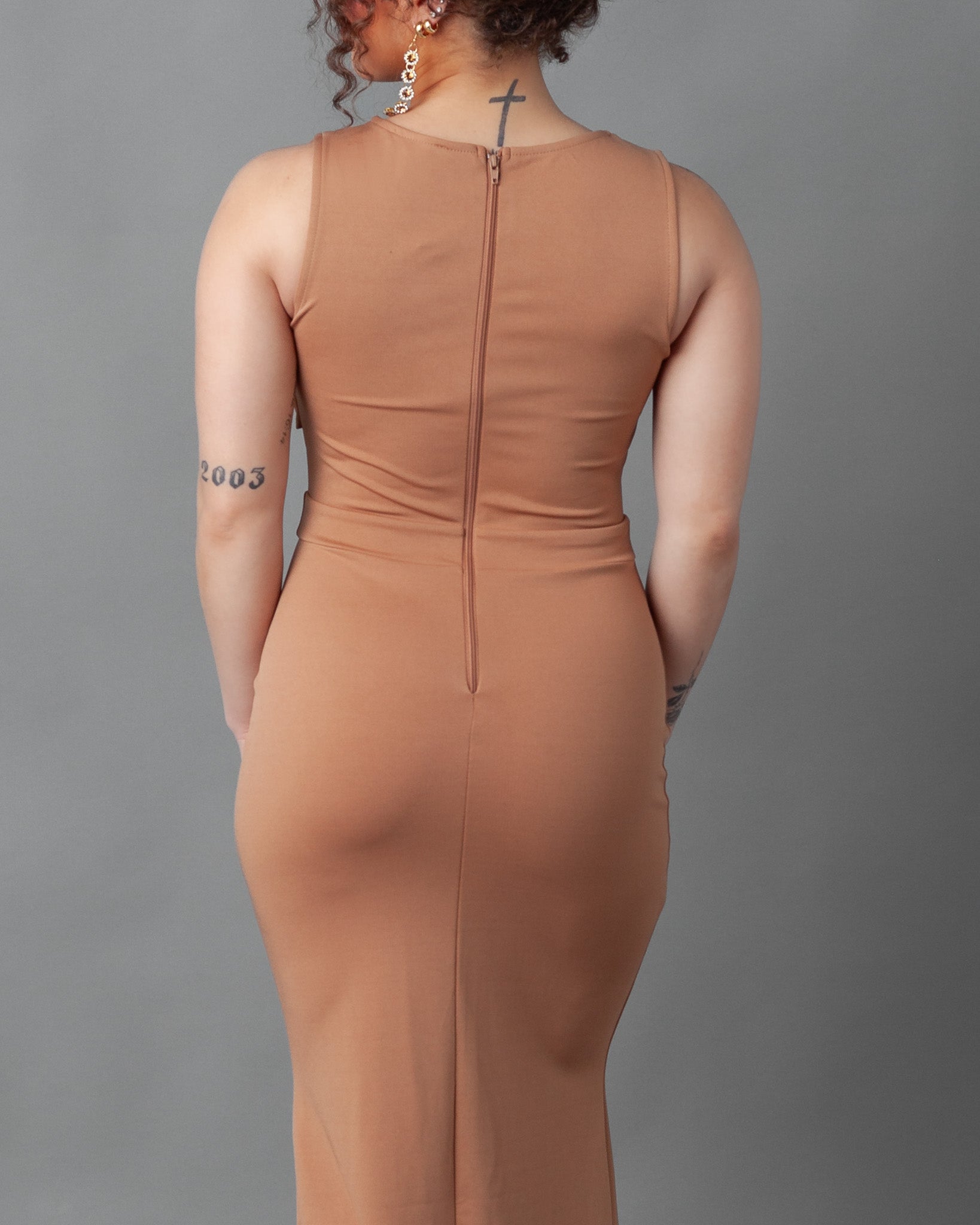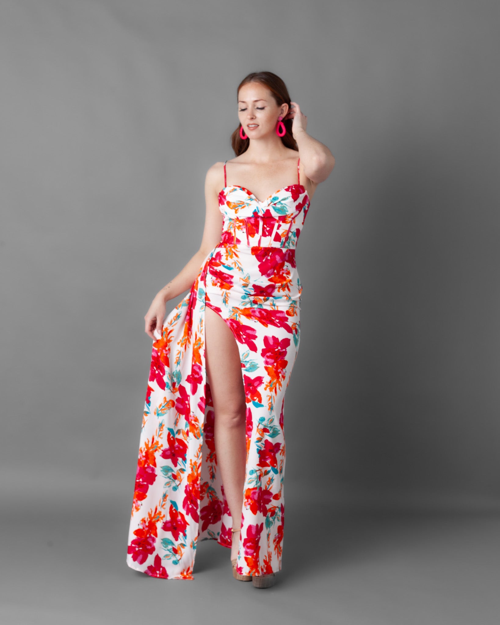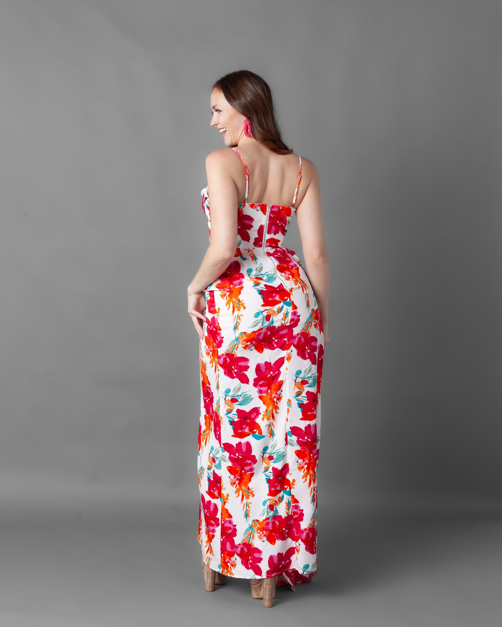 Paris Rhinestone Bust Crossover Slit Maxi Dress
