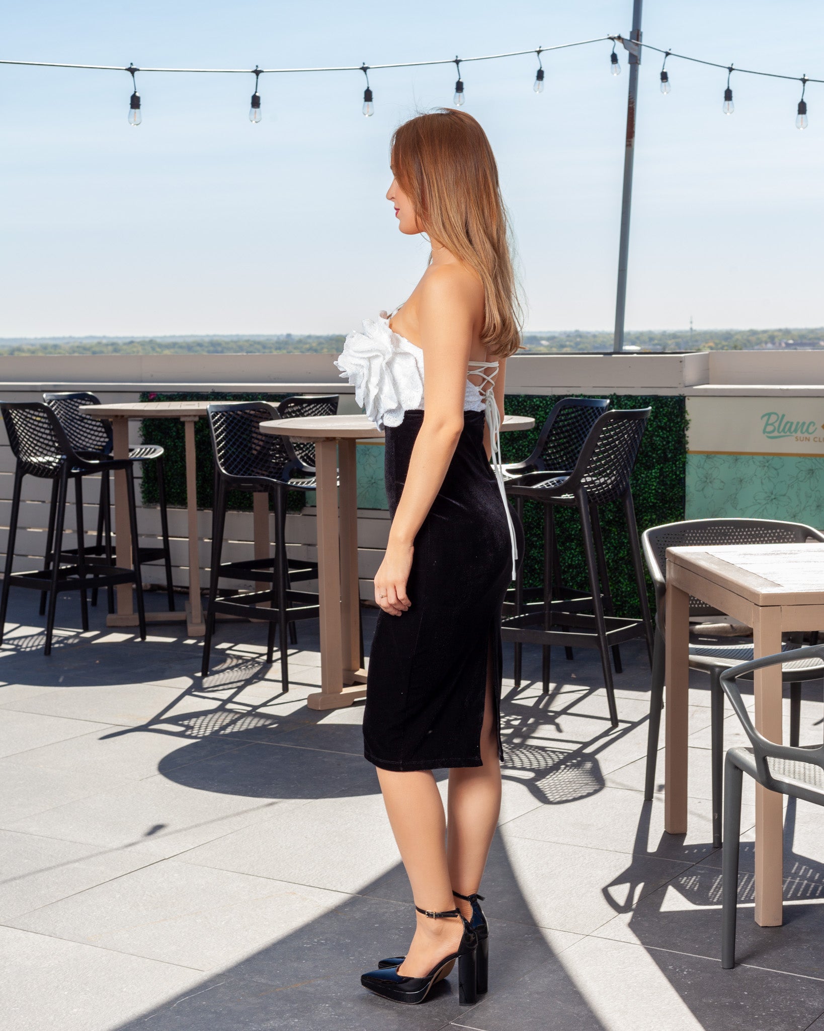Sequin 3D Flower Velvet Midi Dress with Ladder Tie Back