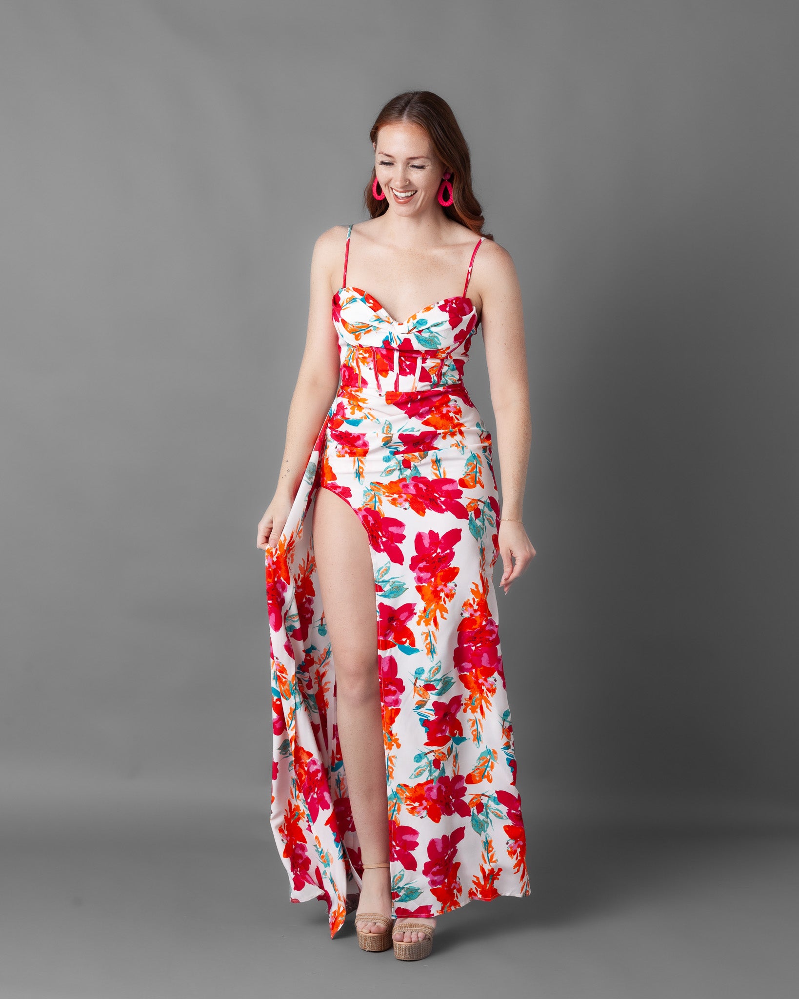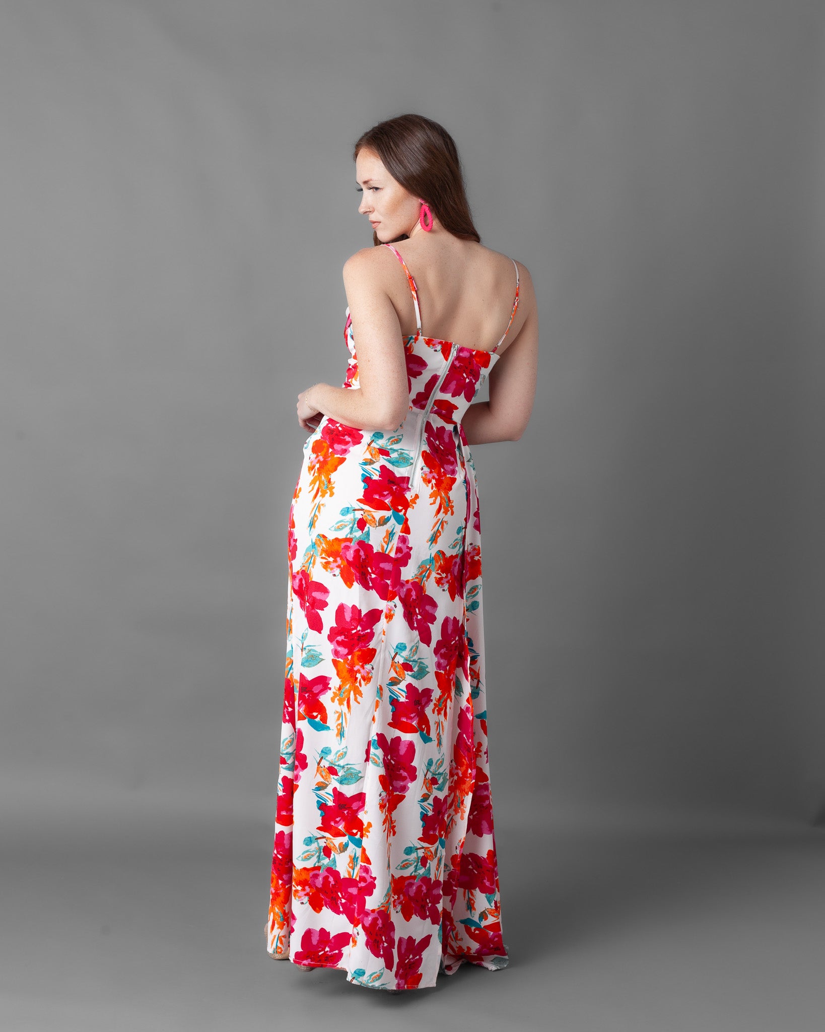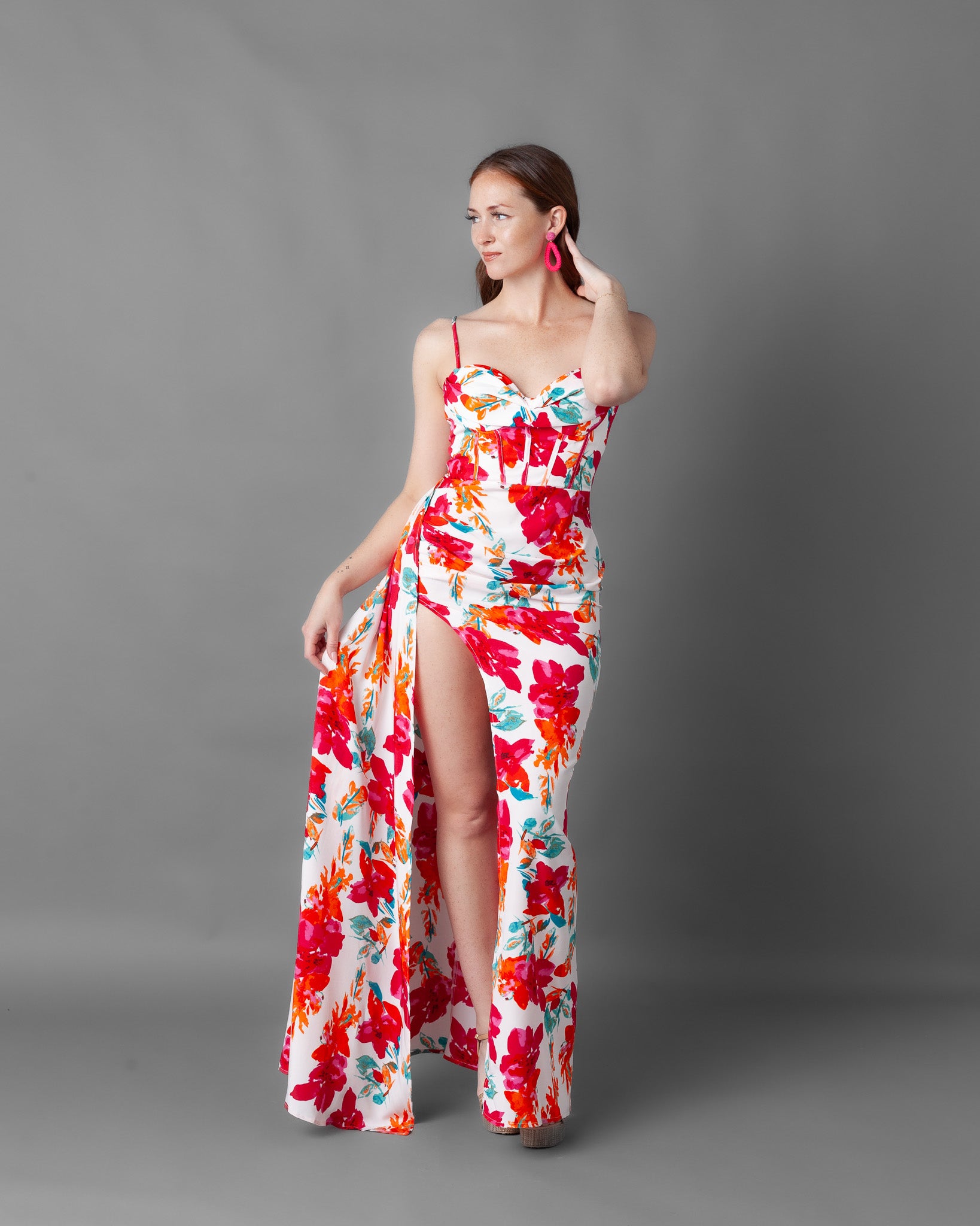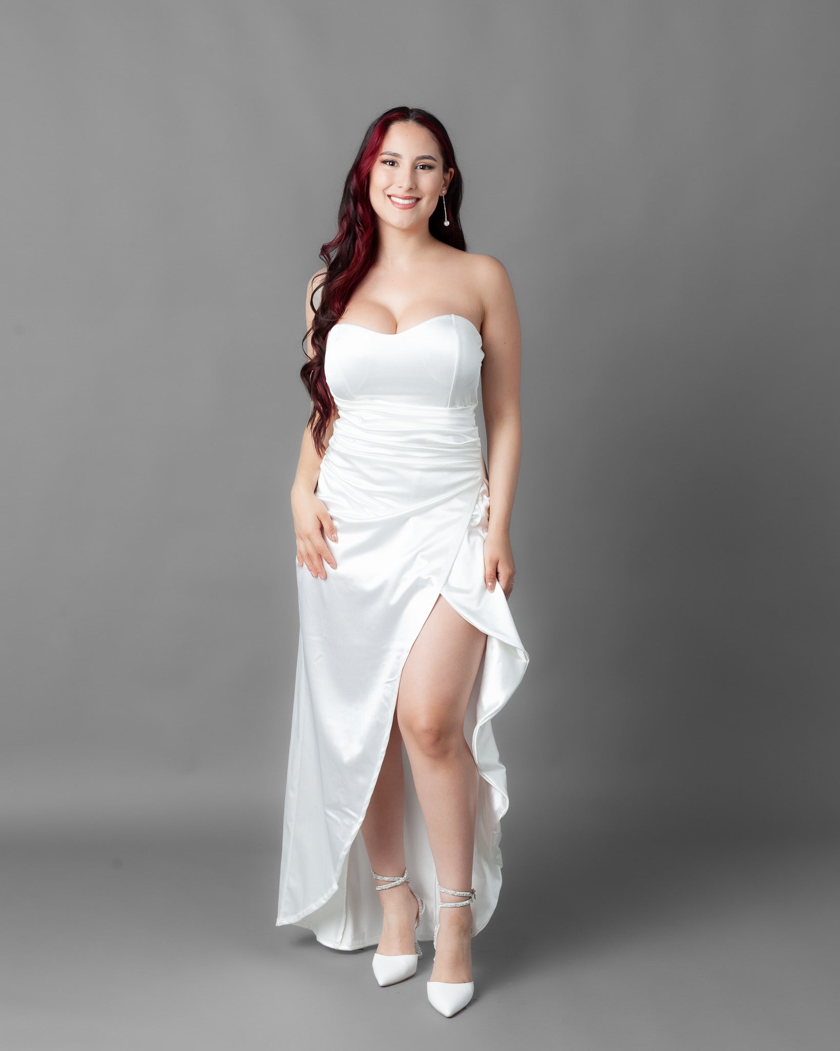 Paris Floor Sweep Spaghetti Strap Gown + Thigh
