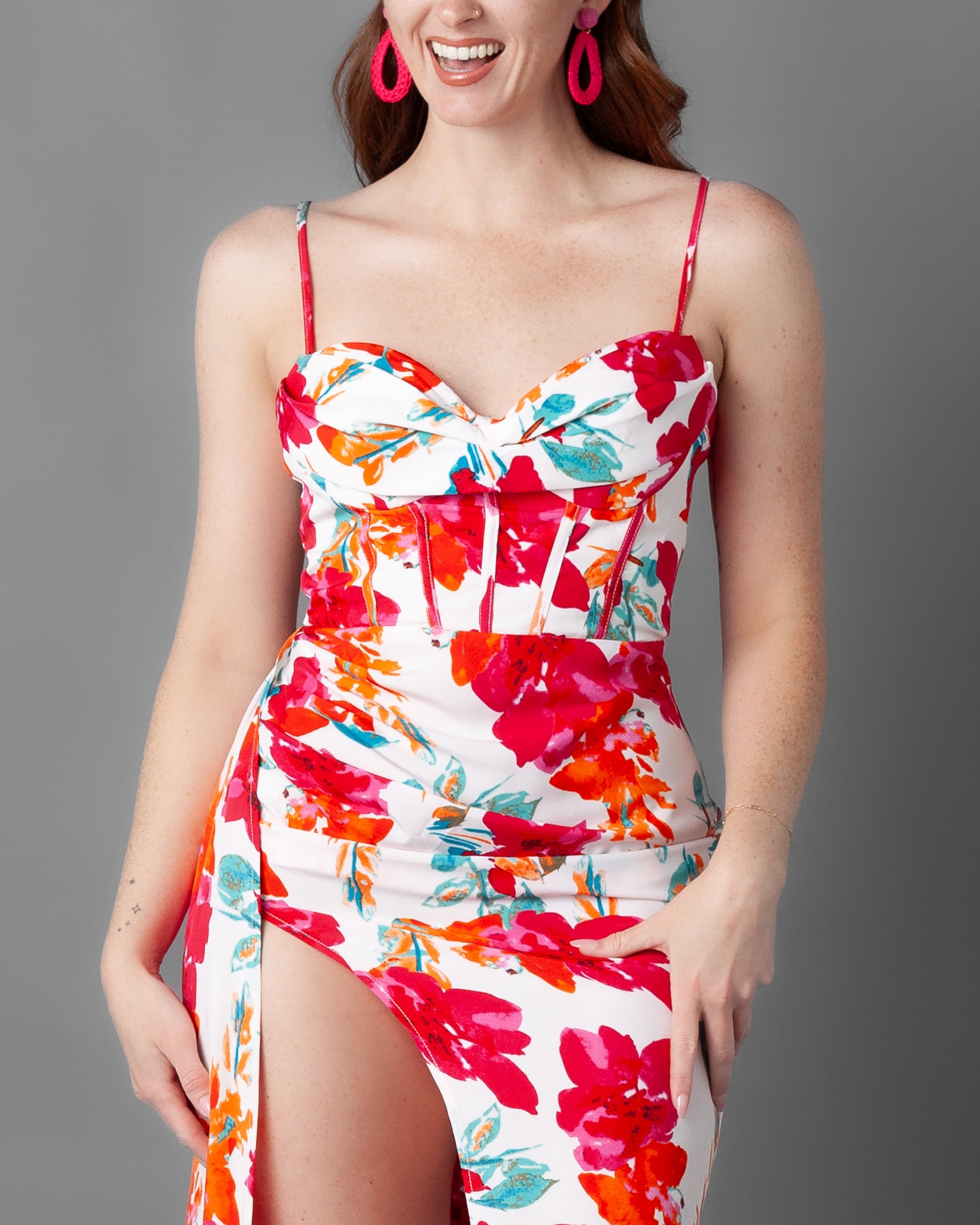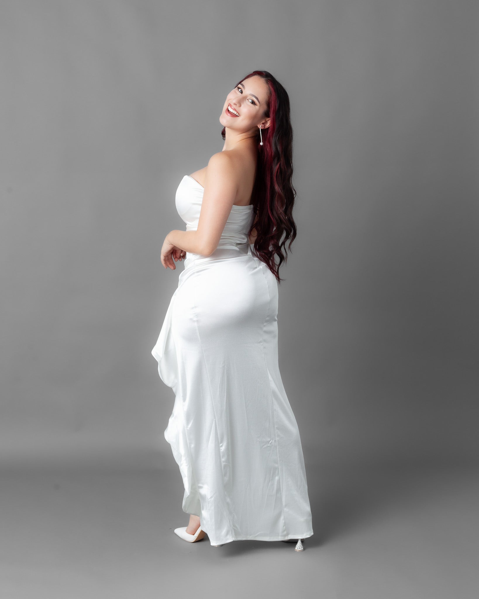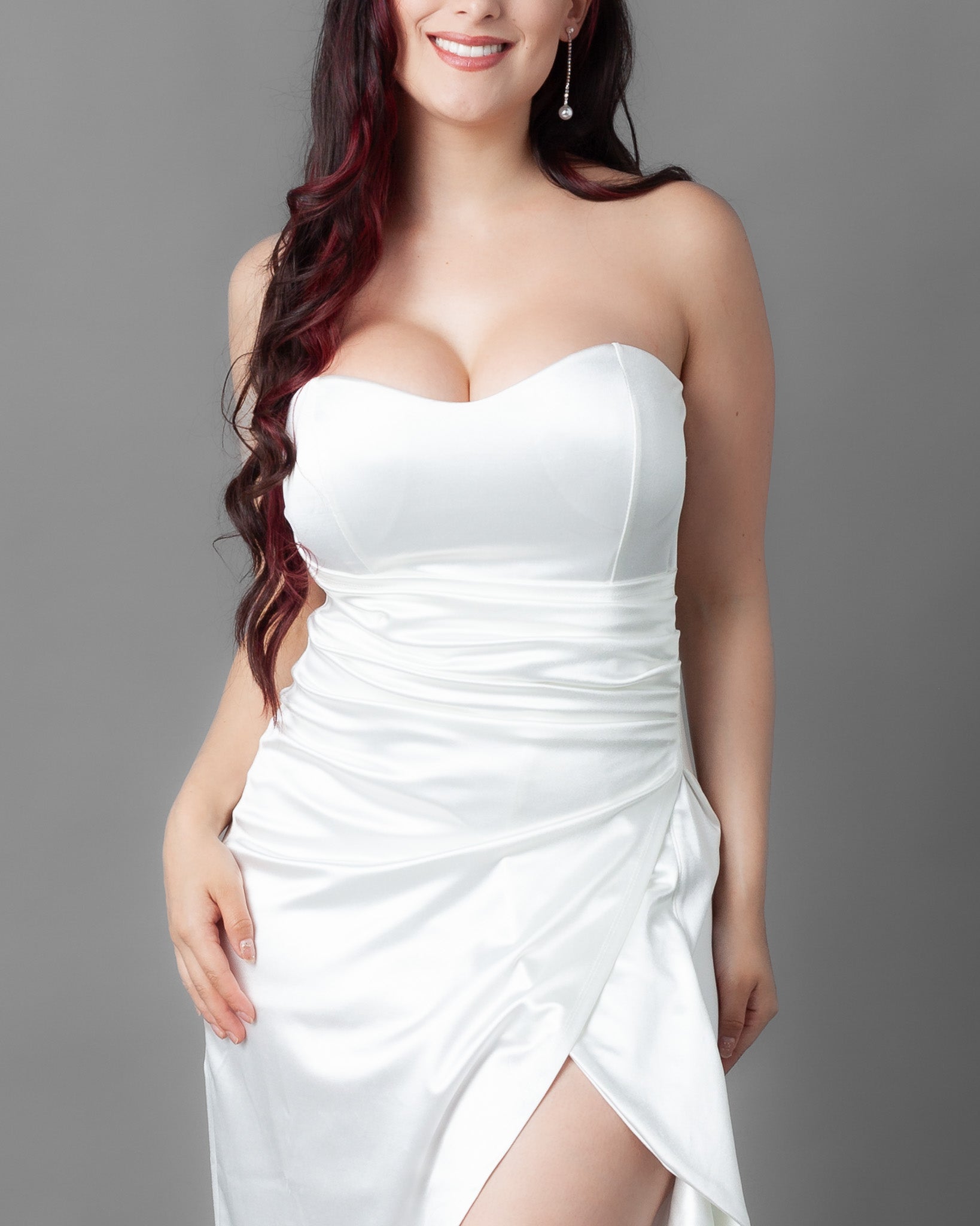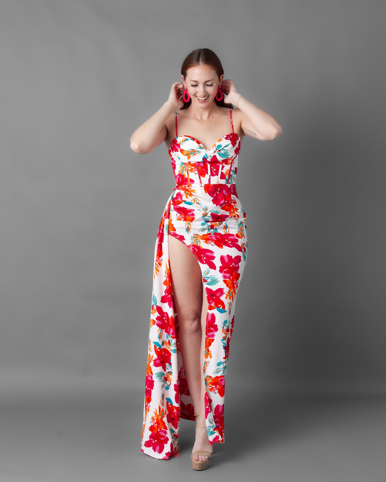Paris Floor Sweep Spaghetti Strap Gown + Thigh