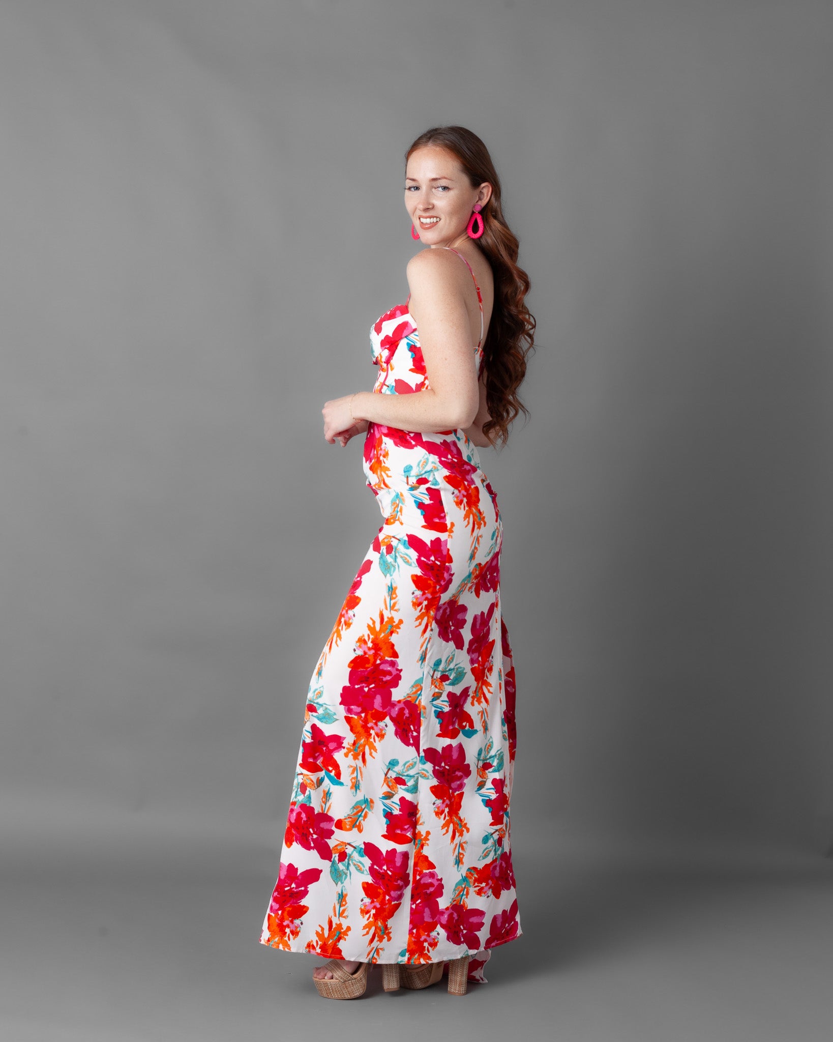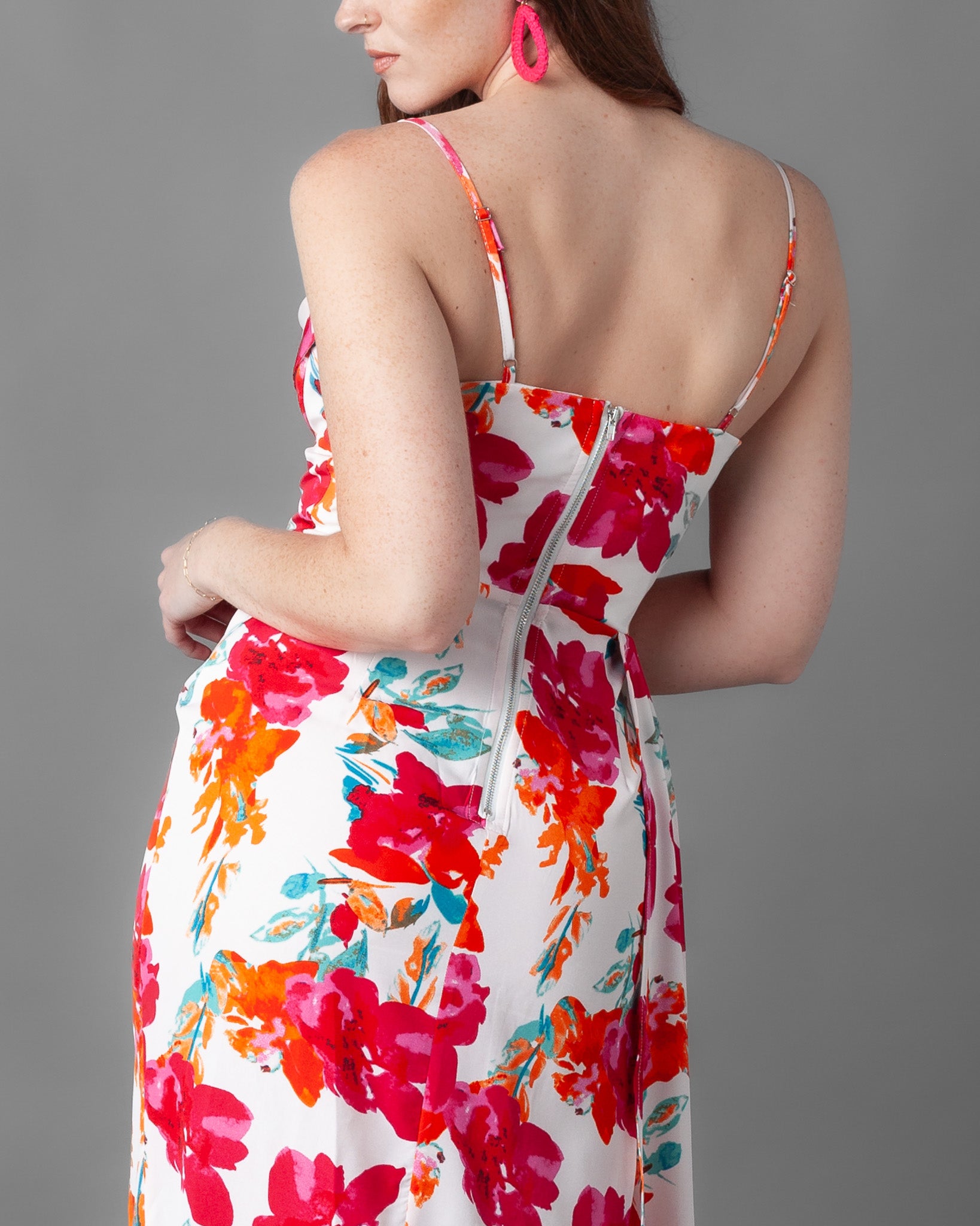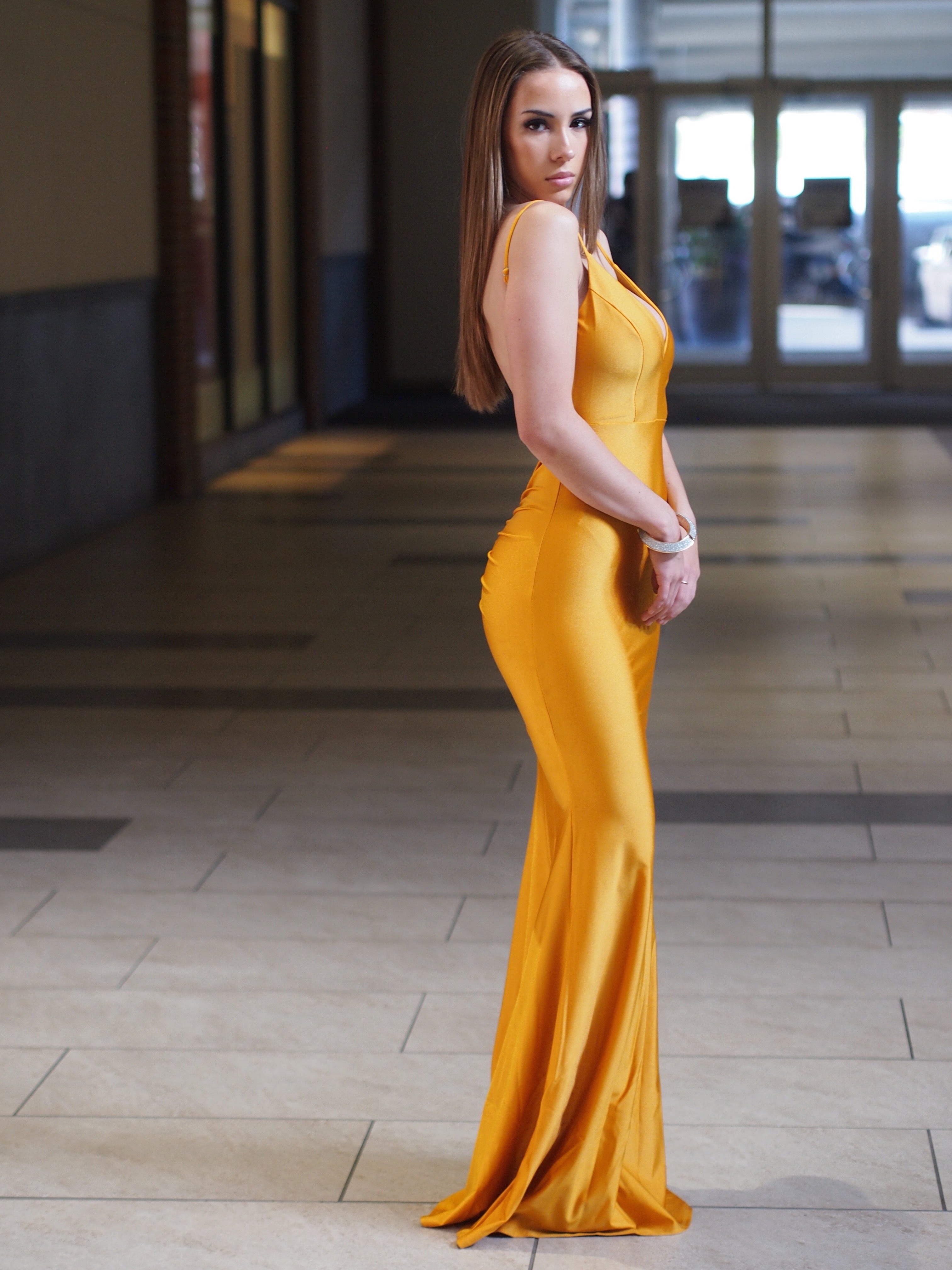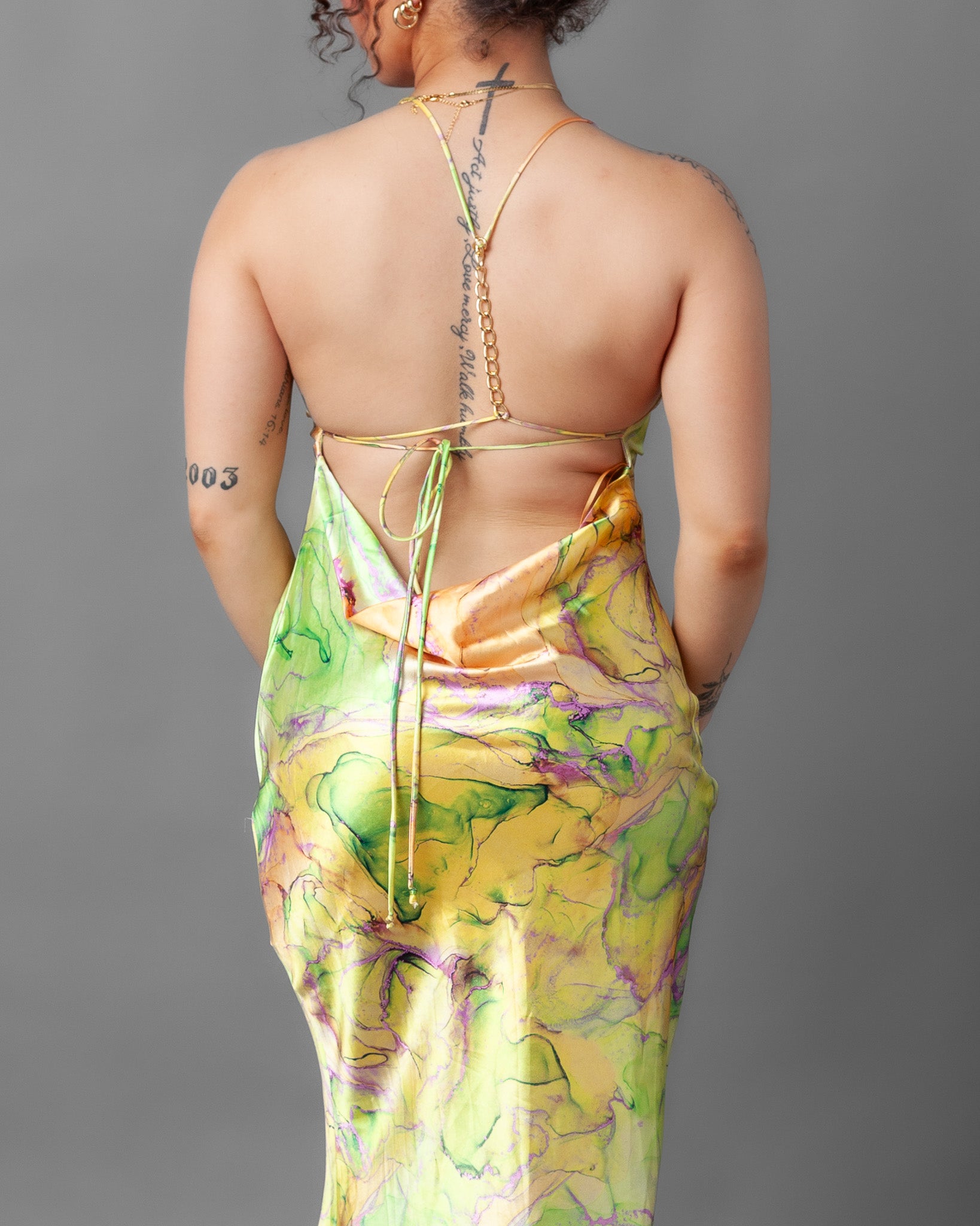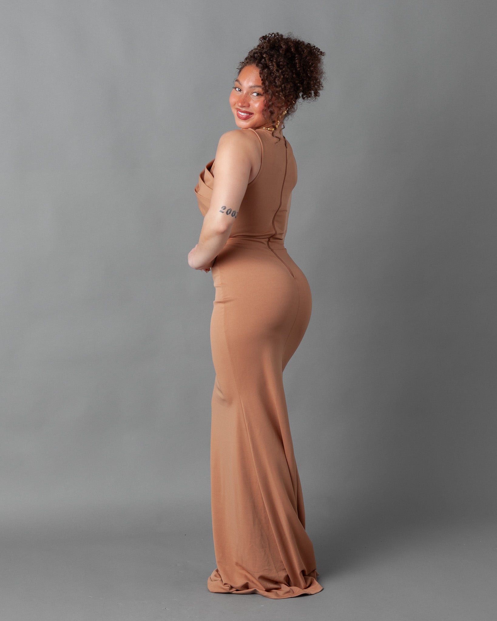 Stockholm Cowl Neck Satin Maxi Dress + Thigh Slit