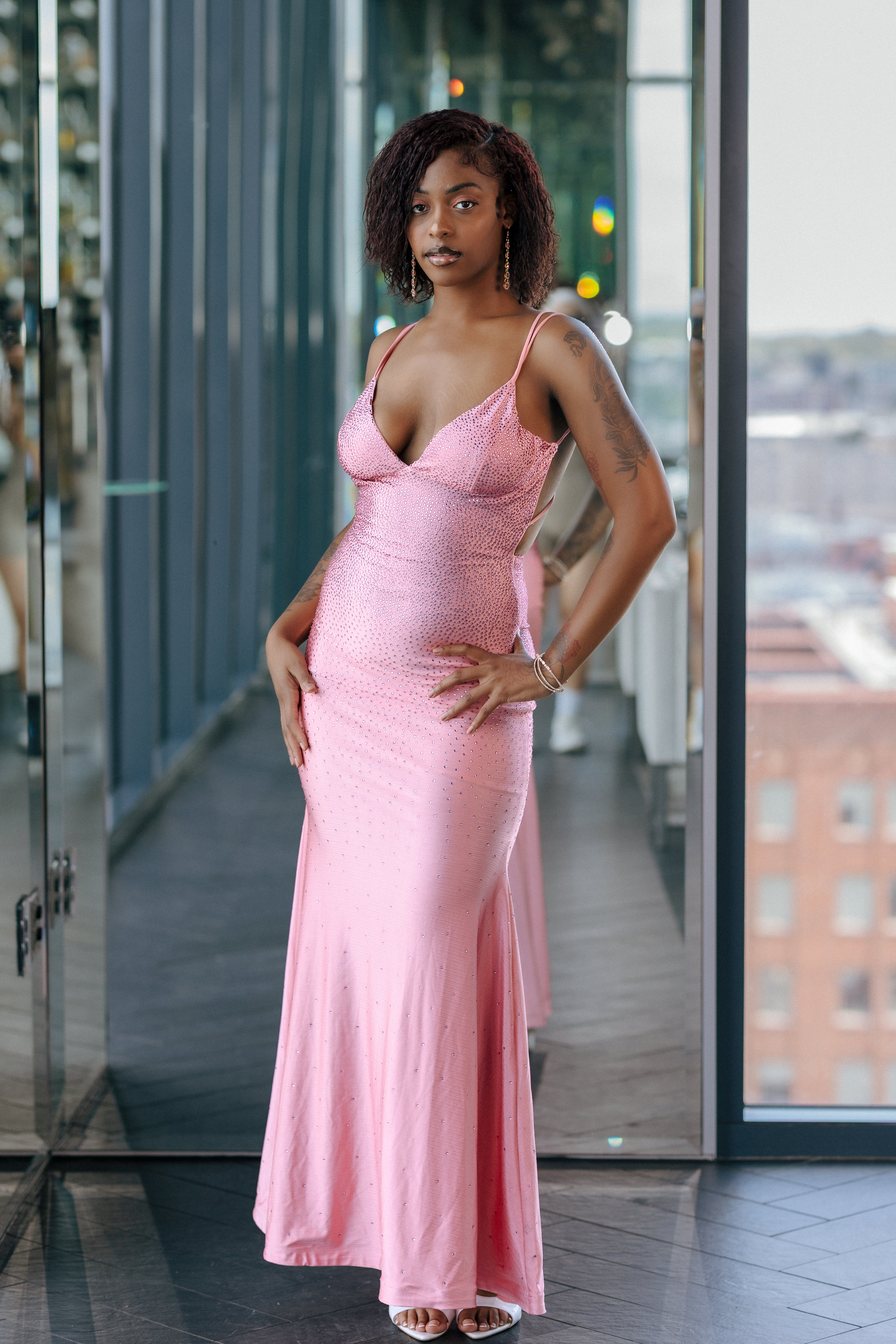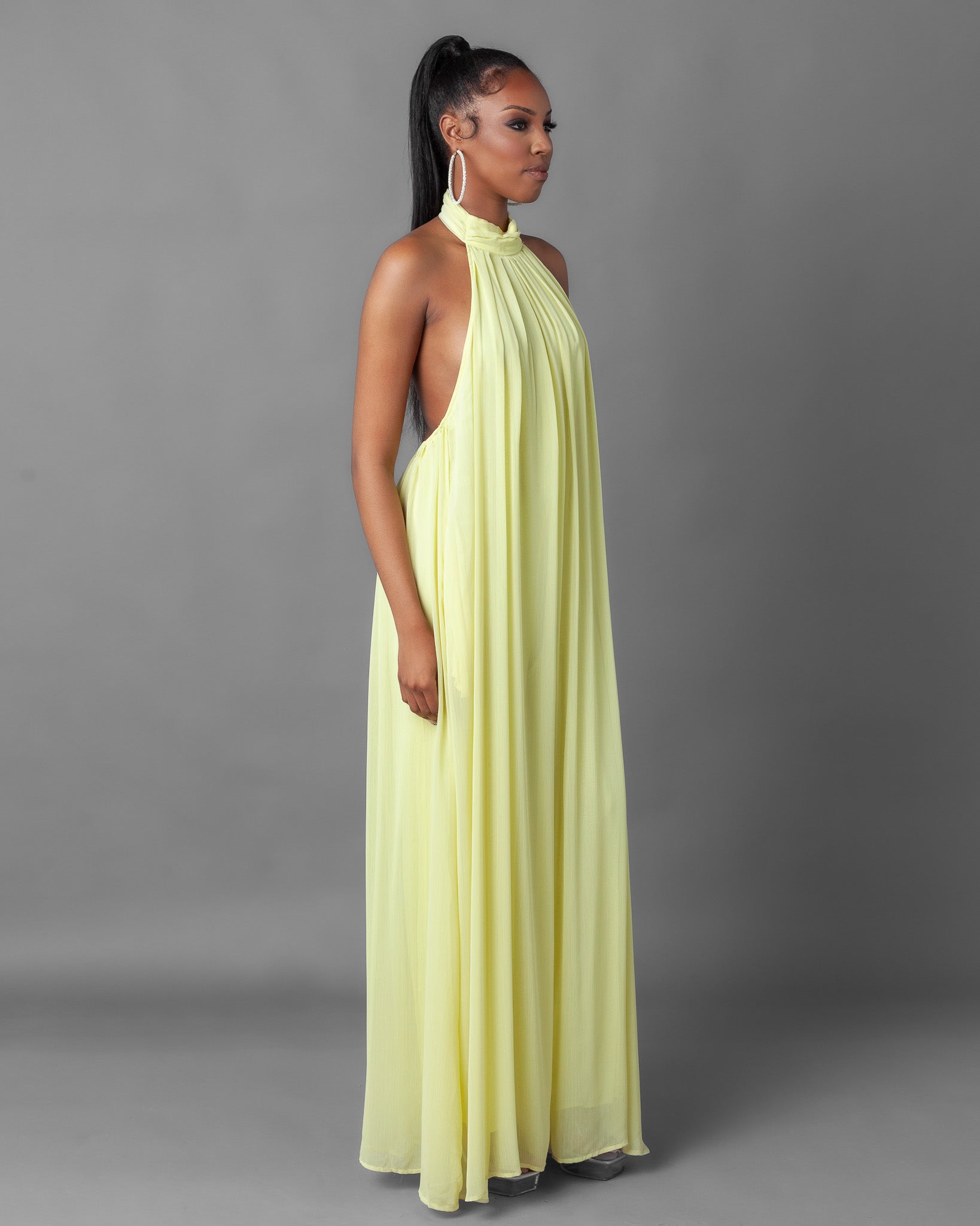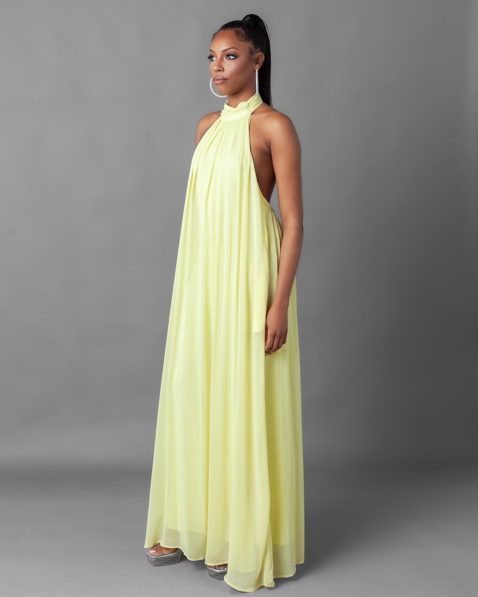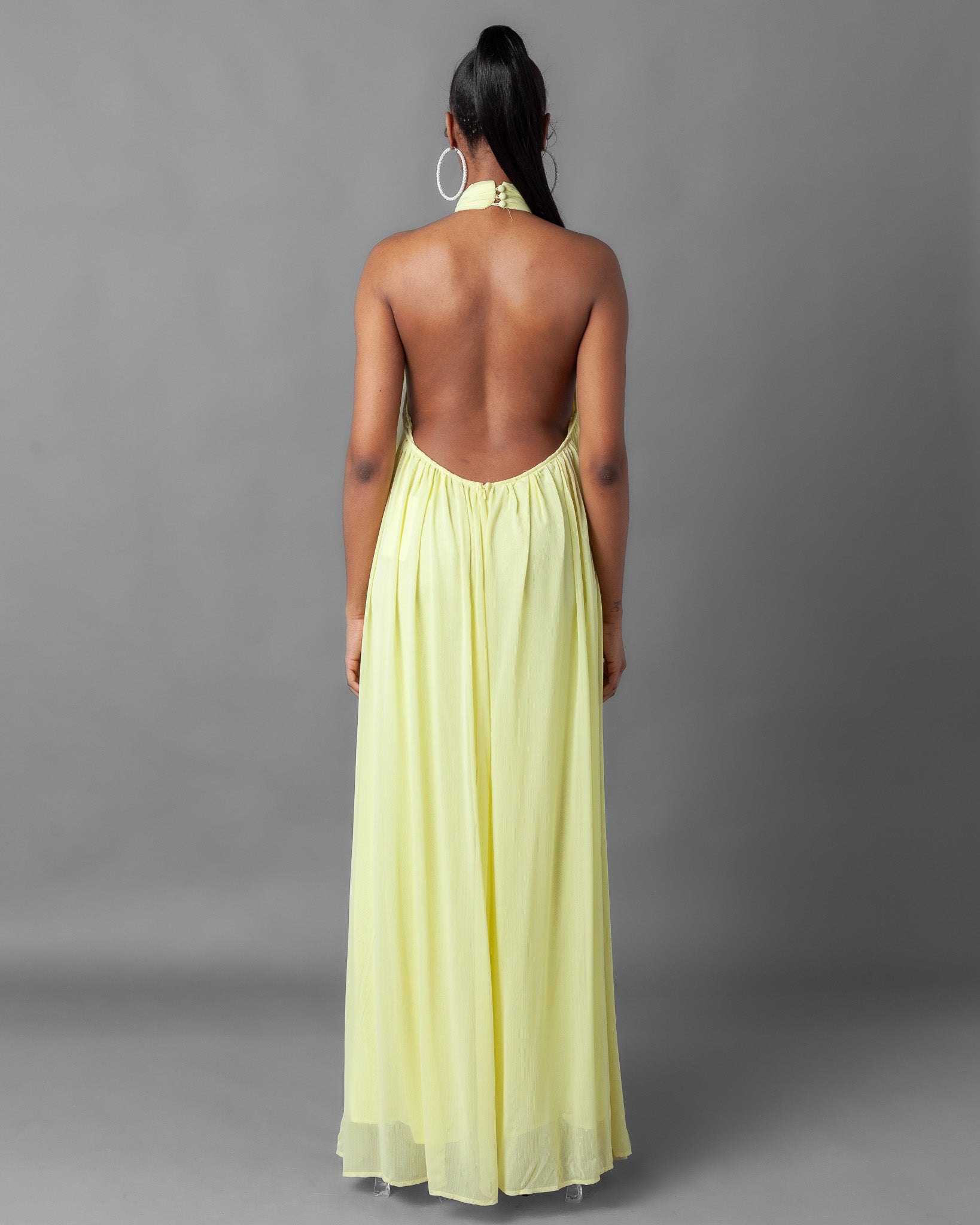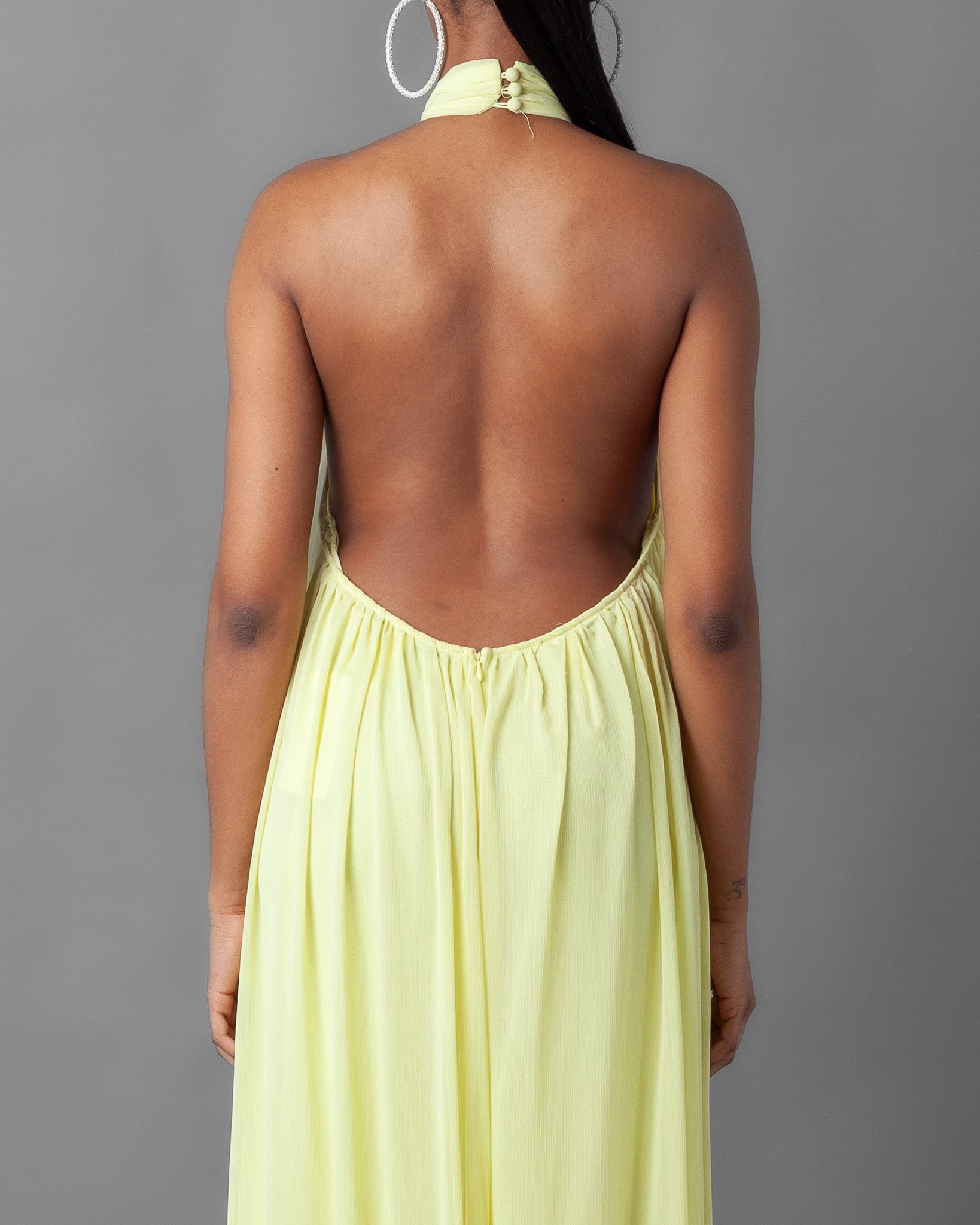 Cairo Pearl Detailed Halter Keyhole Maxi Dress + Open Back