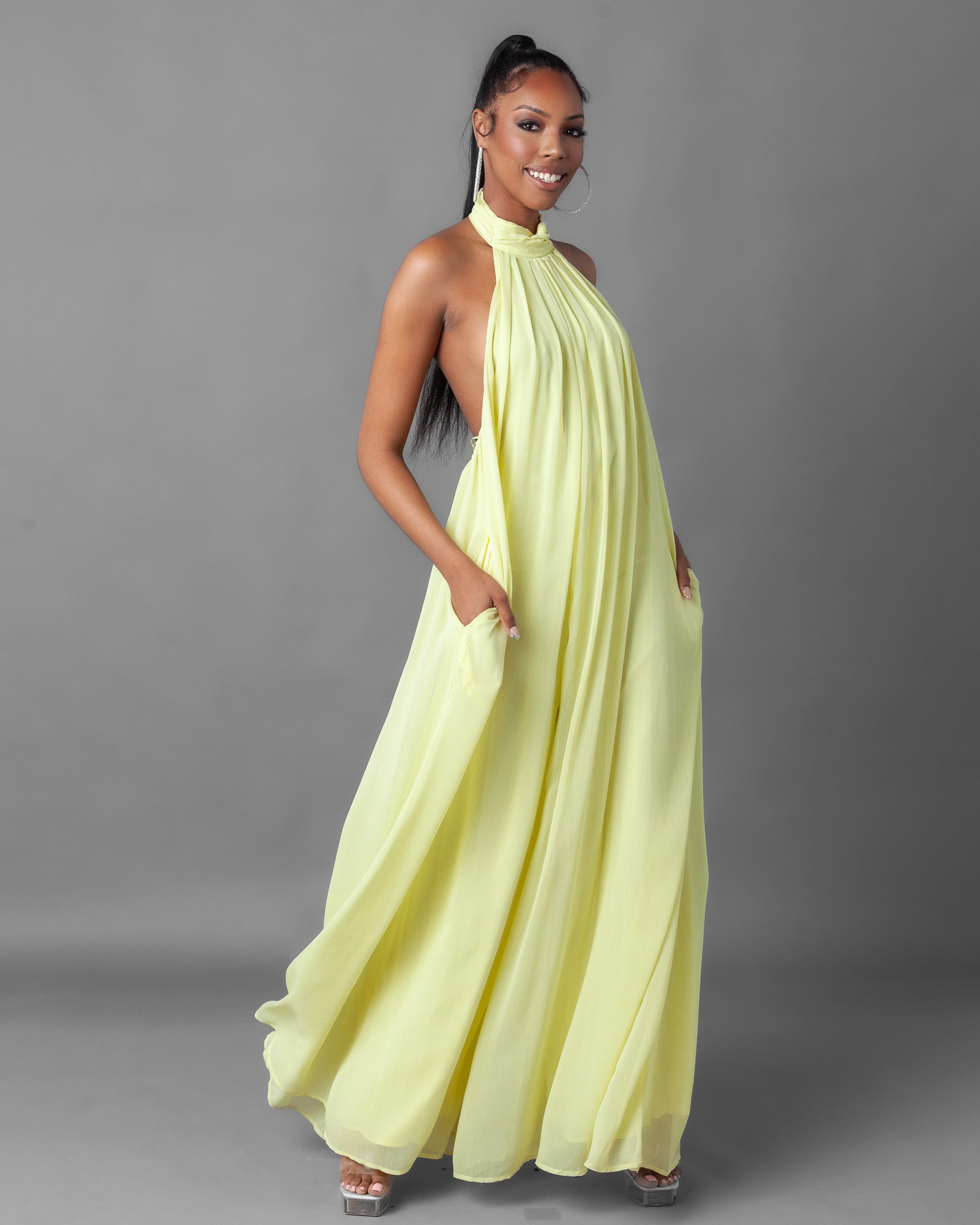 Kyoto Chiffon Halter Palazzo Jumpsuit