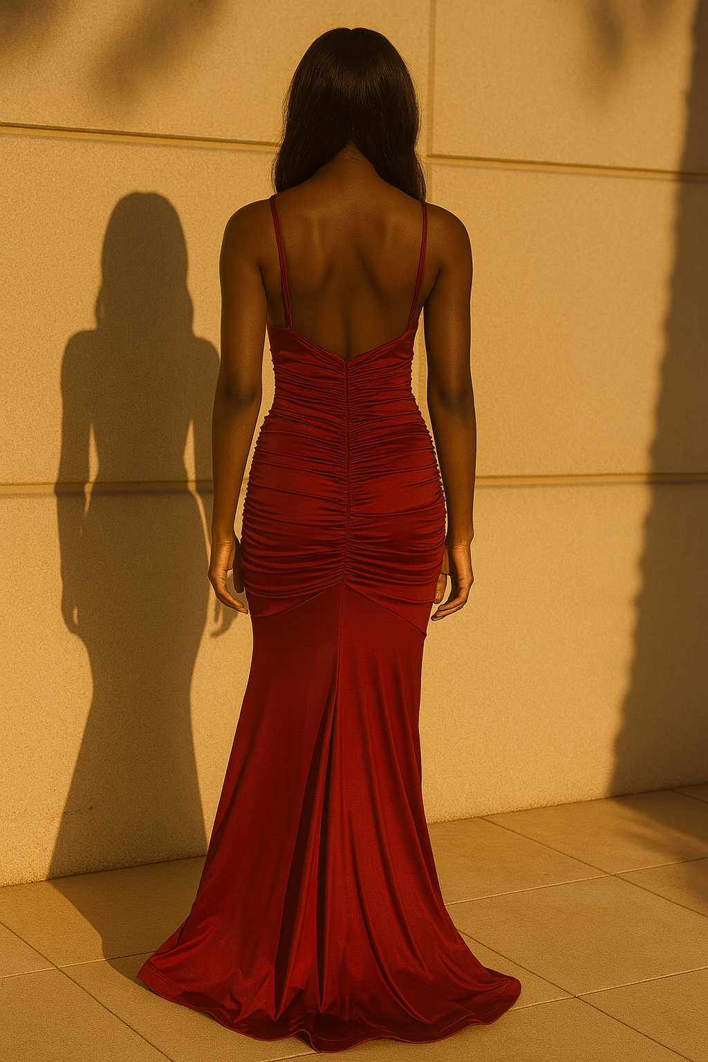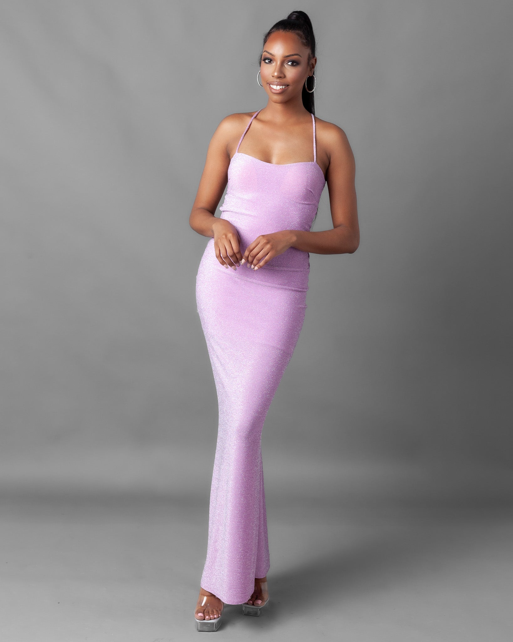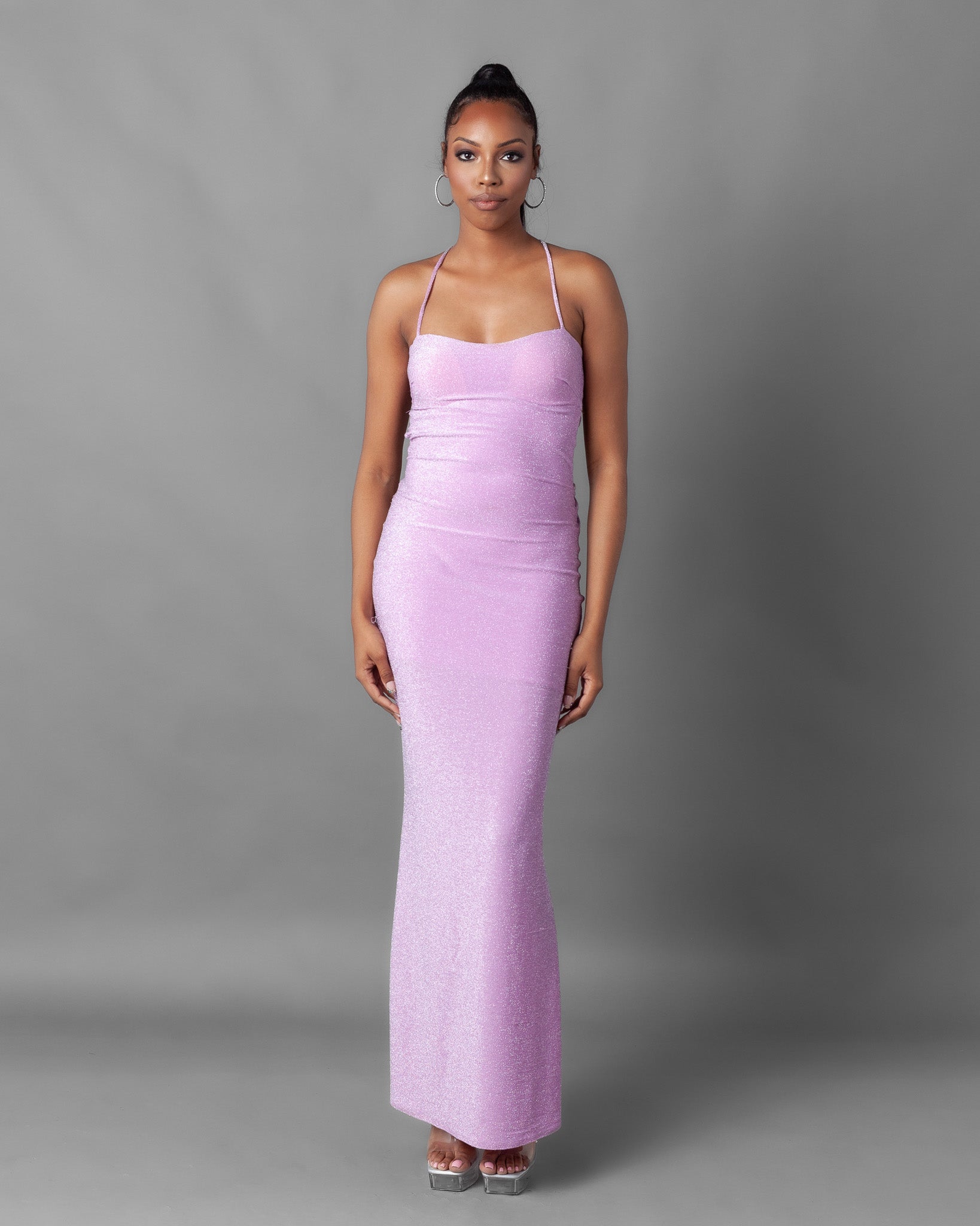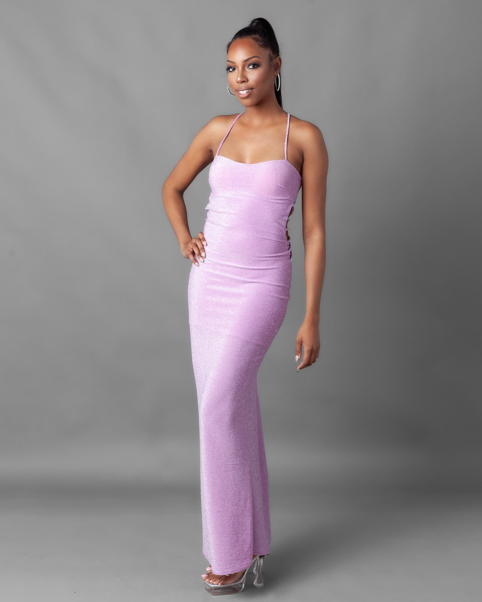 Del Mar Metallic Maxi Dress with Open Back + Crossover Detail