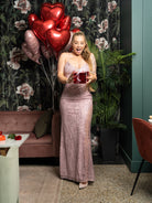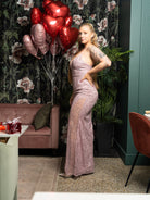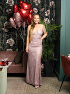 Deep V Glitter Mesh Maxi Dress + Corset Back