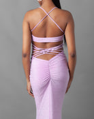 Del Mar Metallic Maxi Dress with Open Back + Crossover Detail