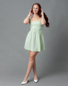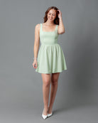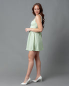 Elevate your romantic evening with our Milan Bow Back Flared Ballerina Mini Dress in a stunning sage green hue. The intricate bow back detail adds a touch of elegance, perfect for a wedding or a special date night. Make a statement and turn heads with this must-have dress!