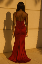 Ruched Foil Maxi Mermaid Dress + Train