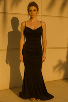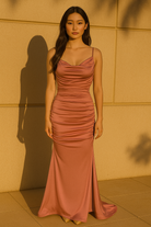 PLEATED FOIL MERMAID MAXI DRESS